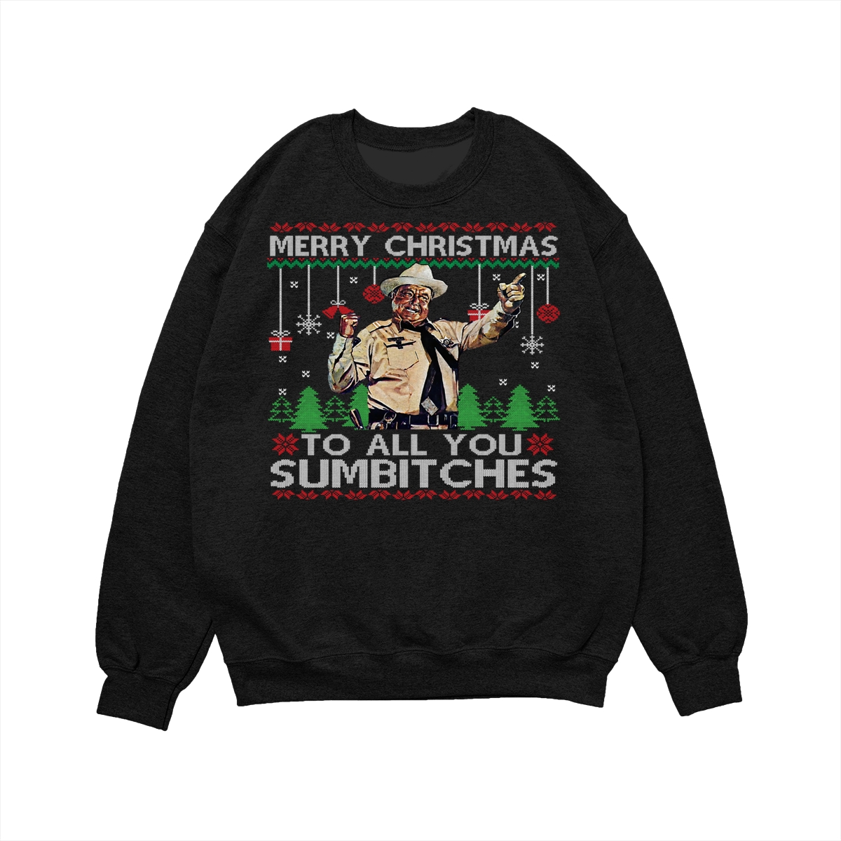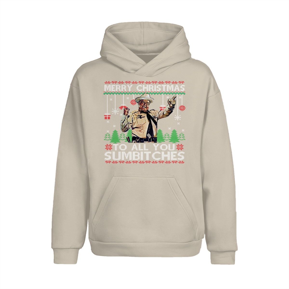 Buford T Merry Christmas To All You Sumbtches Hoodie, Cowboy Holiday Hoodie, Down Home Christmas Sweatshirt, Funny Rustic Christmas Celebration Wear