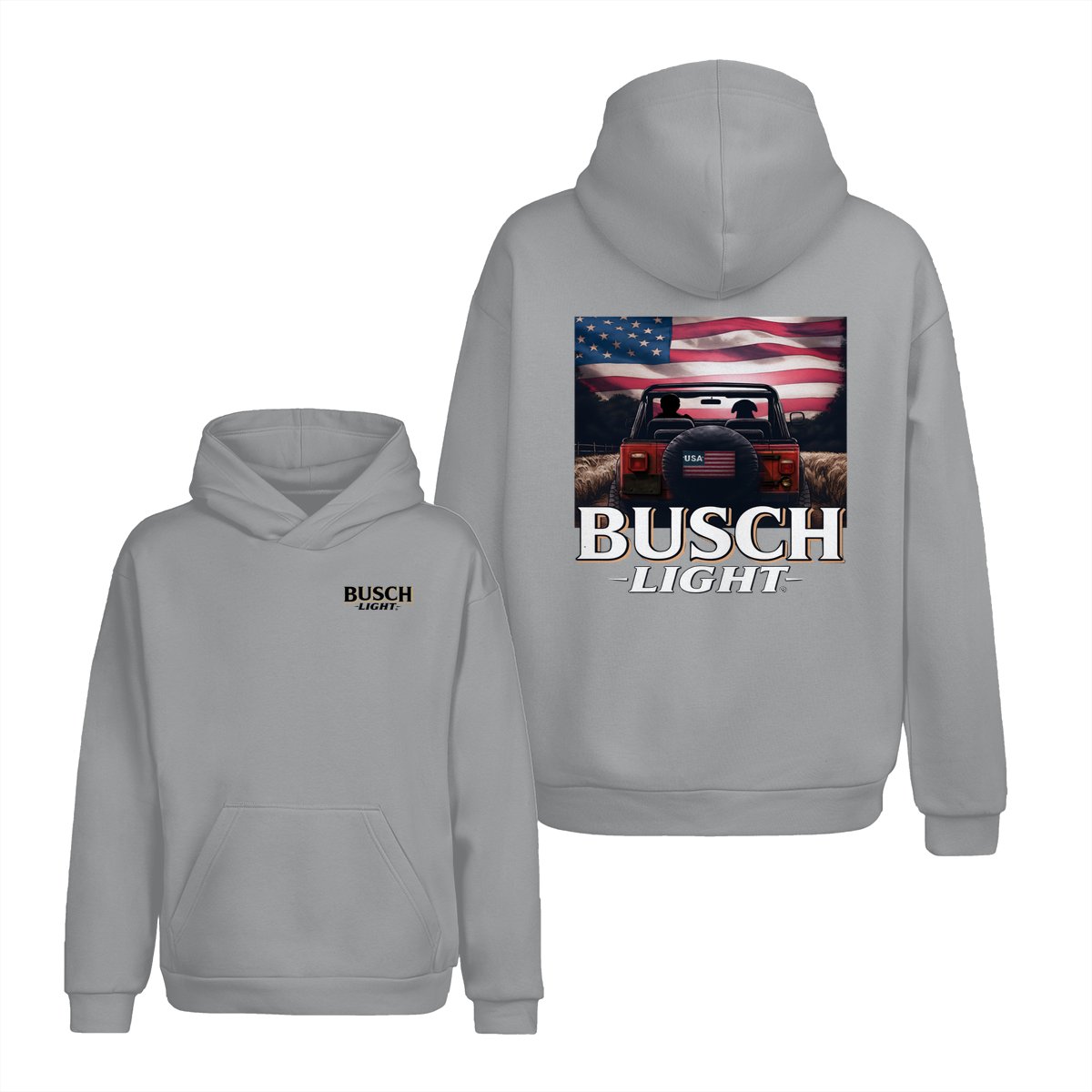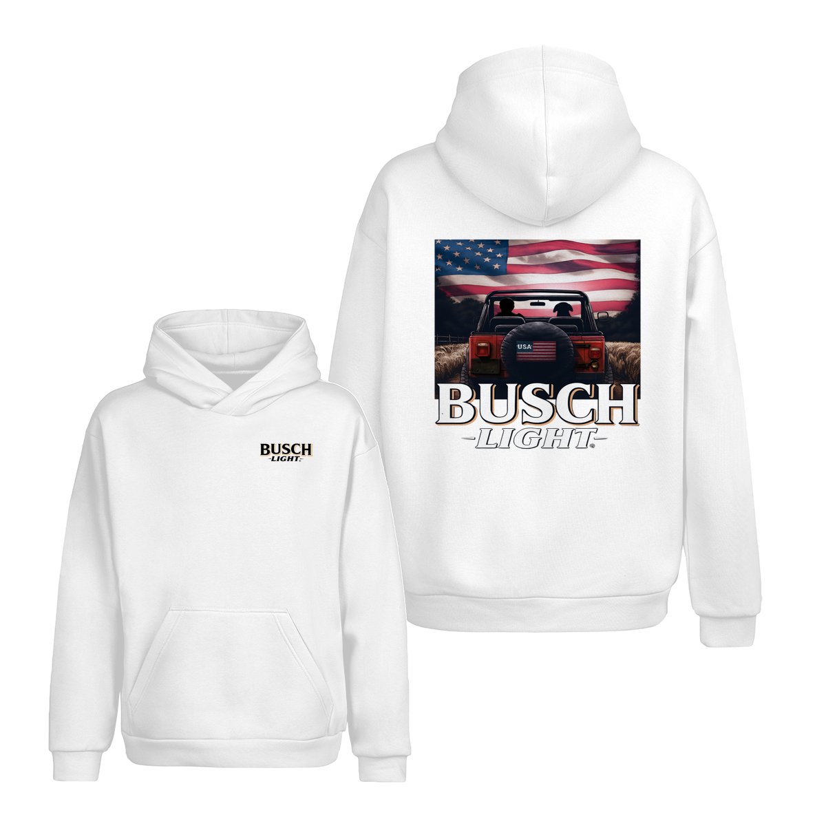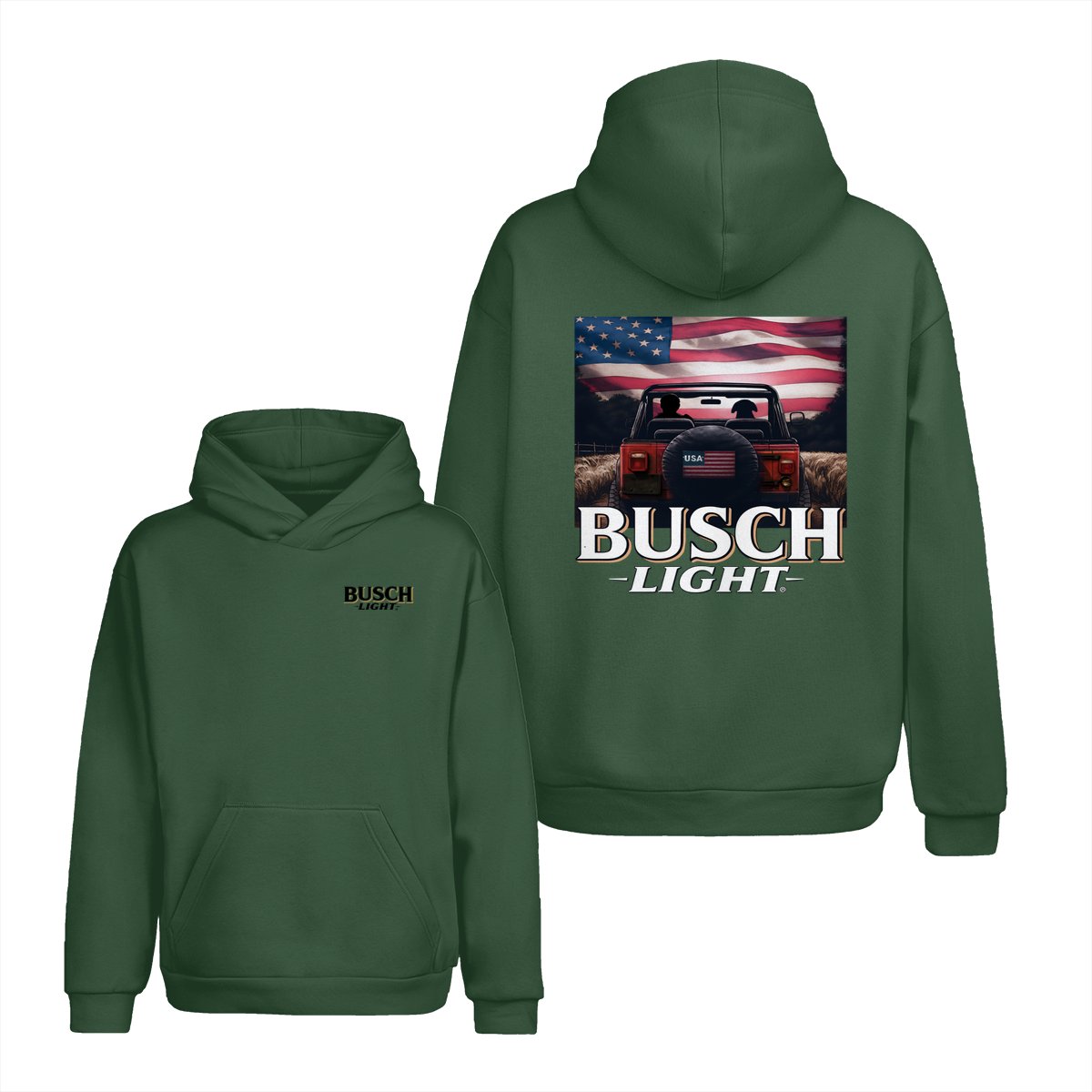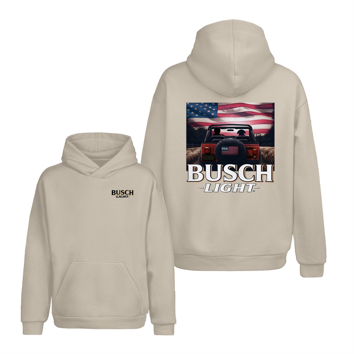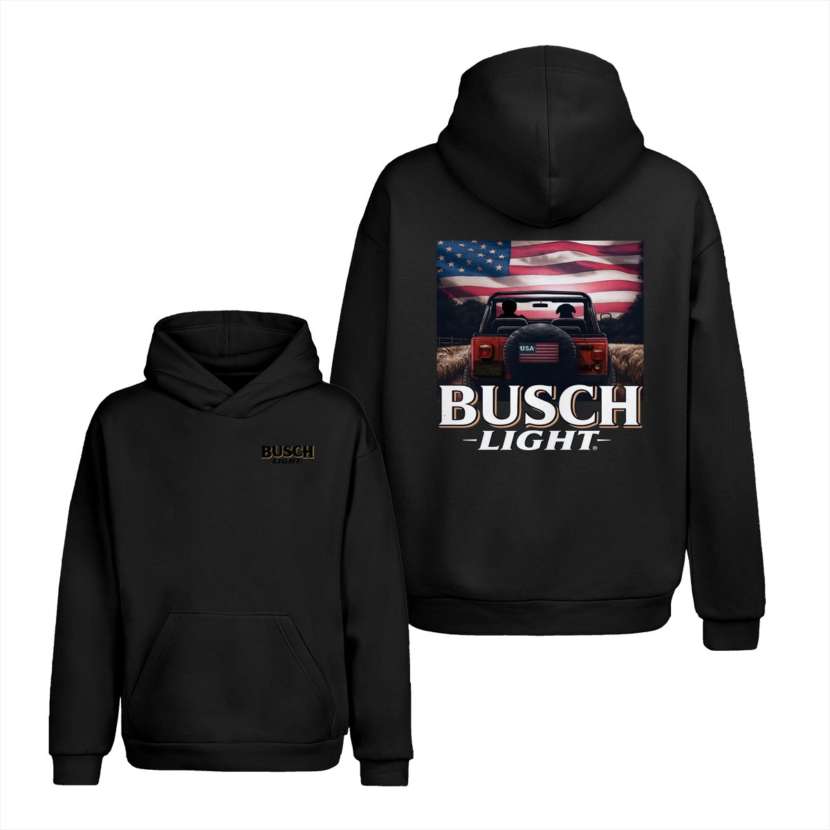 Busch Light American Flag Jeep TShirt/Sweatshirt/Hoodie, Off-Road Truck Beer Lover Sweatshirt, Outdoor Adventure Gift for Hunters & Campers, hoodies men, graphic tees hoodies, streetwear, men gifts, Unisex Classic Hoodie
