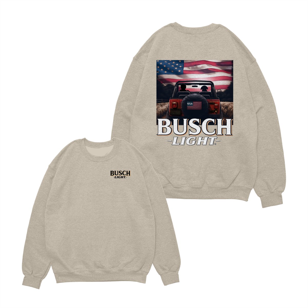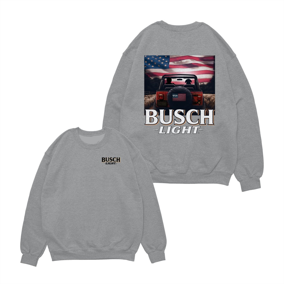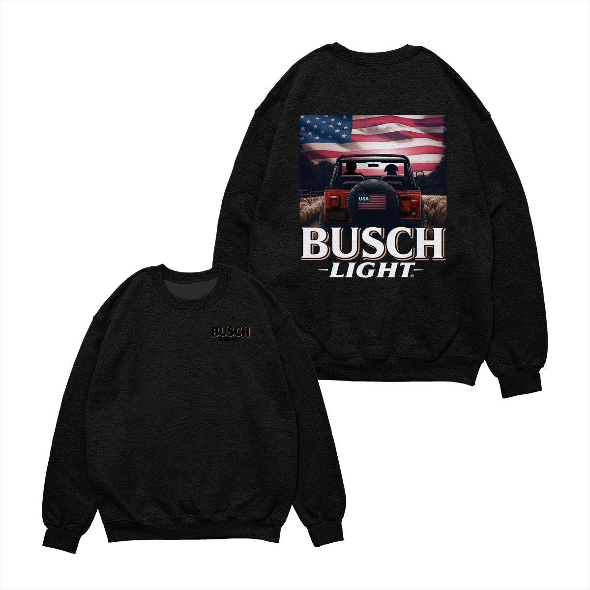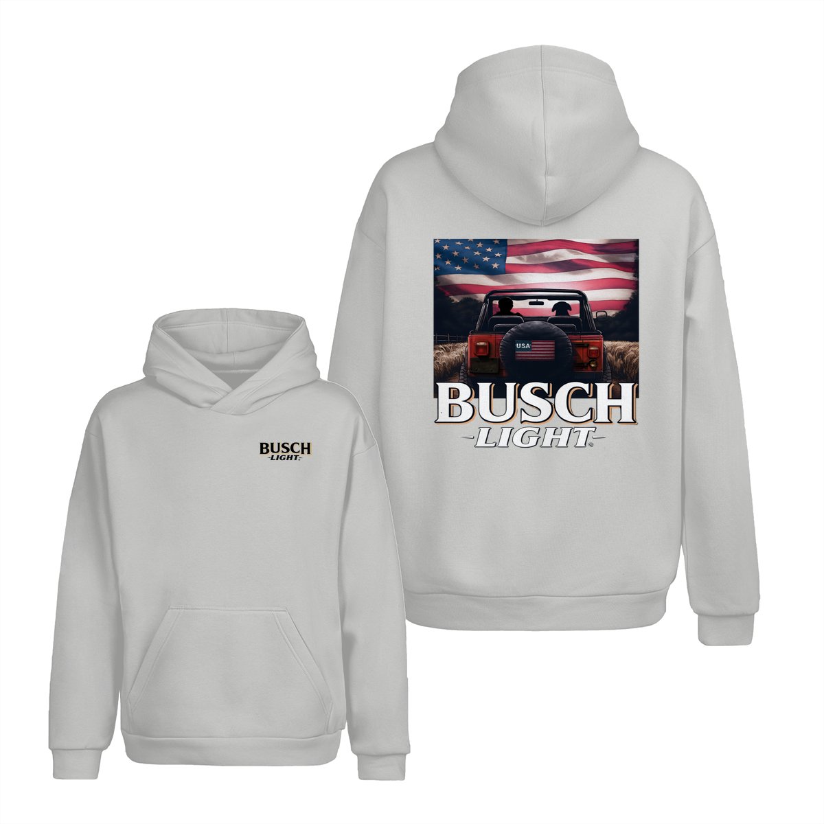 Busch Light American Flag Jeep TShirt/Sweatshirt/Hoodie, Off-Road Truck Beer Lover Sweatshirt, Outdoor Adventure Gift for Hunters & Campers, hoodies men, graphic tees hoodies, streetwear, men gifts, Unisex Classic Hoodie