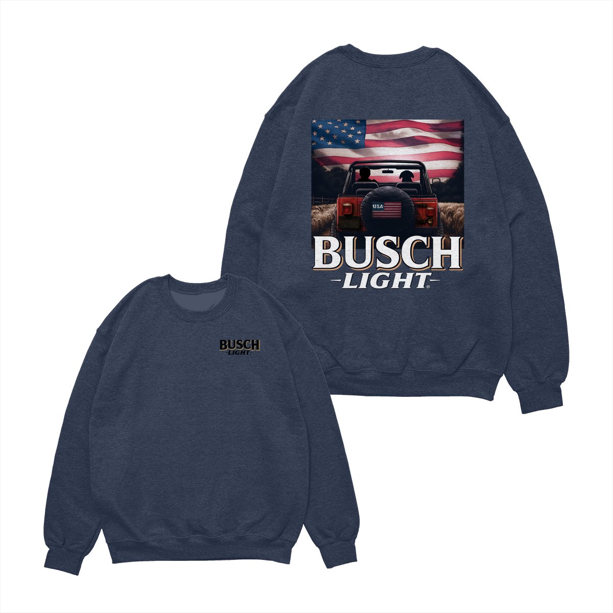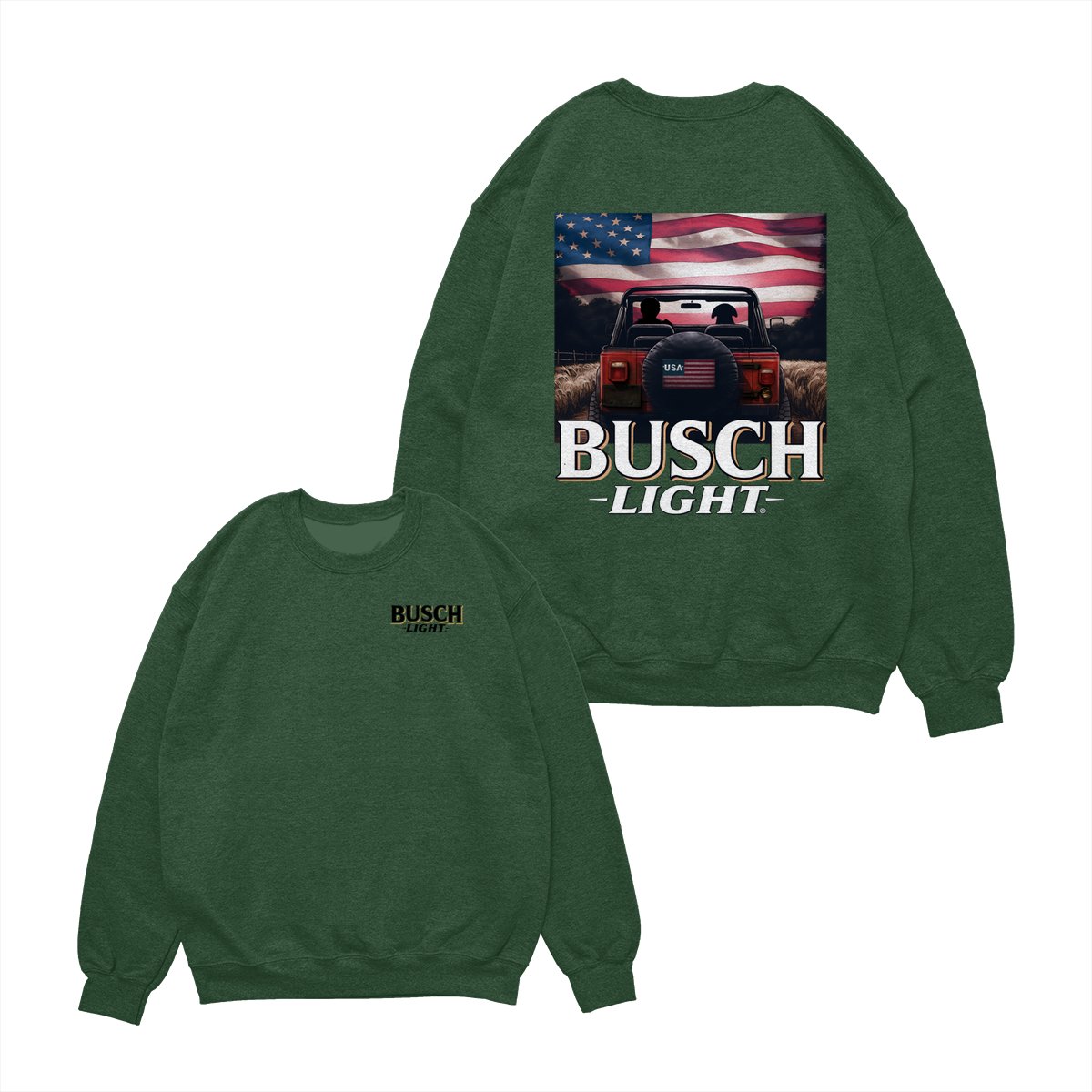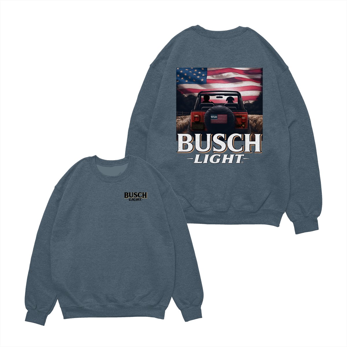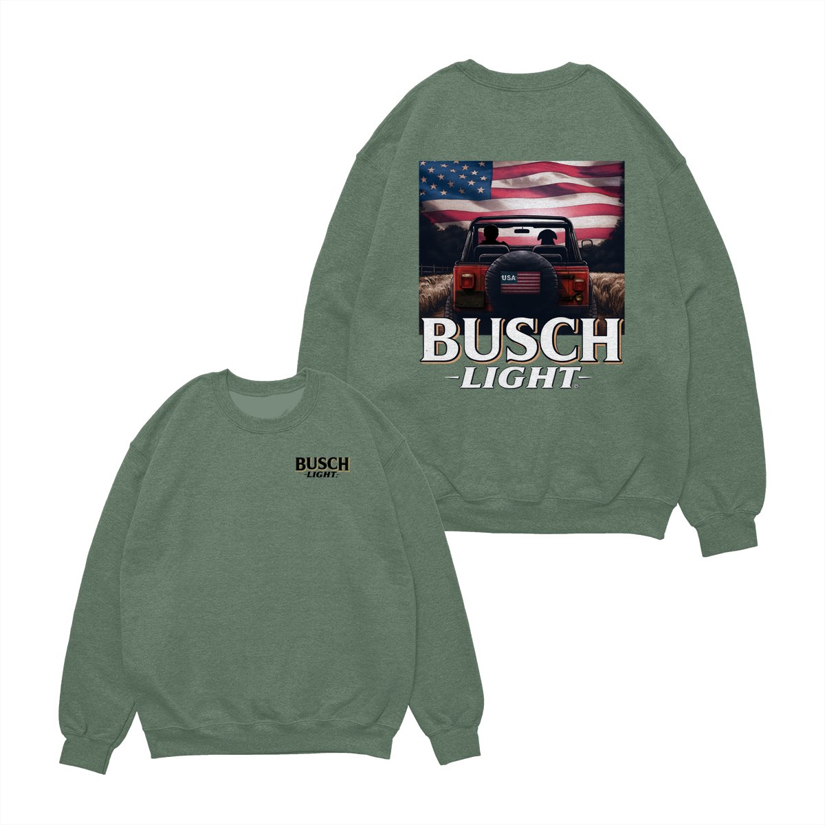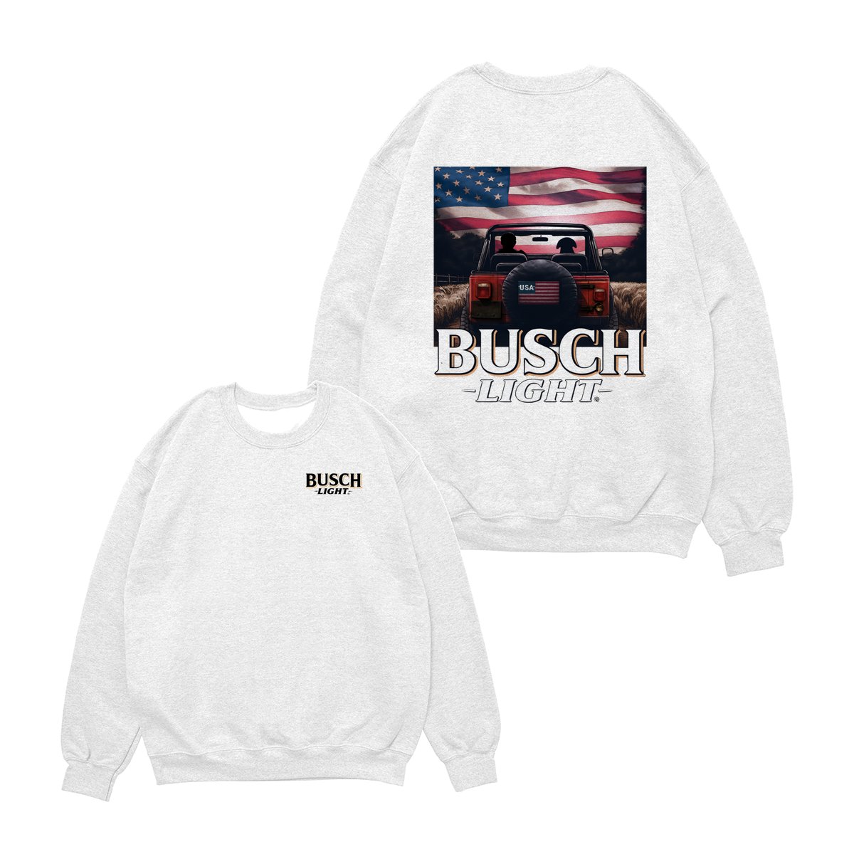 Busch Light American Flag Jeep TShirt/Sweatshirt/Hoodie, Off-Road Truck Beer Lover Sweatshirt, Outdoor Adventure Gift for Hunters & Campers, hoodies men, graphic tees hoodies, streetwear, men gifts, Unisex Classic Hoodie
