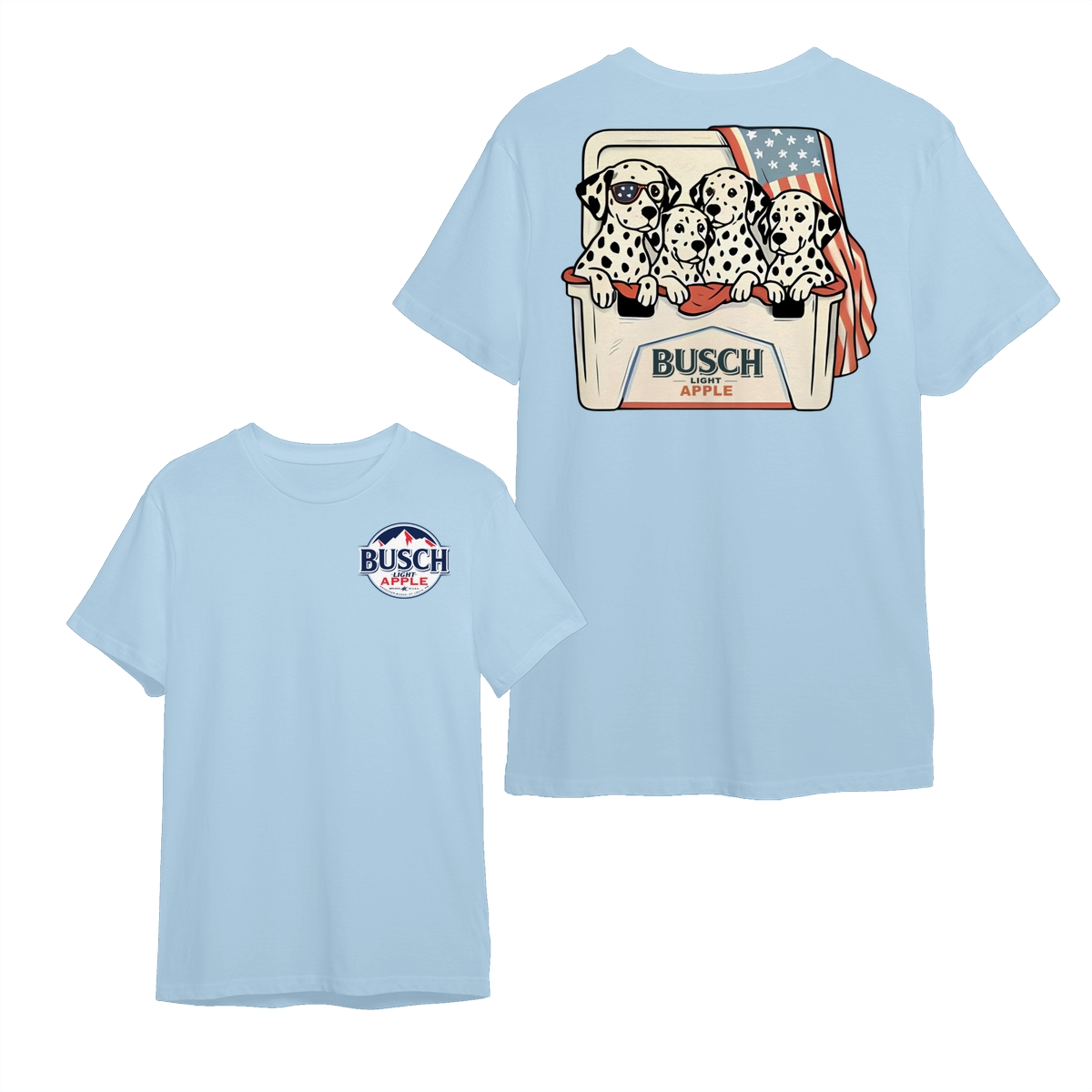 Busch Light Apple Dalmatian Shirt – Funny Beer Cooler Dog Tee with American Flag, Party Shirt for Patriotic Beer Lovers, Gift For Him, Gift For Her, Full Colors