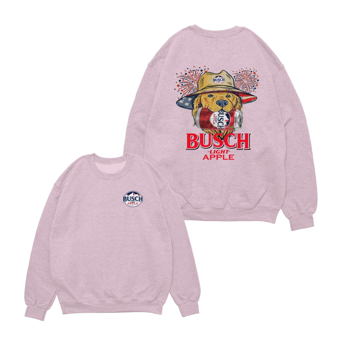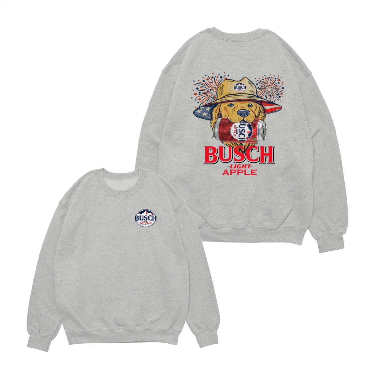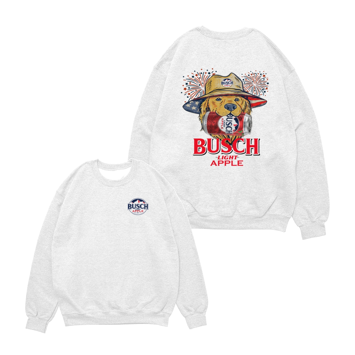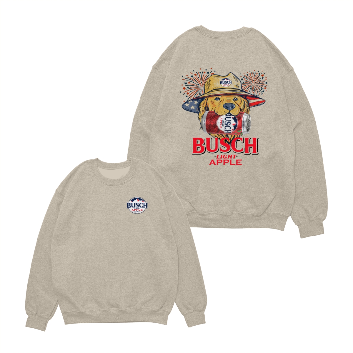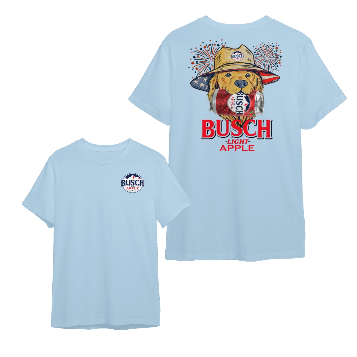 Busch Light Apple Dog T-Shirt – Patriotic Cowboy Hat Pup with Beer Can, Fireworks & Flag Graphic, Gift for Beer Lovers & Dog Dads, Casual Cotton