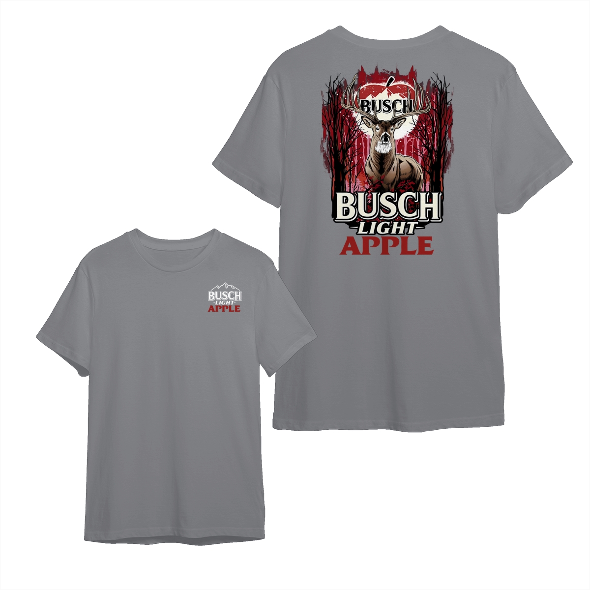 Busch Light Apple Hunting T-Shirt – Official Beer Merchandise for Hunters and Outdoorsmen, White Cotton Tee with Chest Logo, Large Deer and Apple Graphic on the Back, Unisex Apparel for Men and Women