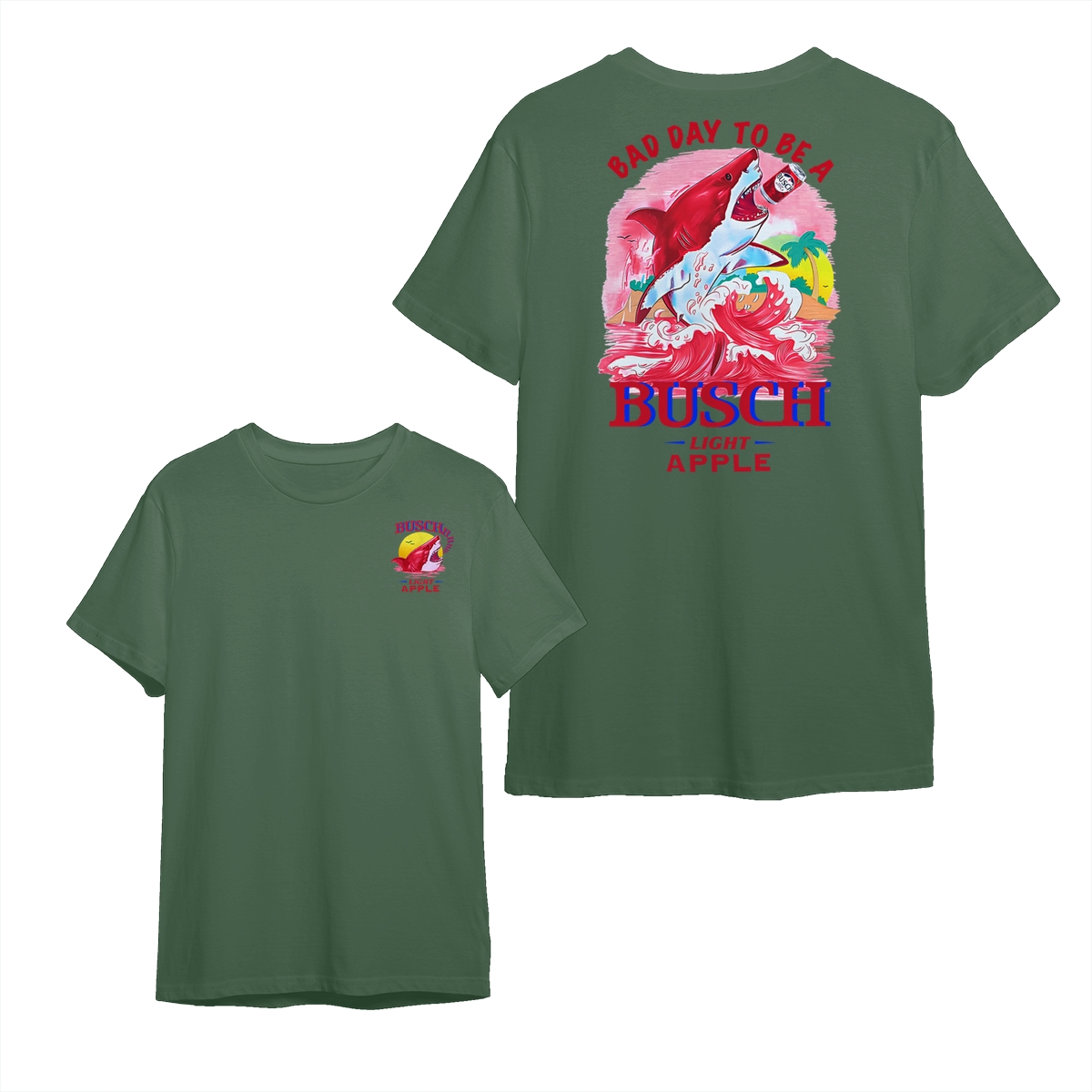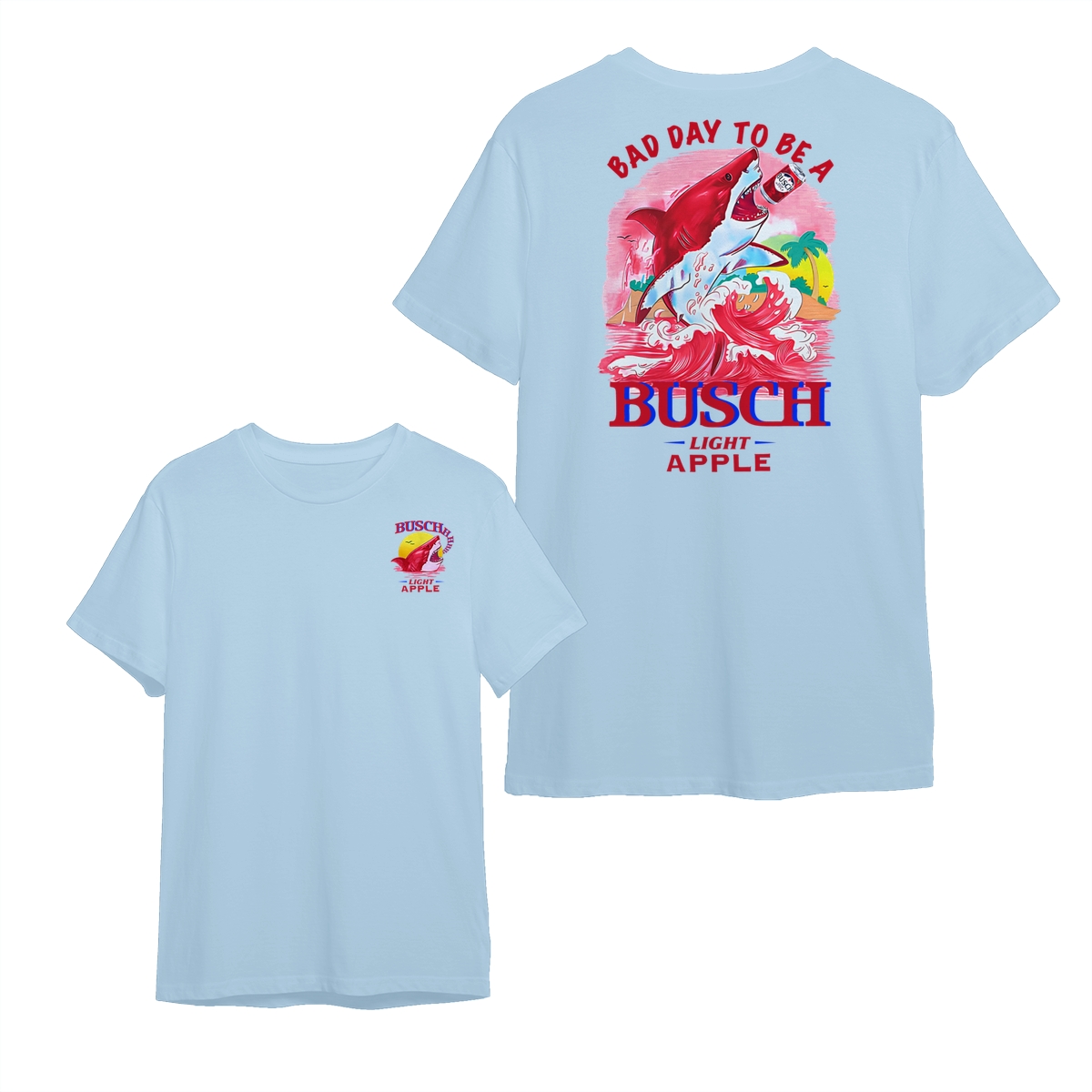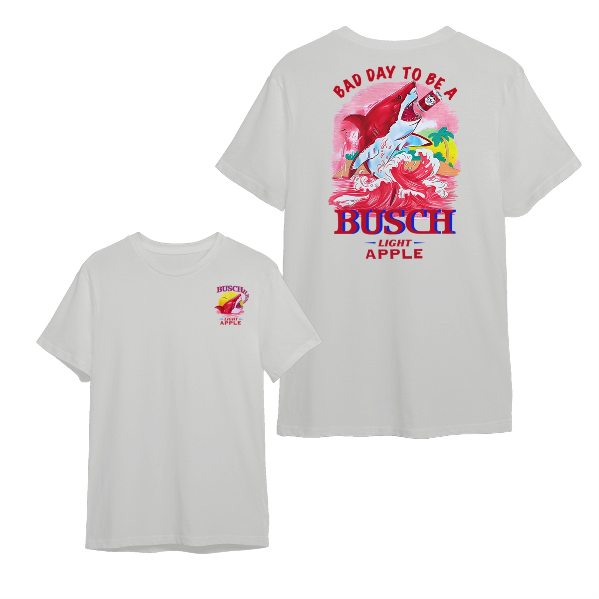 Busch Light Apple T-Shirt, Shark Attack Beach Graphic, Fun Summer Tee for Beer Lovers & Ocean Vibes