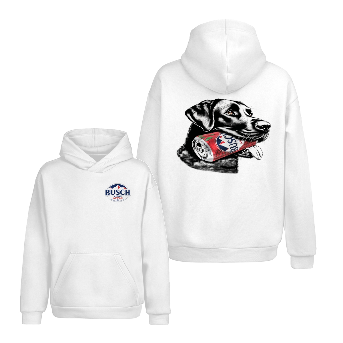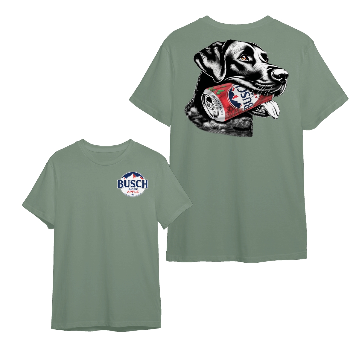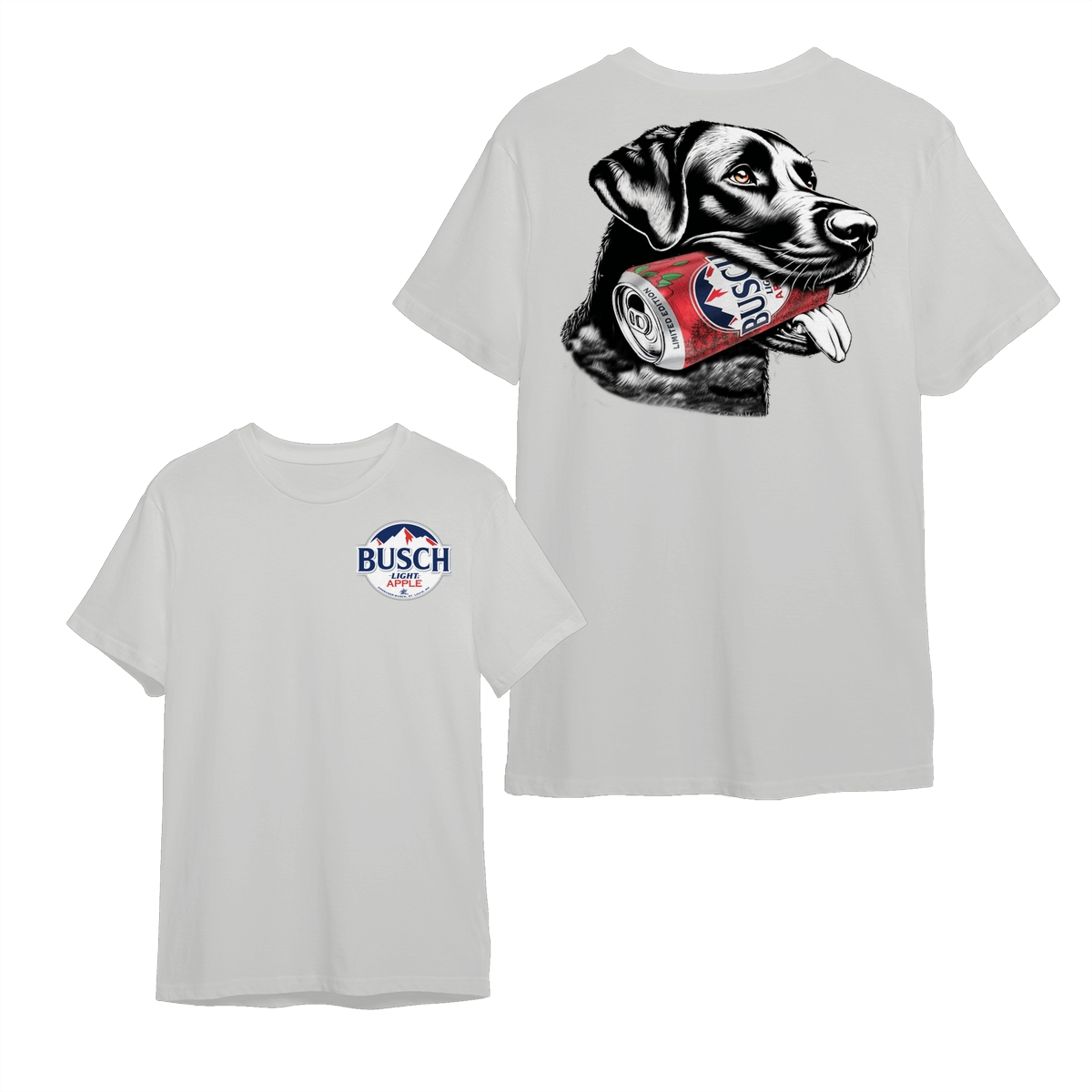 Busch Light, Busch Apple Dog T-Shirt – Cute Black Lab Holding Beer Can – Perfect Gift for Dog Lovers and Beer Fans!