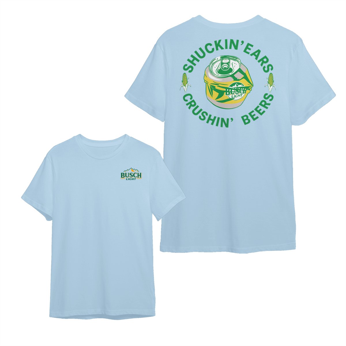 Busch Light, Busch Light T-Shirt – Shuckin’ Ears & Crushin’ Beers Funny Corn Beer Tee – Country Style Graphic Shirt for Beer Lovers!