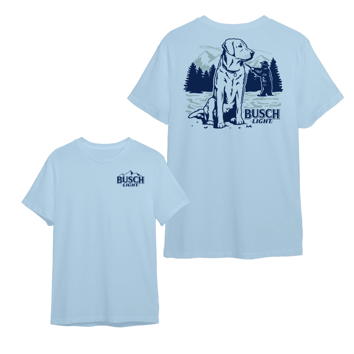 Busch Light – Fly Fishing With Dog Scene 2 Sides T-Shirt, Busch Light Merch, Fishing Lover, Men’s Gift, Unisex Comfort Cotton for Men and Women