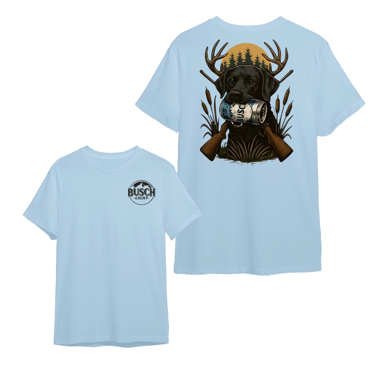 Busch Light Hunting Dog T-Shirt, Black Lab With Beer Can And Antlers Graphic, Funny Beer Outdoors, Unisex Style For Men For Women