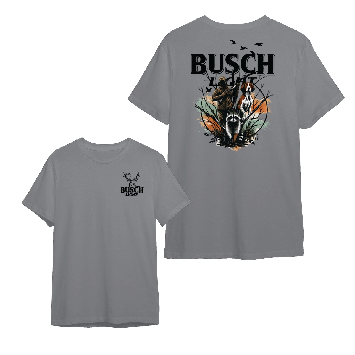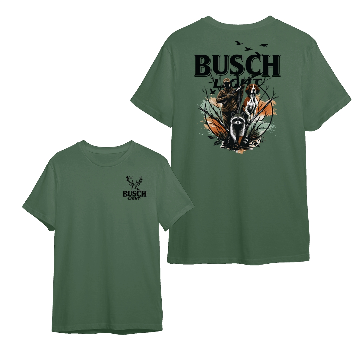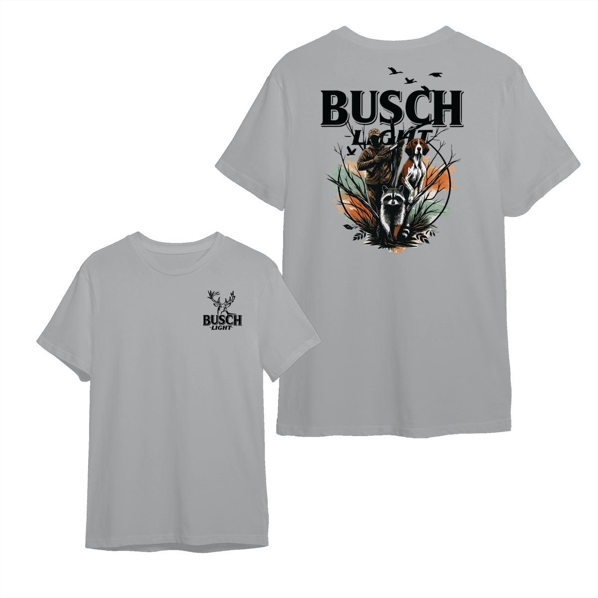 Busch Light Hunting T-Shirt – Front Small Busch Light Logo with Antlers, Unisex Cotton Tee, Outdoor Hunting Apparel, Gift for Beer Lovers