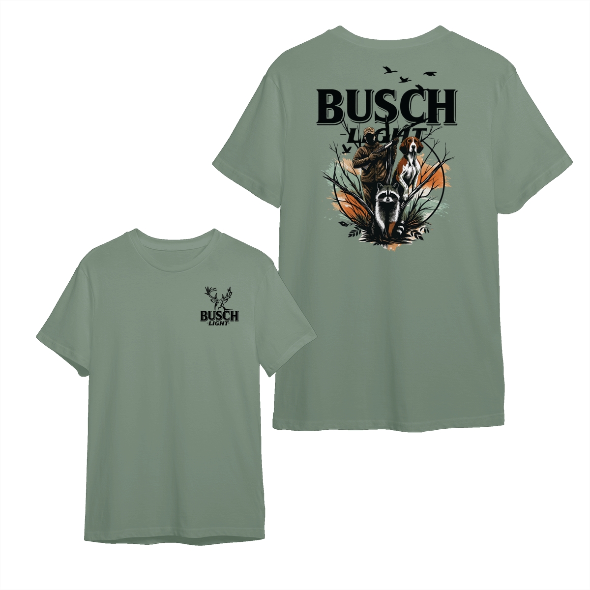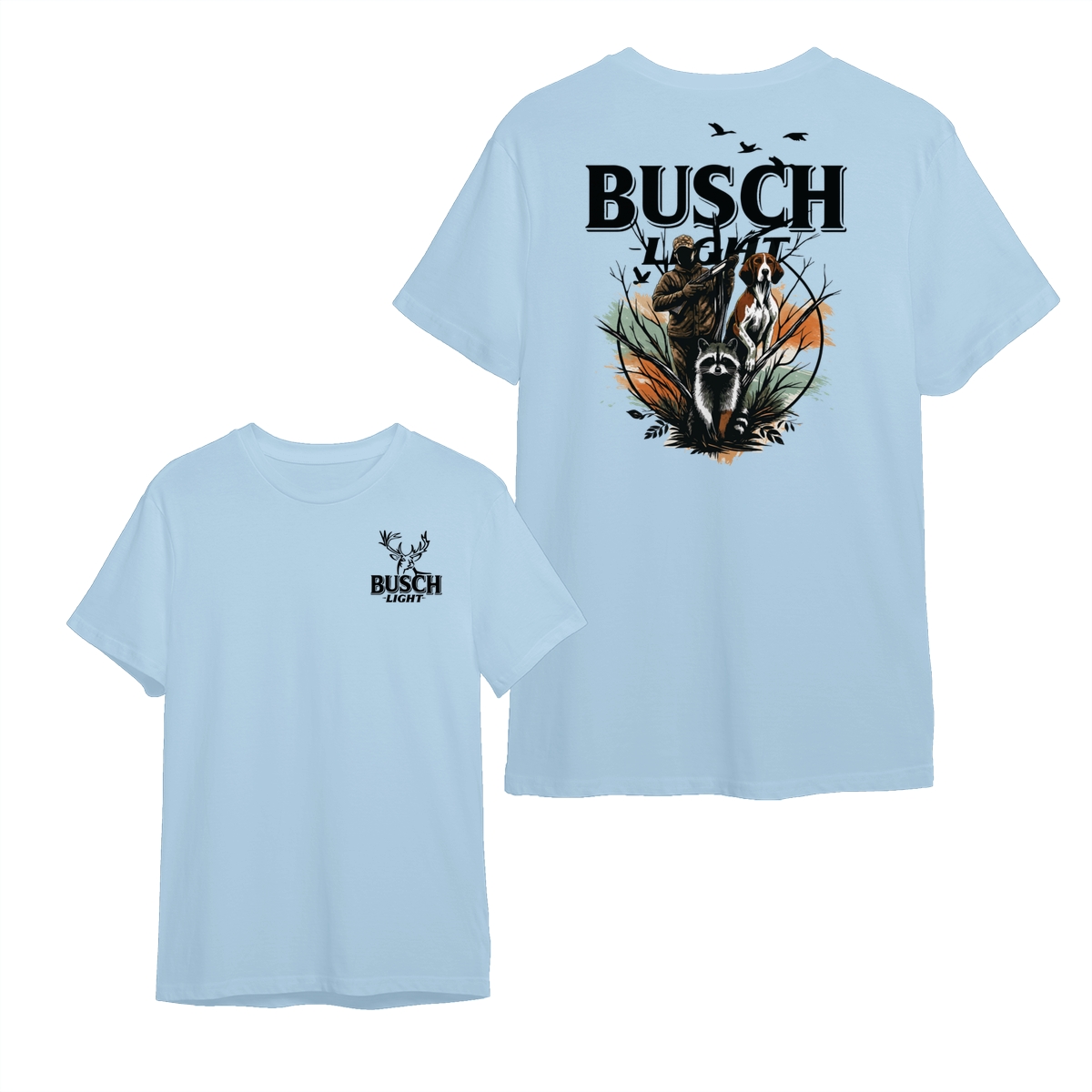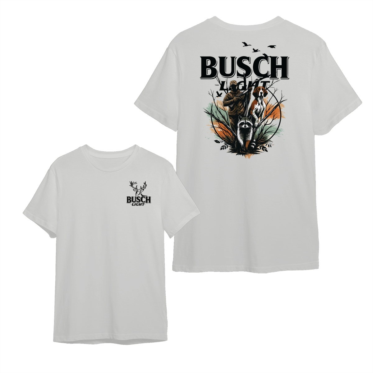 Busch Light Hunting T-Shirt – Front Small Busch Light Logo with Antlers, Unisex Cotton Tee, Outdoor Hunting Apparel, Gift for Beer Lovers