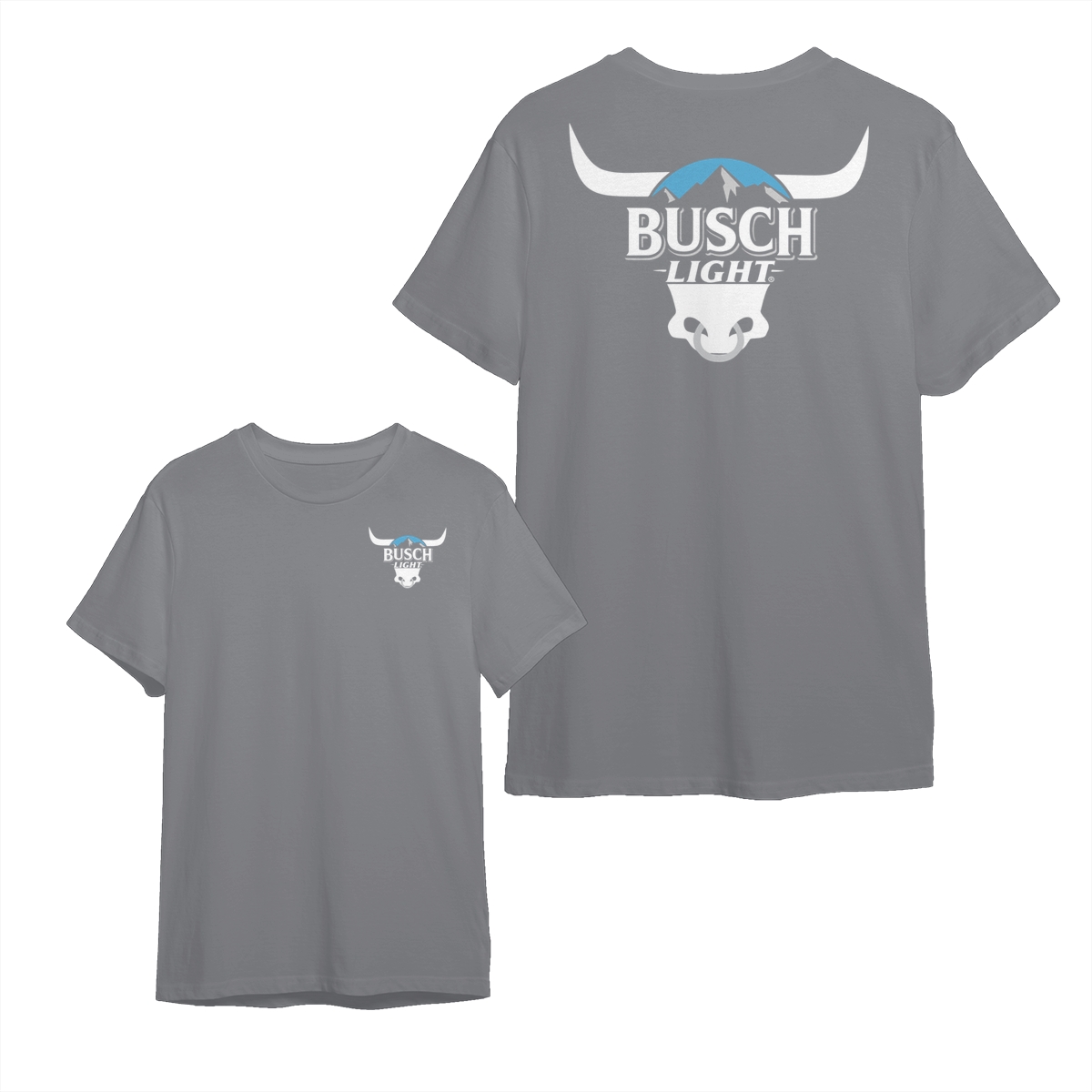 Busch Light Longhorn T-Shirt – Western Skull & Mountains Graphic Tee, Soft Cotton Shirt for Country Beer Lovers, Summer BBQ & Drinking Shirt