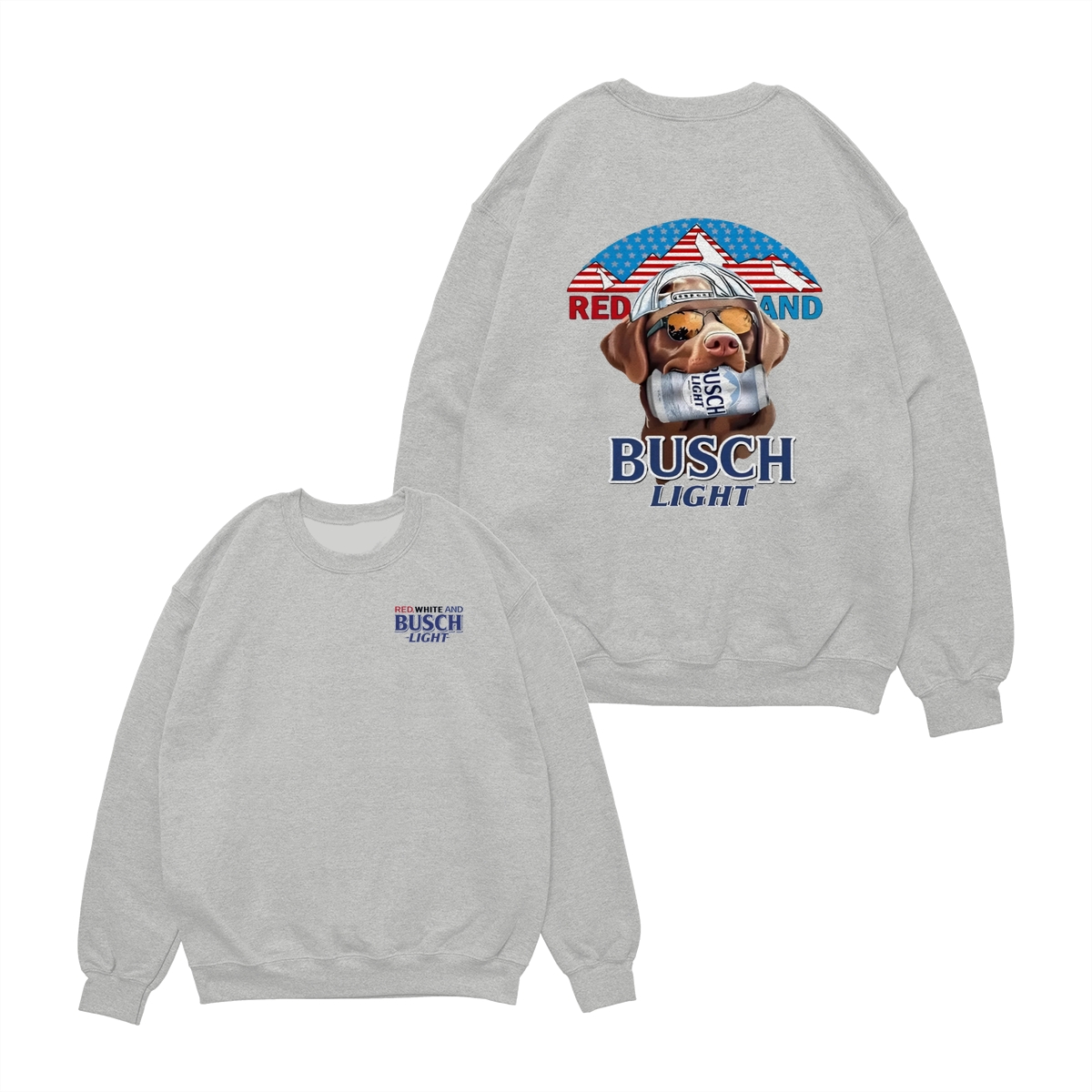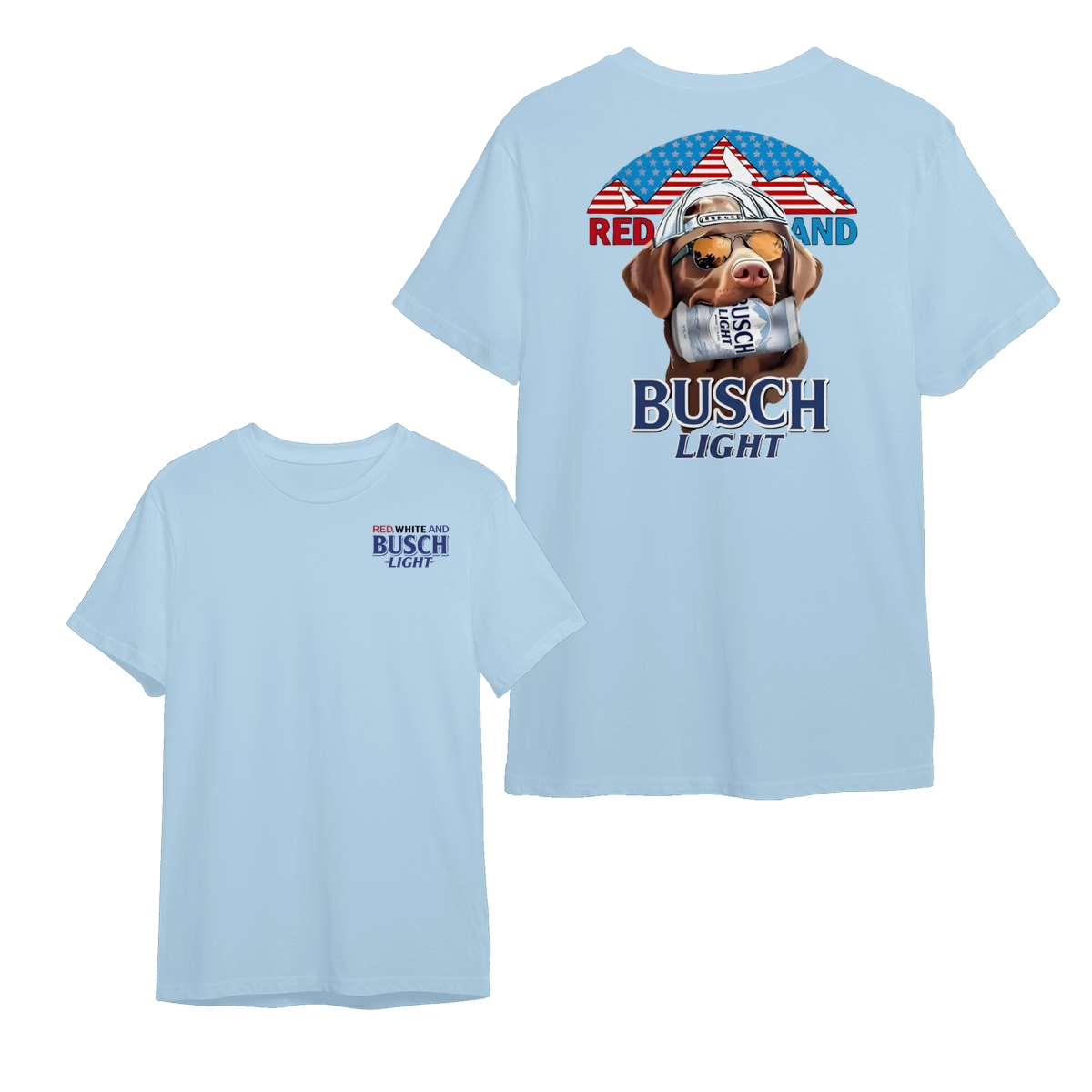 Busch Light Patriotic Dog T-Shirt – Red White and Blue Beer Graphic Tee for Dog and Beer Lovers,Casual Tee for Men & Women, Ships from USA