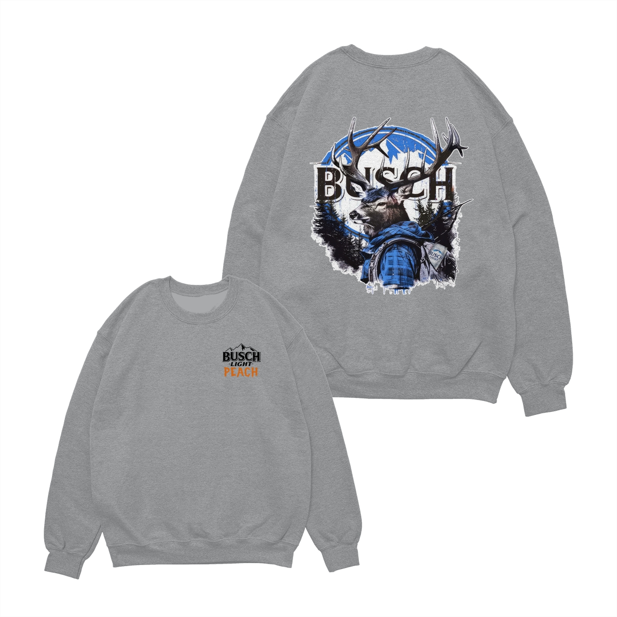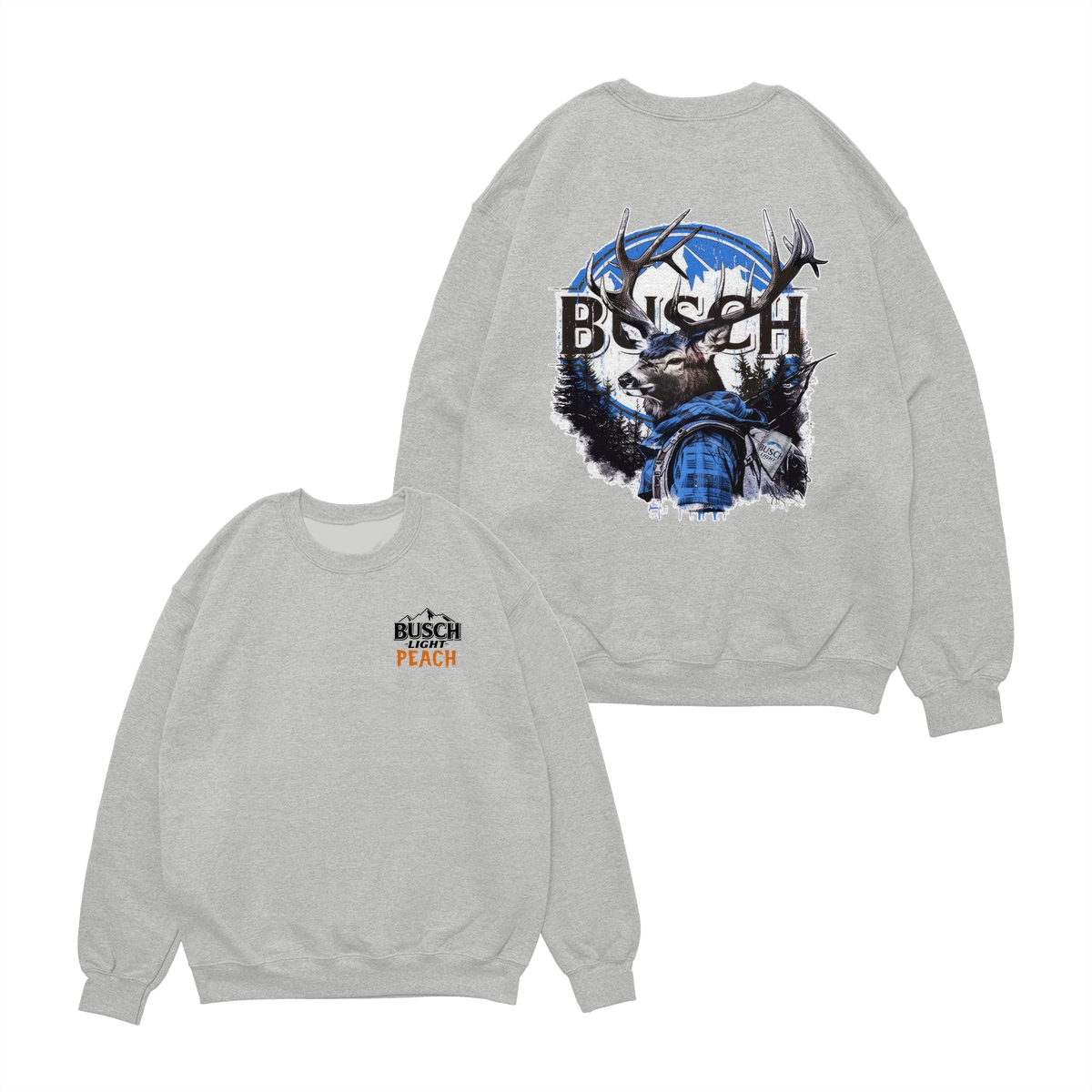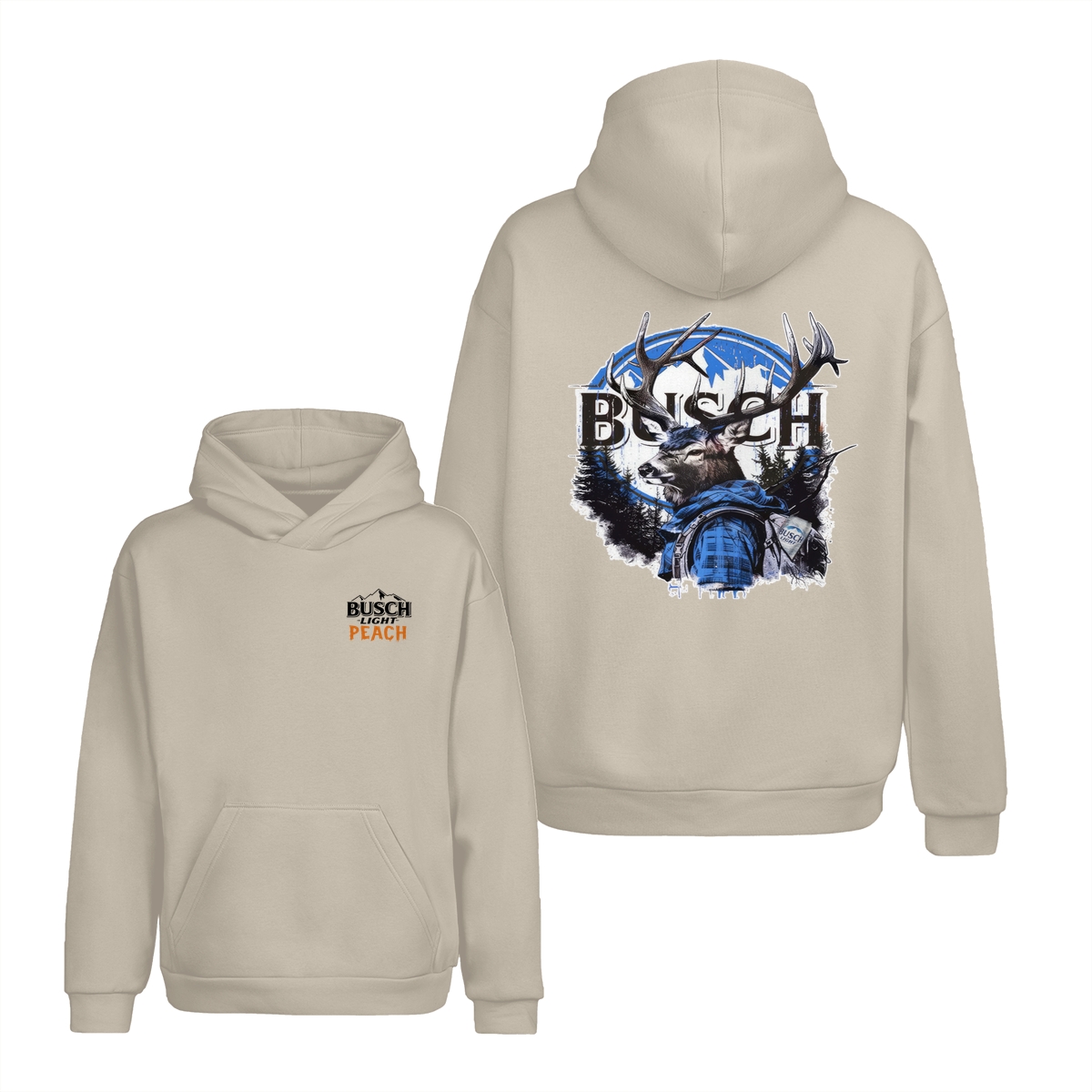 Busch Light Peach Hunting T-Shirt – Beer Merchandise for Hunters, Outdoorsmen, and Nature Enthusiasts, Premium White Cotton Tee with Small Chest Logo, Large Deer Wearing Plaid Shirt Graphic on the Back, Stylish and Comfortable Unisex for Men and Women