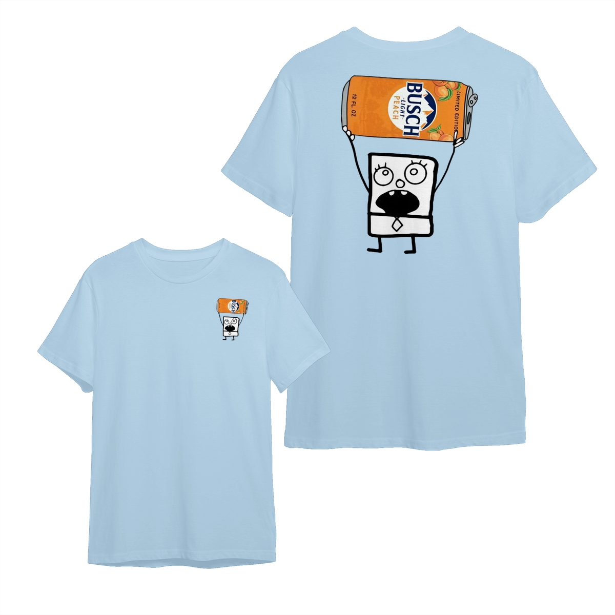 Busch Light Peach T-Shirt – Funny Cartoon Beer Can Design – Unisex Short Sleeve Crew Neck – Limited Edition Men’s Casual Top – Menswear