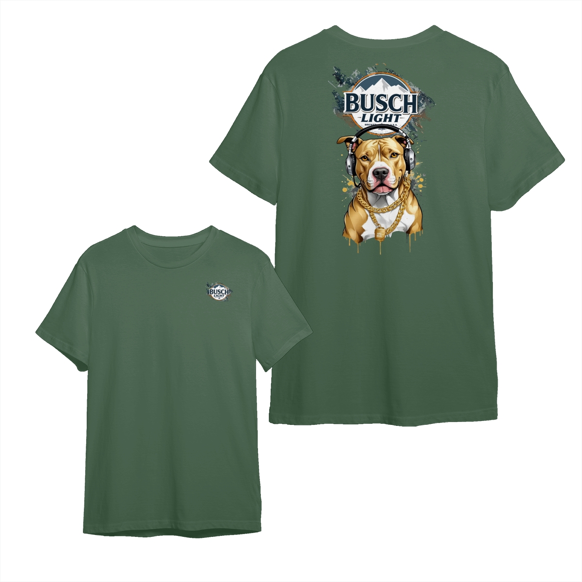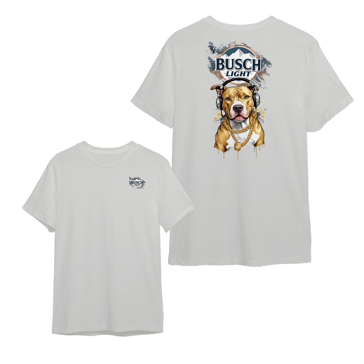 Busch Light T-Shirt – Cool Pitbull With Headphones Graphic , Fun And Stylish Beer Lover Apparel , Comfortable Casual Wear , Ideal For Dog And Music Fans , Perfect Gift For Beer Enthusiasts Menswear Top Unisex Classic
