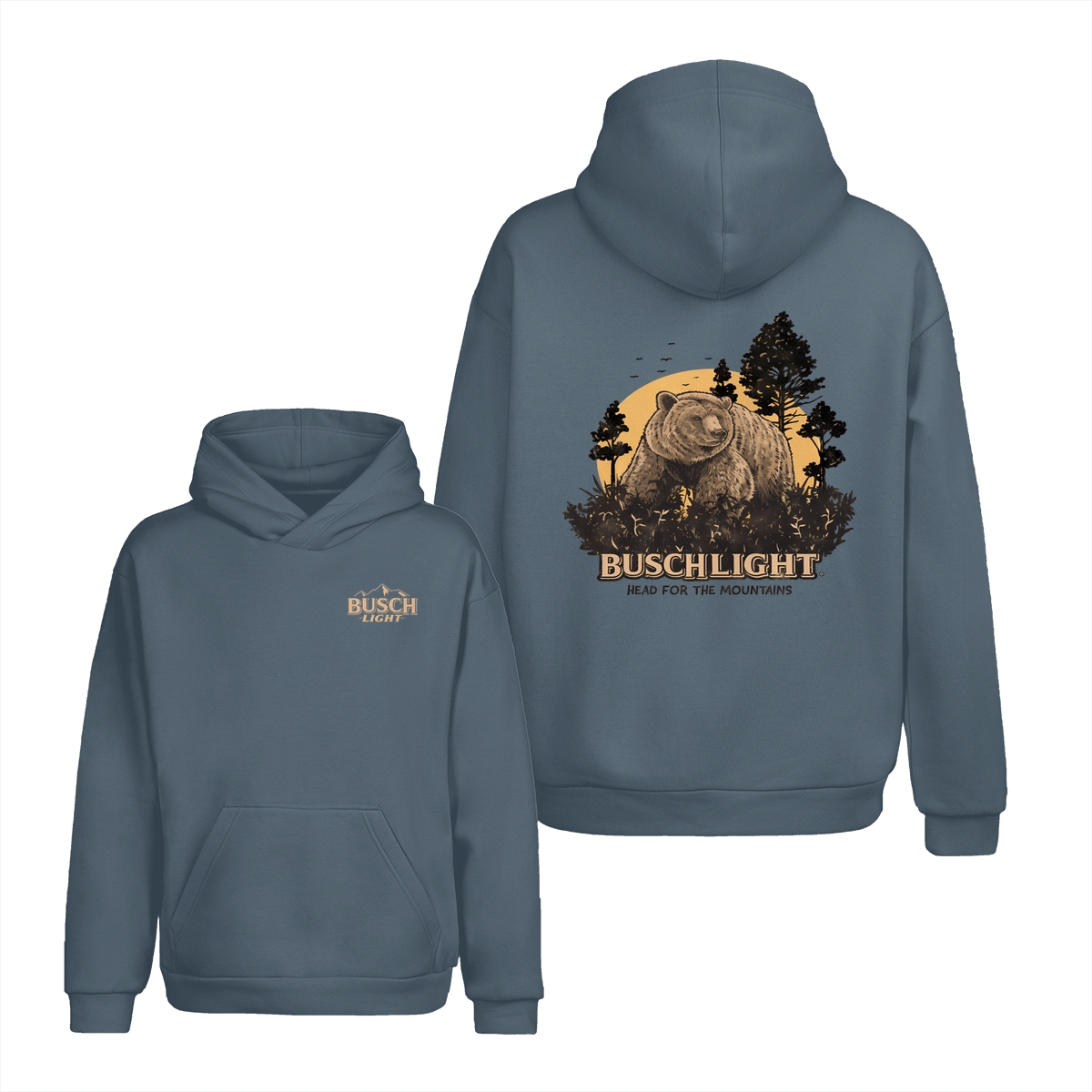 Busch Light T-Shirt, ‘Head for the Mountains’ Bear Graphic, Add to Cart Buy Now Tee, Outdoor Beer Lover Style for Nature Fans Cotton Menswear