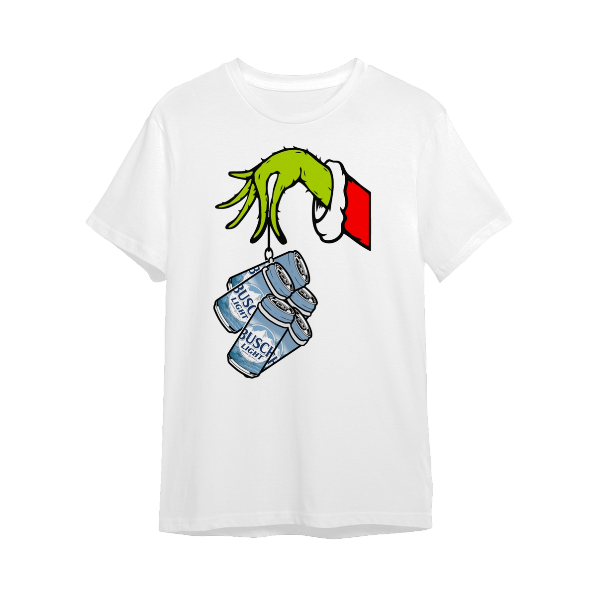 Busch Light The Grin Hand Holding Busch Beer Cans Green Guy Christmas Season Graphic Printed Unisex Classic Cotton Crewneck Hoodie Sweatshirt