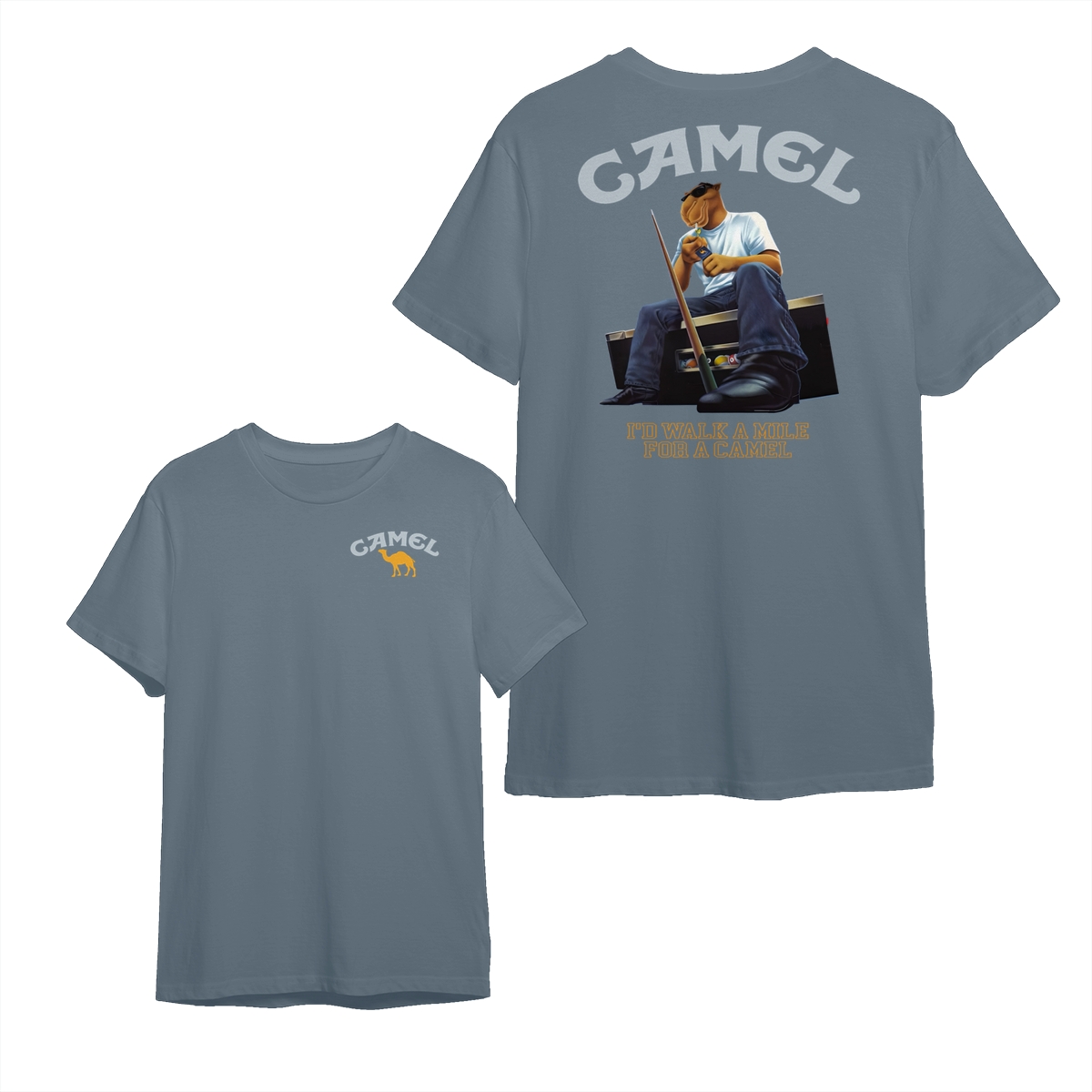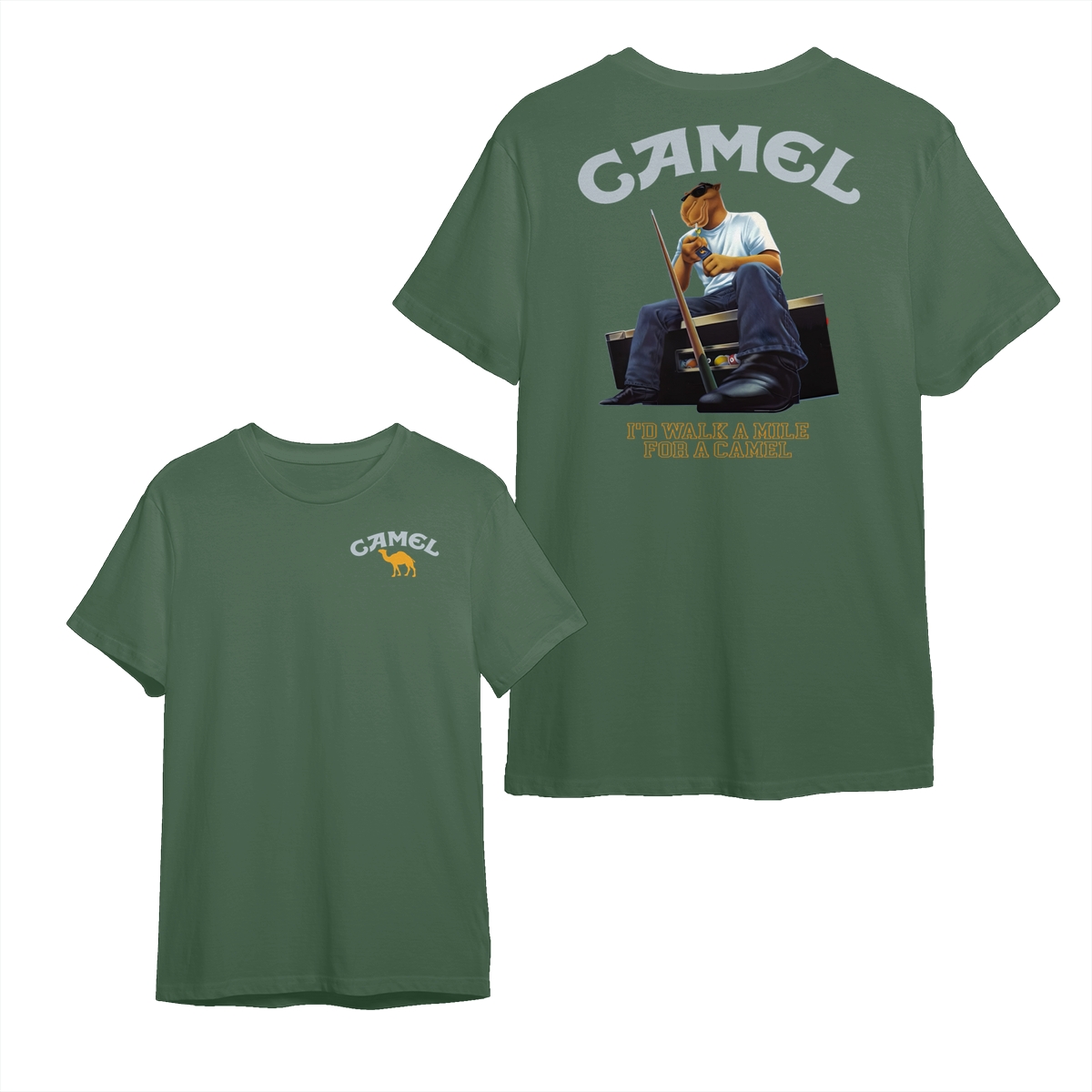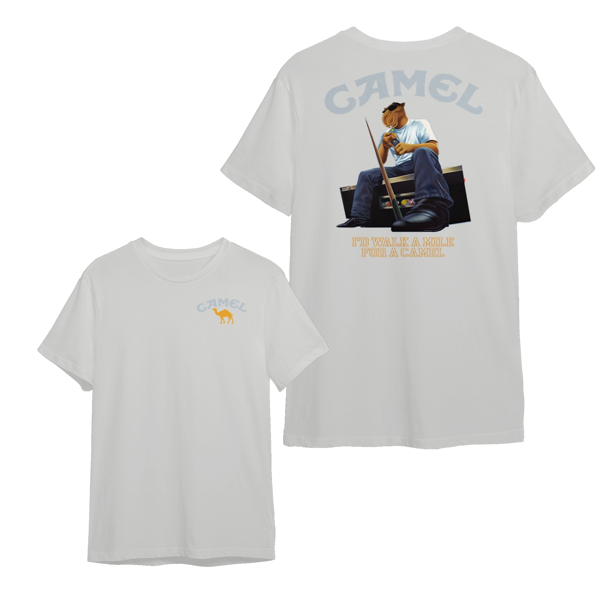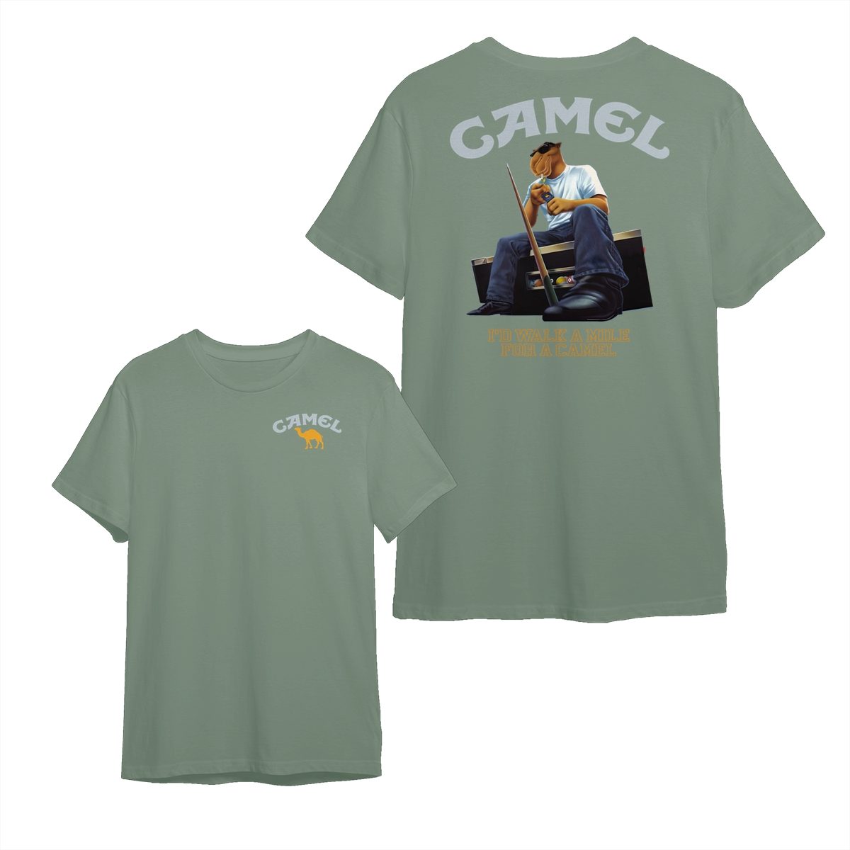 Camel T-Shirt, Retro Camel Mascot Sitting with Cool Attitude Graphic, Classic Americana Style Humor Tee, comfort color shirts, Men gifts, esthetician apparel, Crew Neck, Unisex – Menswear, Top, Streetwear