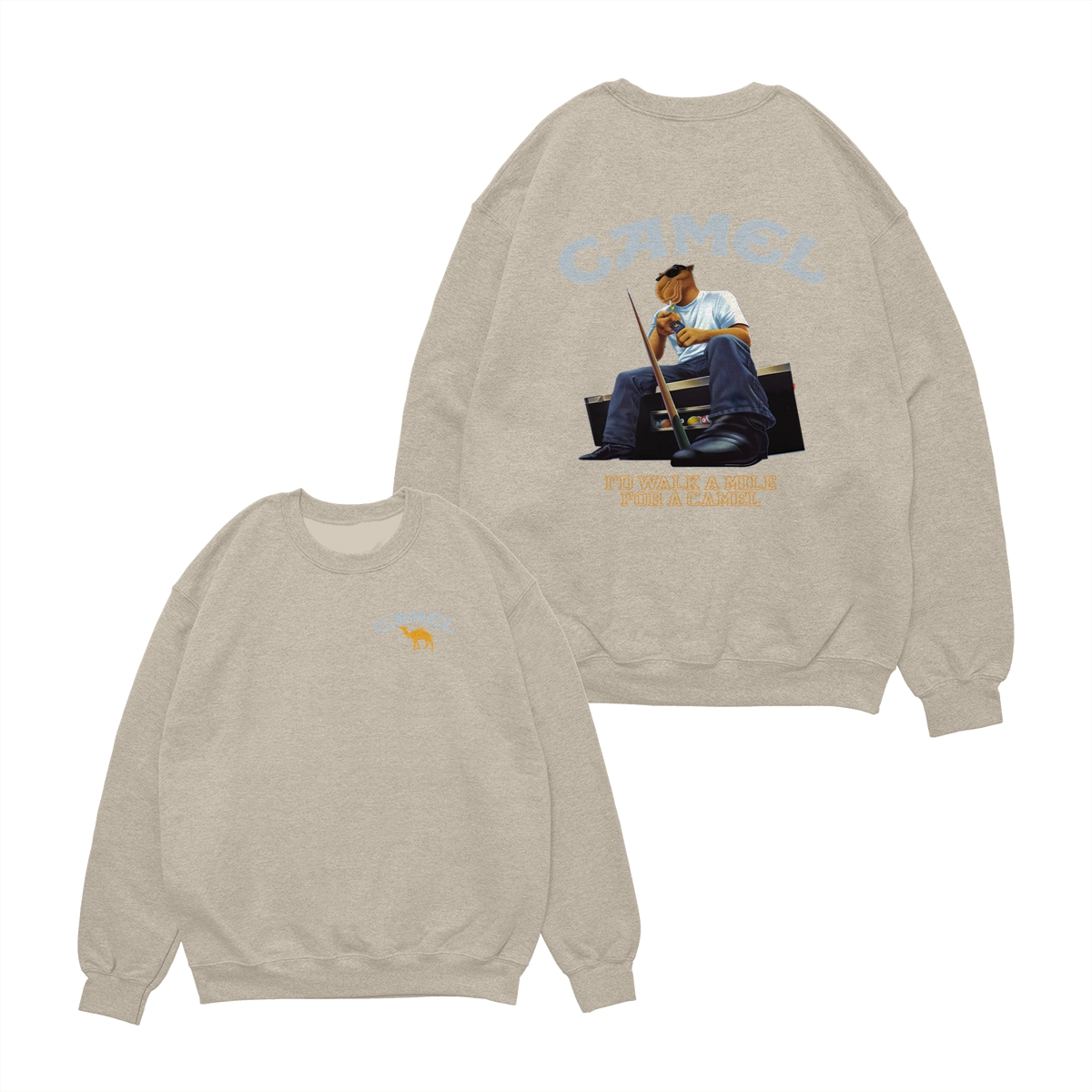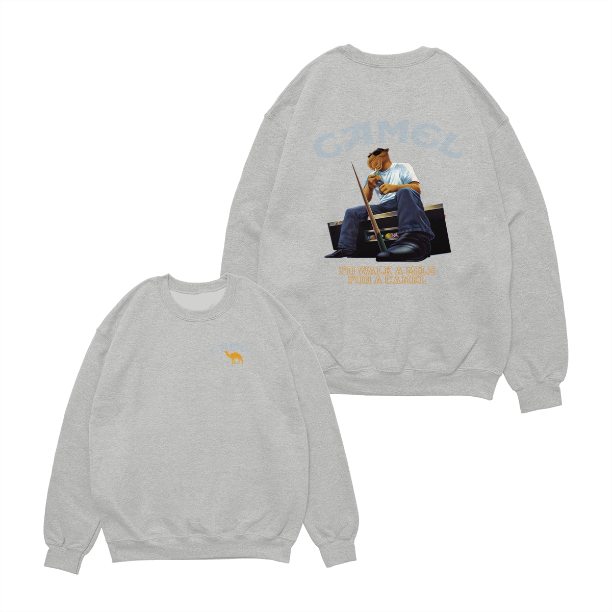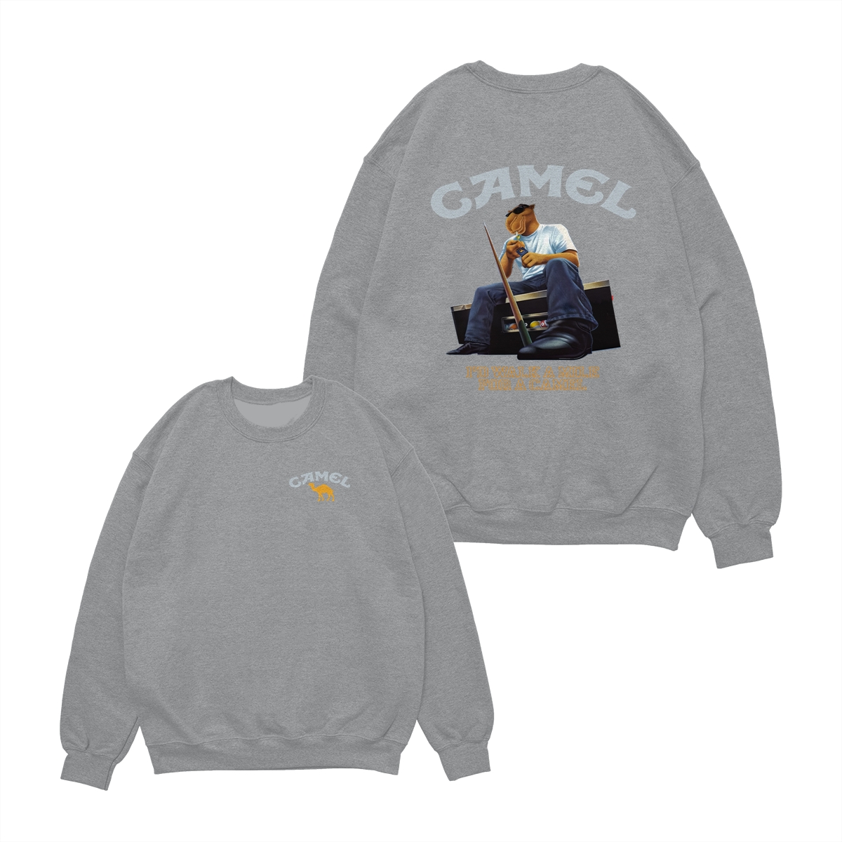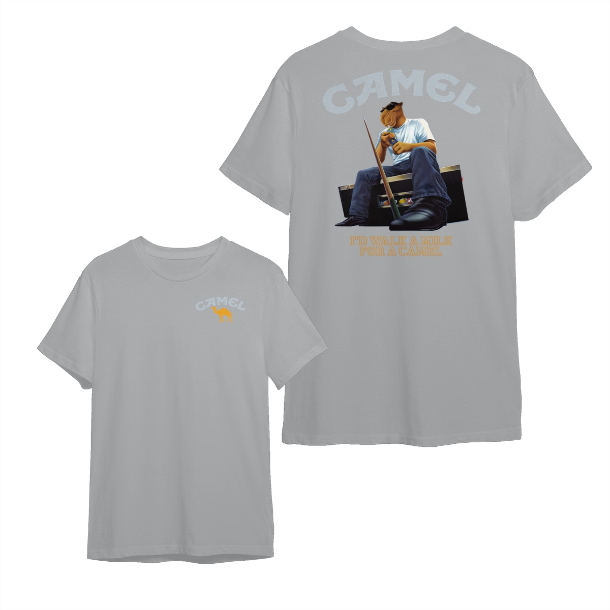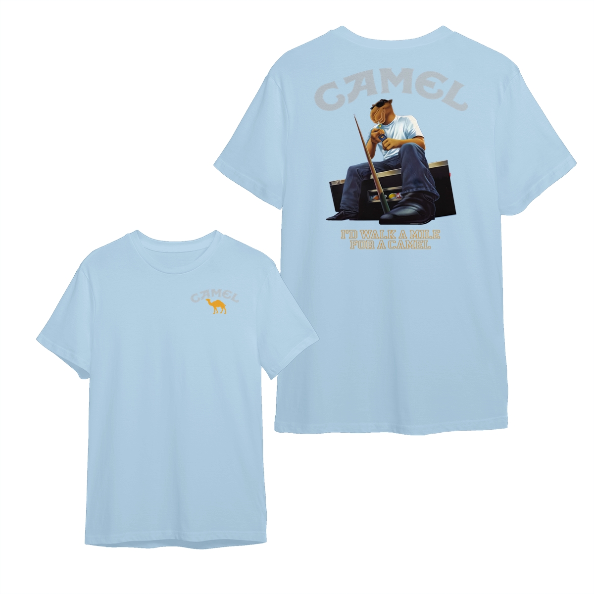 Camel T-Shirt, Retro Camel Mascot Sitting with Cool Attitude Graphic, Classic Americana Style Humor Tee, comfort color shirts, Men gifts, esthetician apparel, Crew Neck, Unisex – Menswear, Top, Streetwear