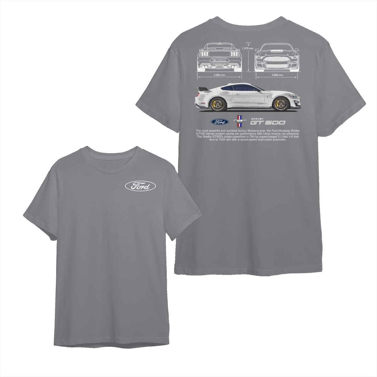 Car Themed T-Shirts, Mustang Shelby GT500 T-Shirt, Mustang Shelby GT500 Technical Specs T-Shirt, Racing Sport Car Shirt- Menswear Top