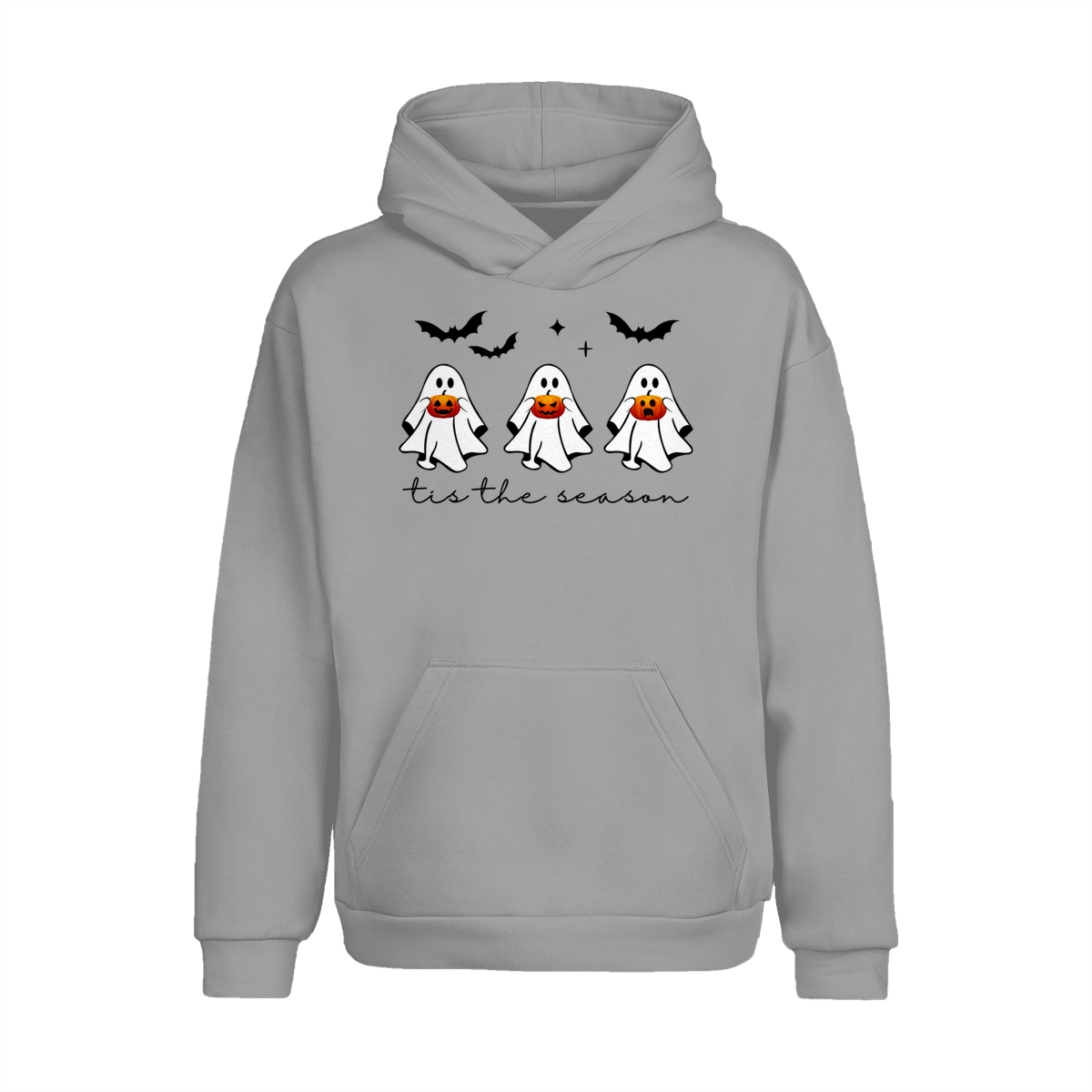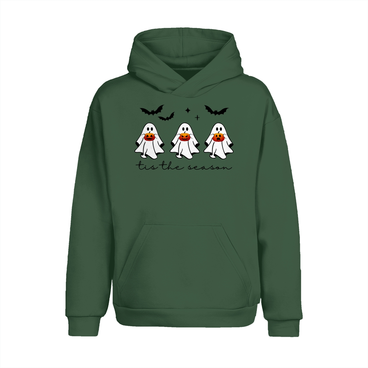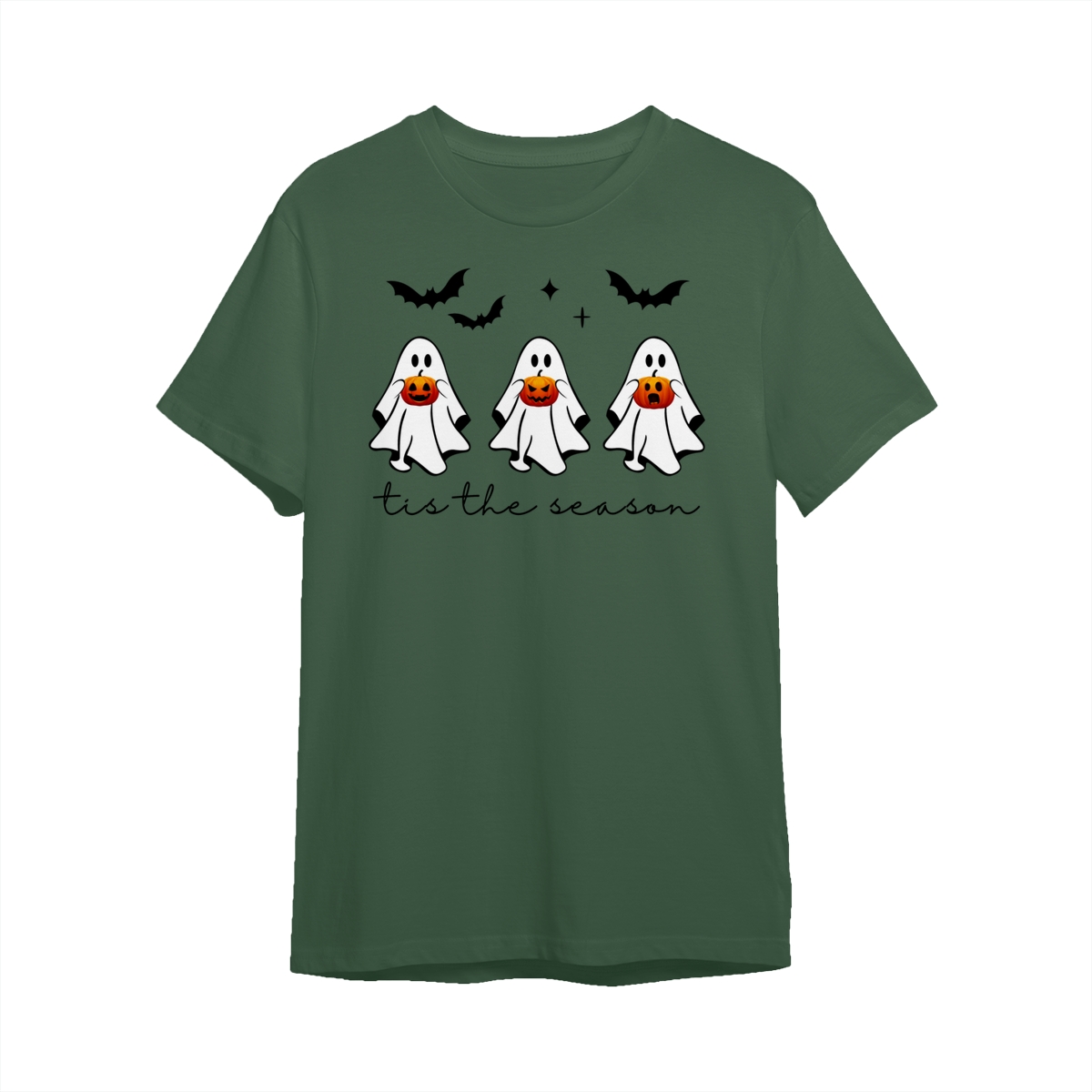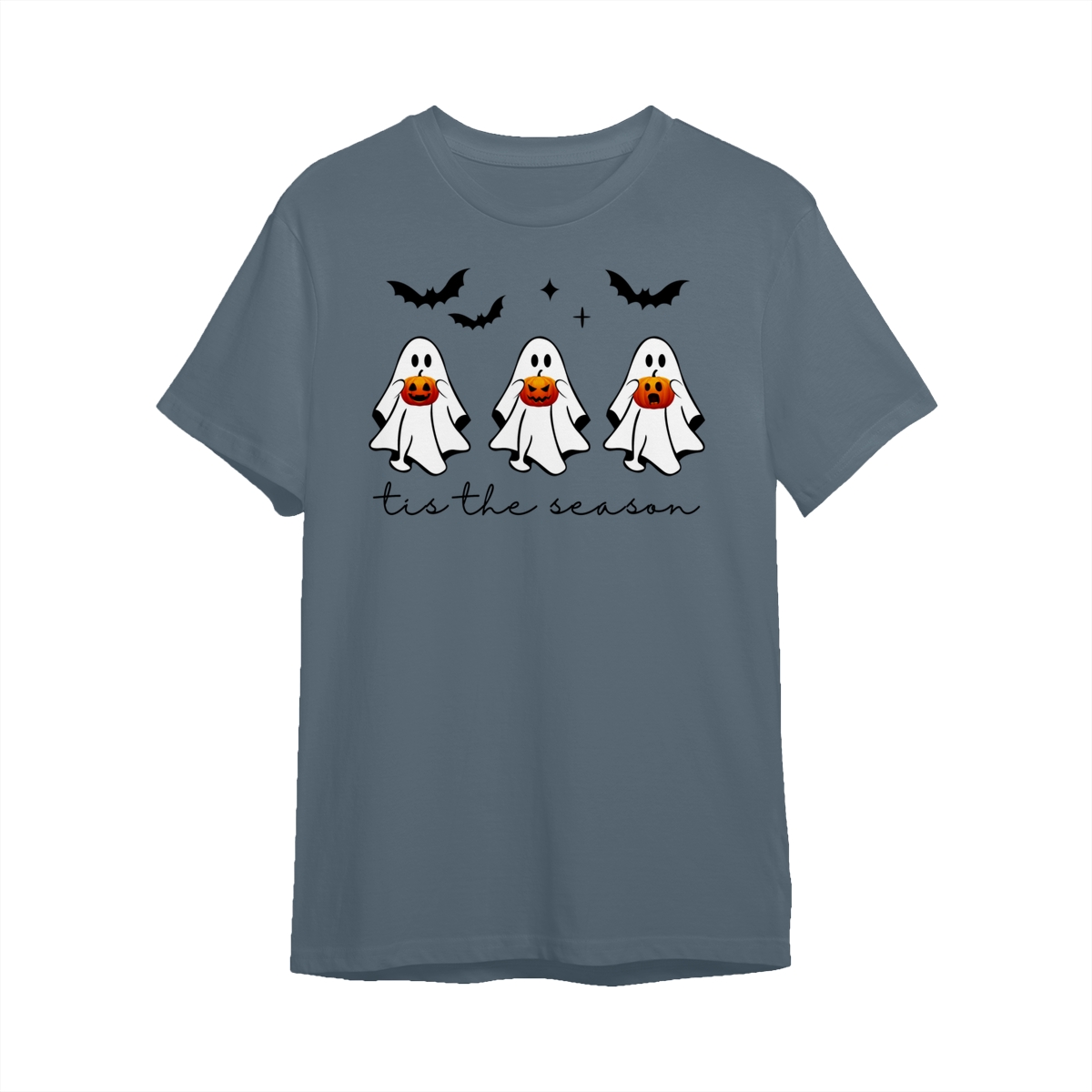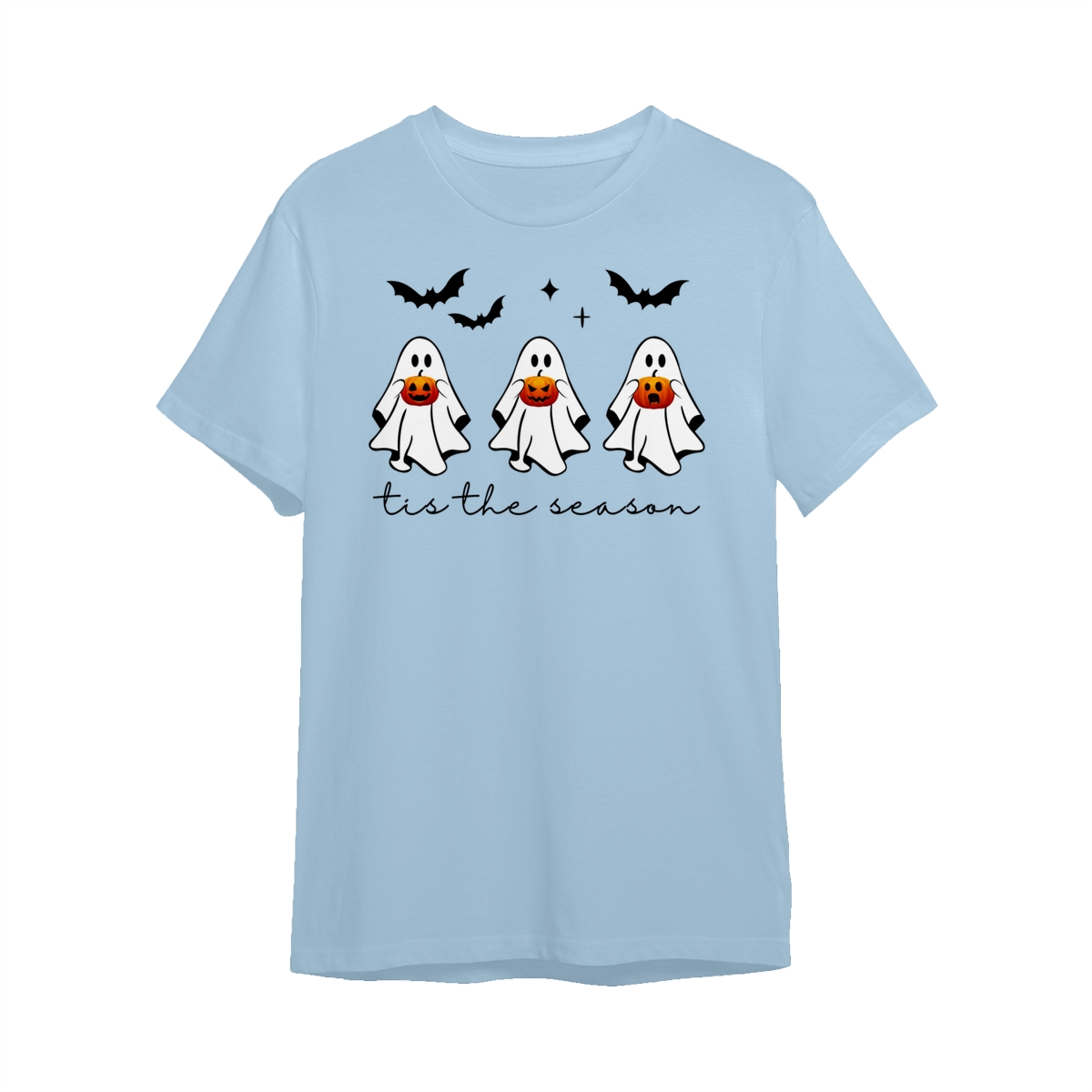 Cartoon Ghost & Bat & Letter Print Shirt, Halloween Themed Cute Casual Drop Shoulder Crew Neck Pullover for Daily Wear, Ladies Fall