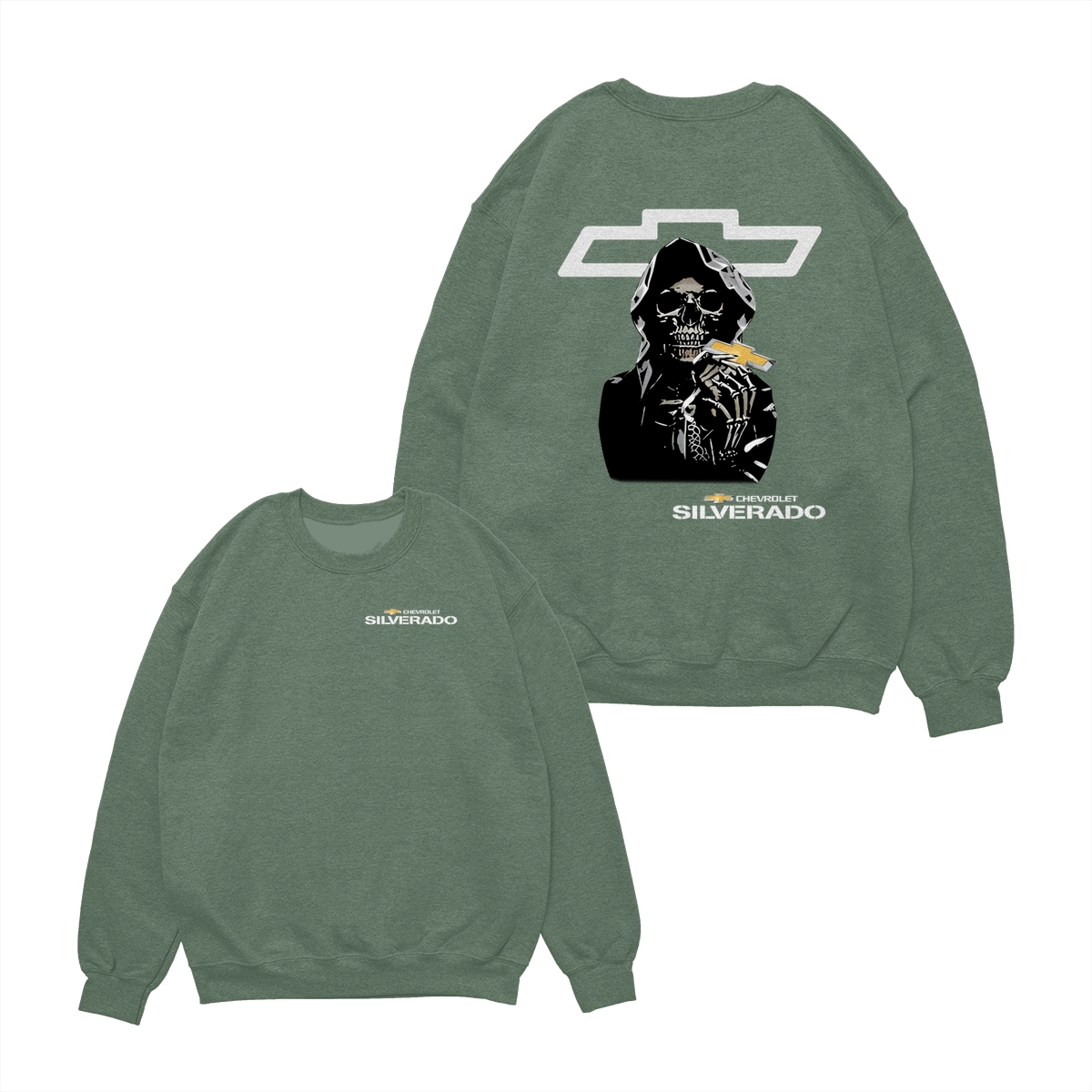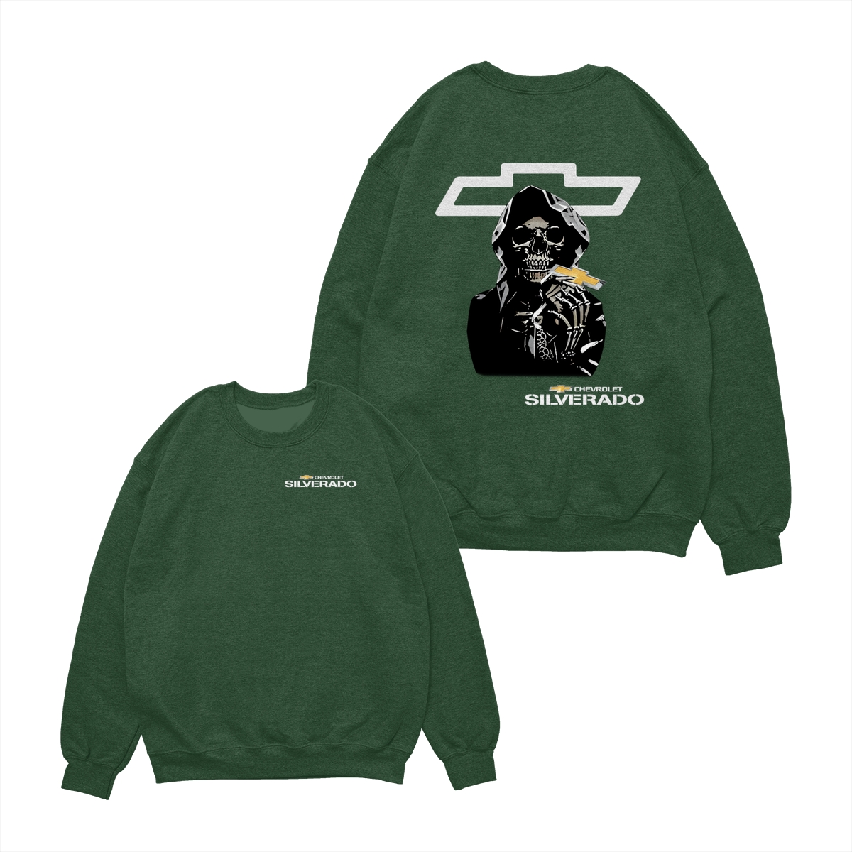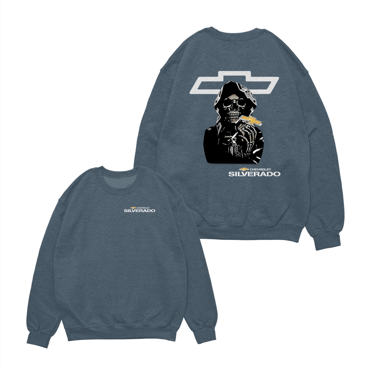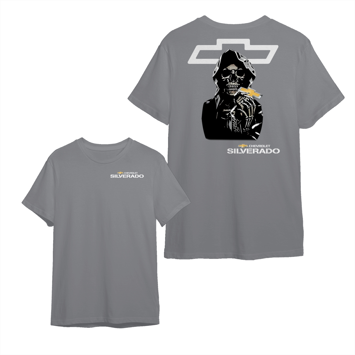 Chevrolet Silverado T-Shirt – Edgy Hooded Skeleton Graphic Tee, Black Casual Shirt, Perfect for Chevy Fans and Truck Enthusiasts