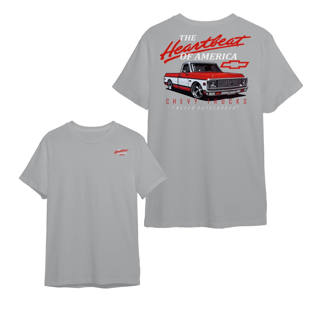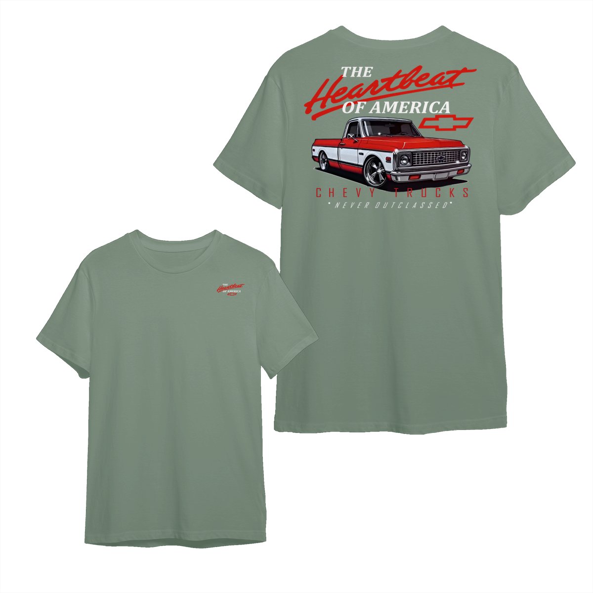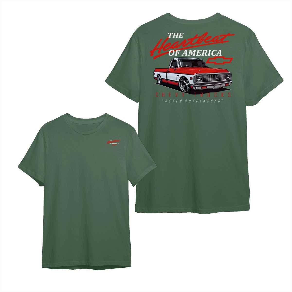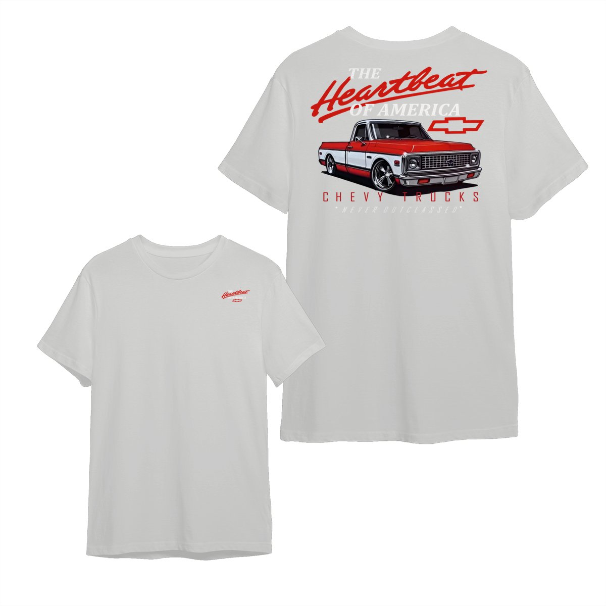 Chevy Trucks Heartbeat of America T-Shirt – Classic Red & White Pickup Graphic, Retro Chevrolet Logo Tee, Black Muscle Car Shirt for Auto Enthusiasts, Gift for Chevy Lovers and Vintage Truck Fans