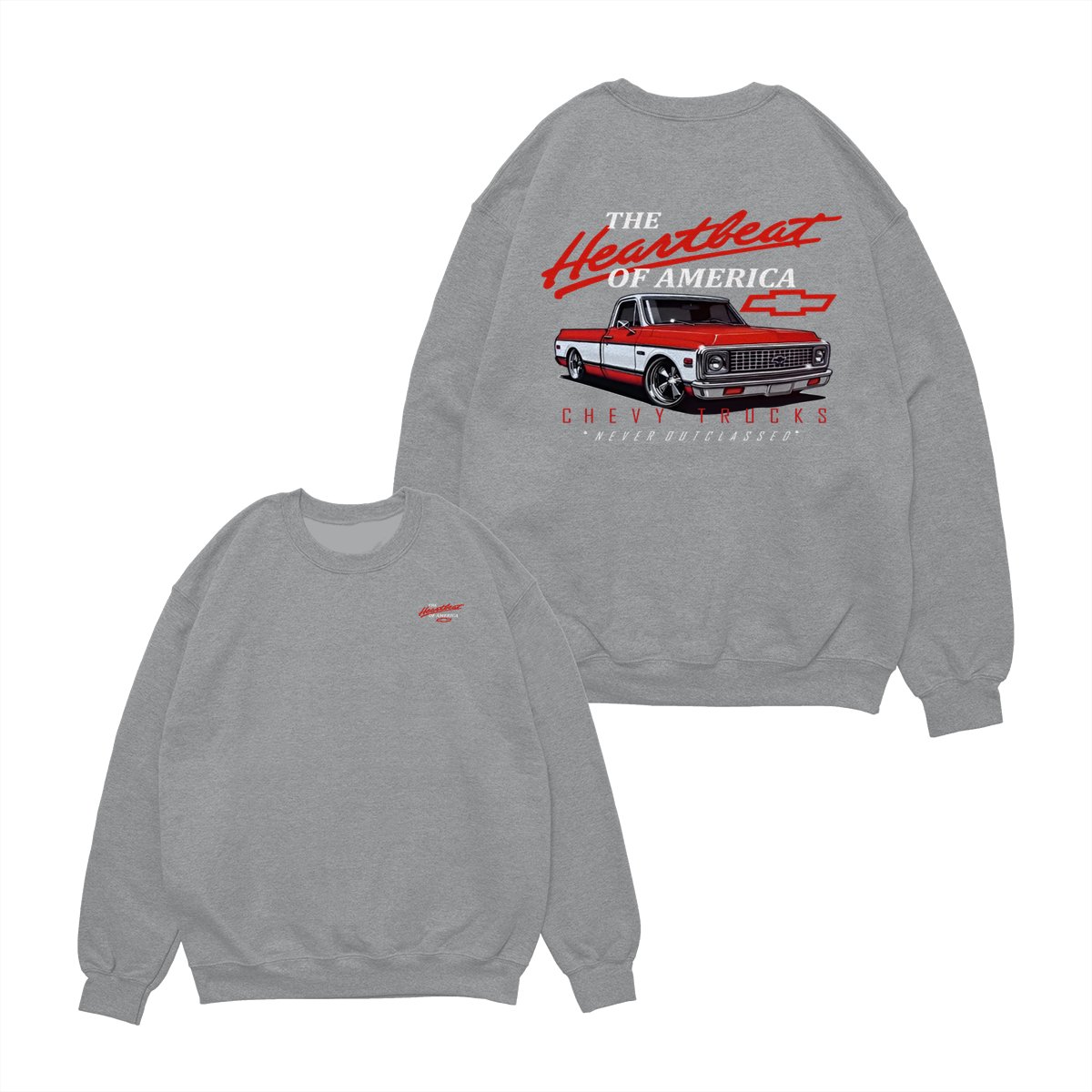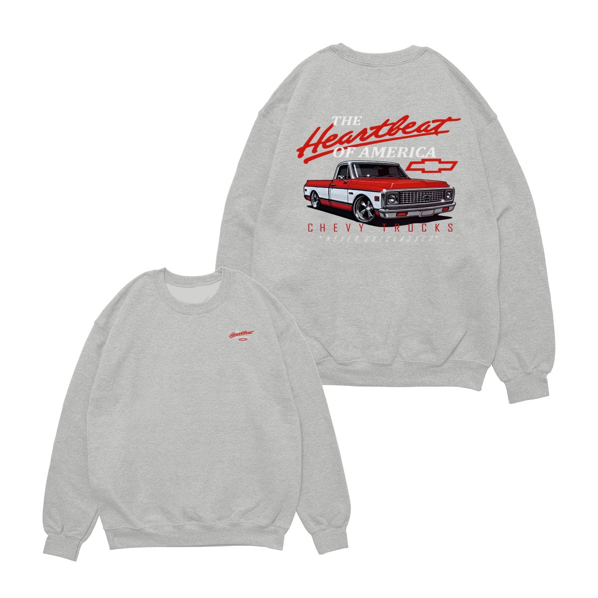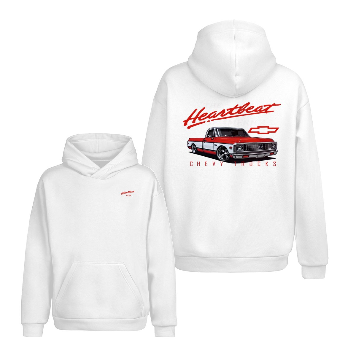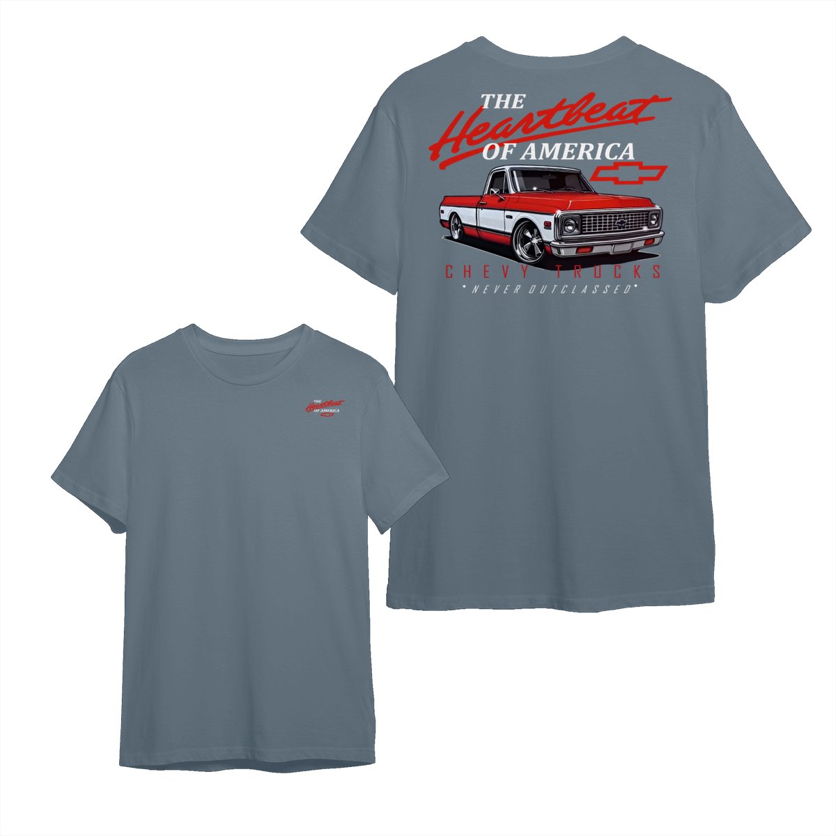 Chevy Trucks Heartbeat of America T-Shirt – Classic Red & White Pickup Graphic, Retro Chevrolet Logo Tee, Black Muscle Car Shirt for Auto Enthusiasts, Gift for Chevy Lovers and Vintage Truck Fans