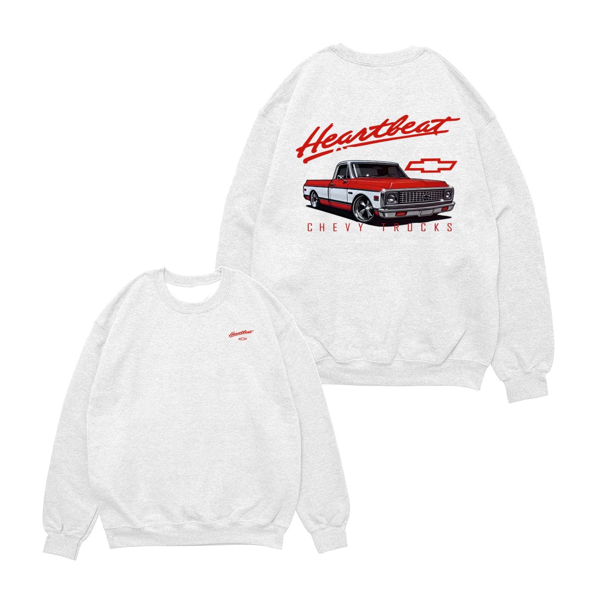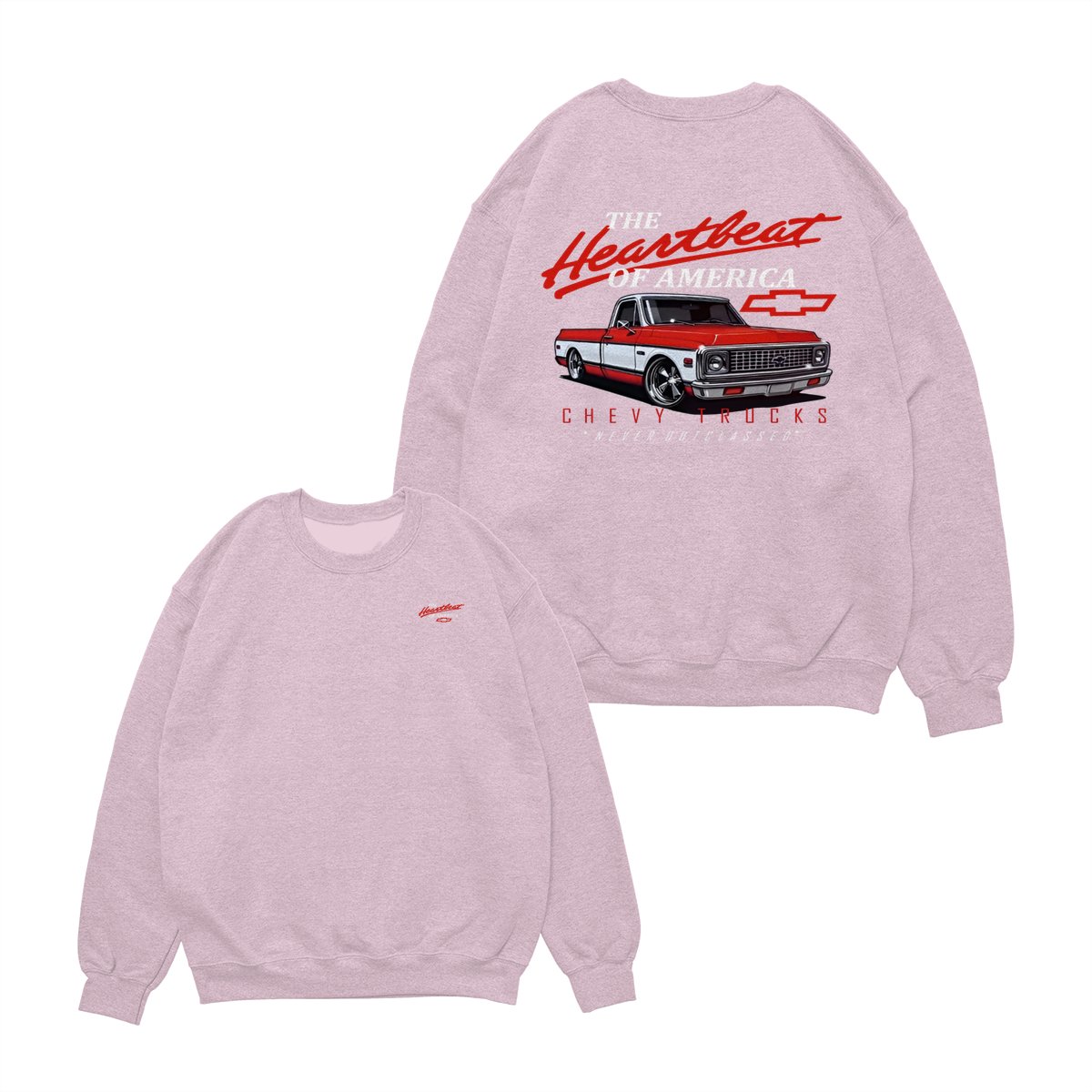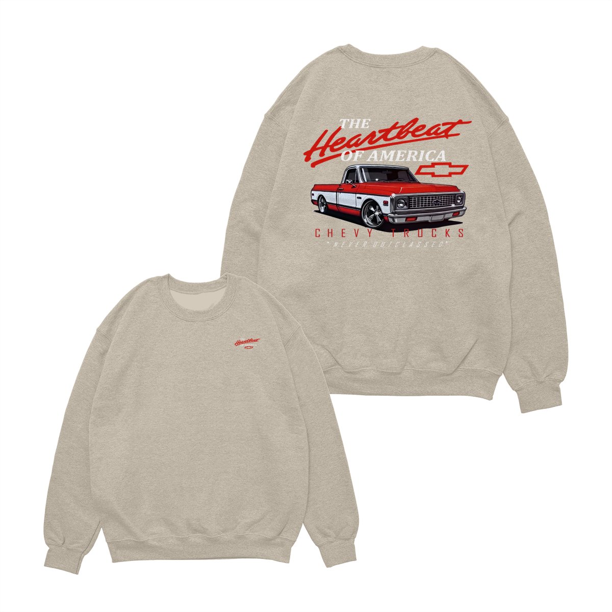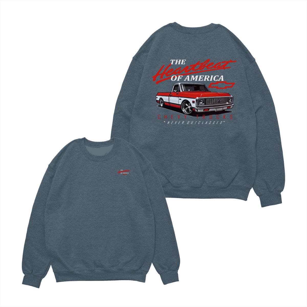 Chevy Trucks Heartbeat of America T-Shirt – Classic Red & White Pickup Graphic, Retro Chevrolet Logo Tee, Black Muscle Car Shirt for Auto Enthusiasts, Gift for Chevy Lovers and Vintage Truck Fans
