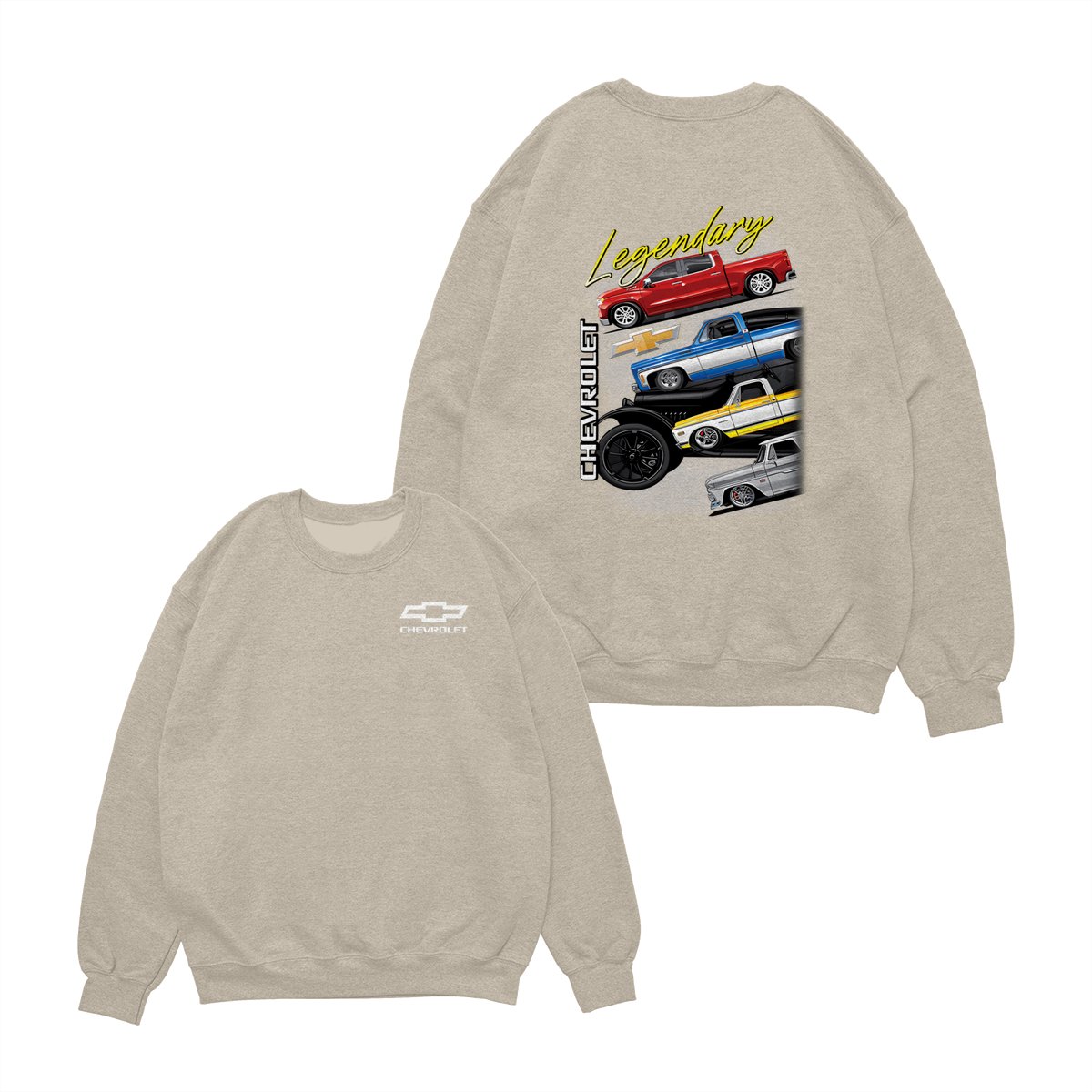 Chevy Trucks Shirt – “Legendary” Pickup Lineup Graphic Pullover, Vintage Chevrolet Streetwear for Men & Women, Unisex Car Enthusiast Style – Menswear Top shirts men Soft Kangaroo
