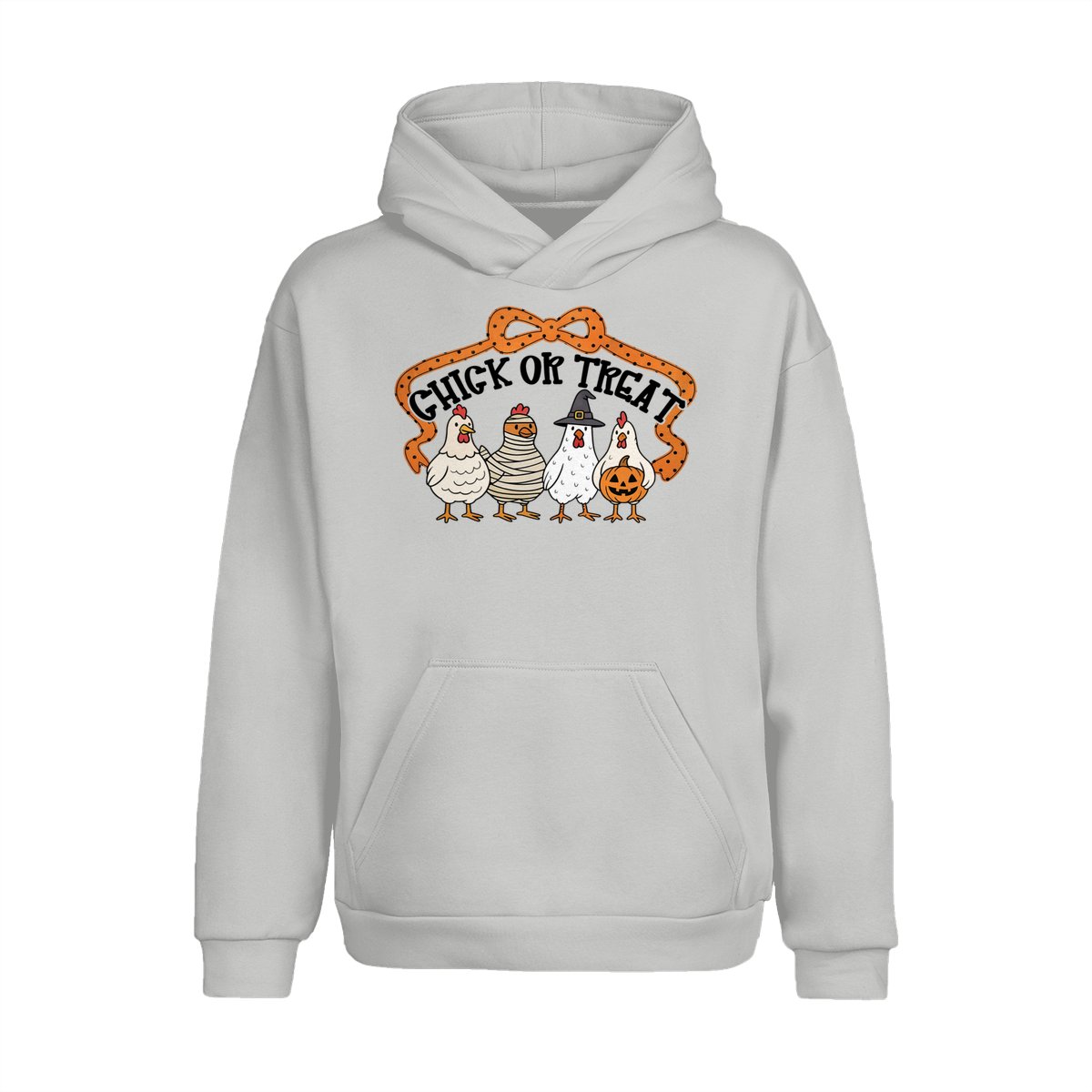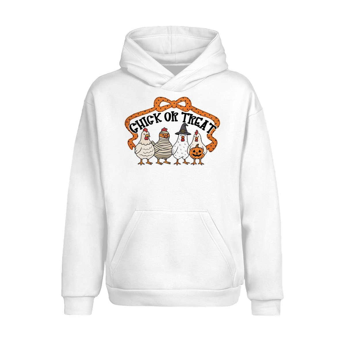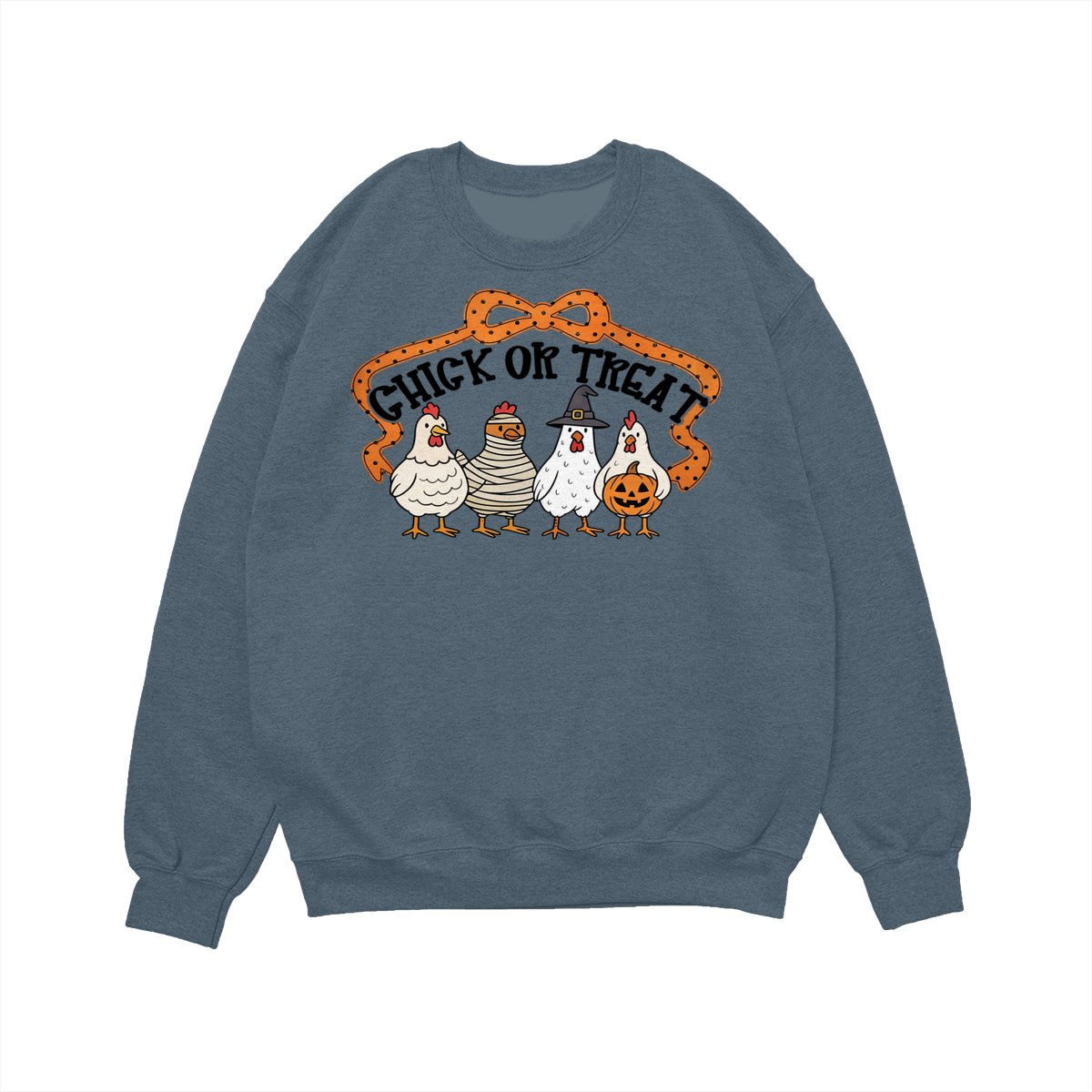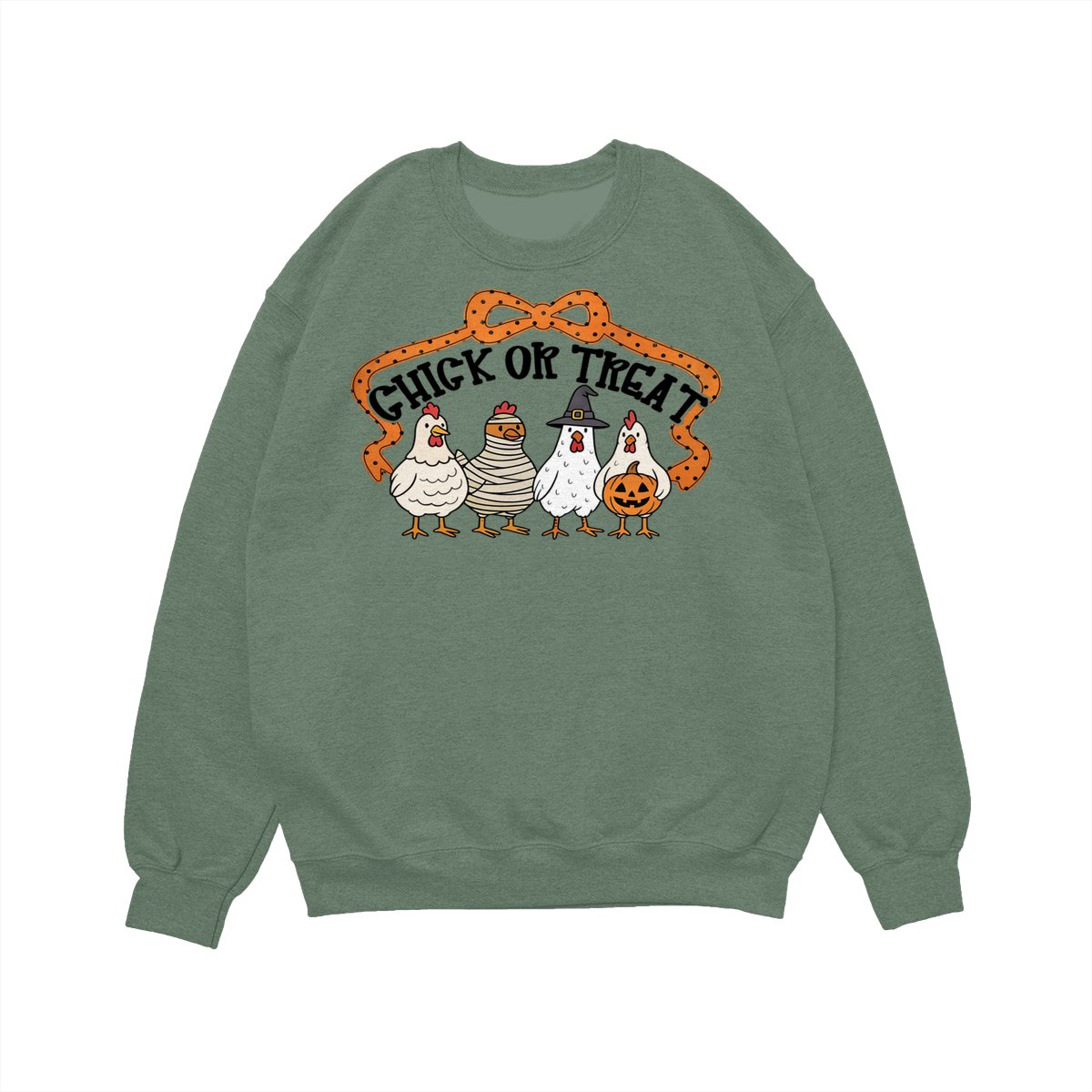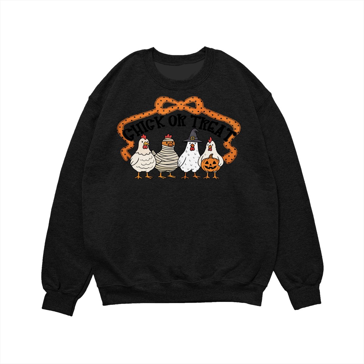 Chick or Treat Halloween TShirt/Sweatshirt/Hoodie – Funny Chicken Costume Design for Fall Cozy Unisex Sweater for Poultry Lovers TikTok Shop Store Women’s Casual Crewneck Long Sleeve 100% Cotton for Ash Colors
