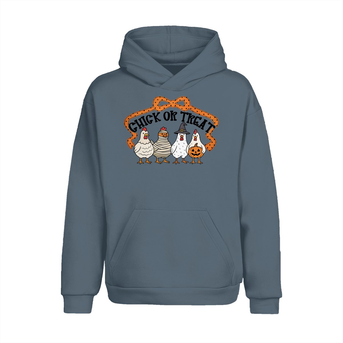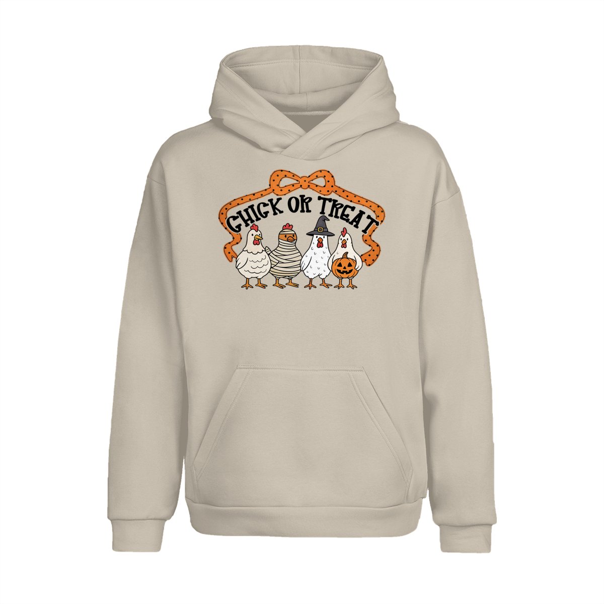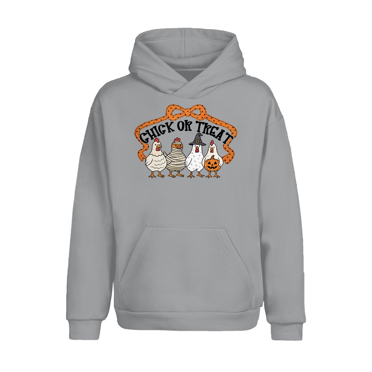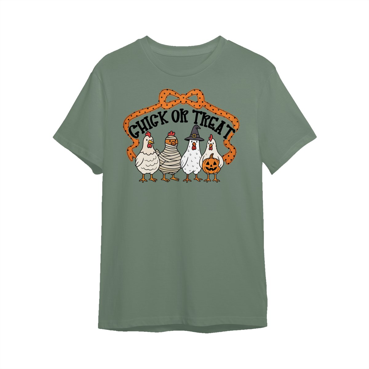 Chick or Treat Halloween TShirt/Sweatshirt/Hoodie – Funny Chicken Costume Design for Fall Cozy Unisex Sweater for Poultry Lovers TikTok Shop Store Women’s Casual Crewneck Long Sleeve 100% Cotton for Ash Colors