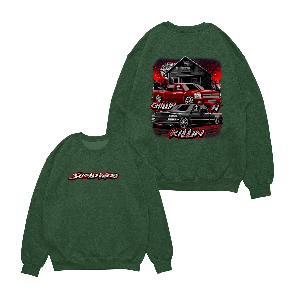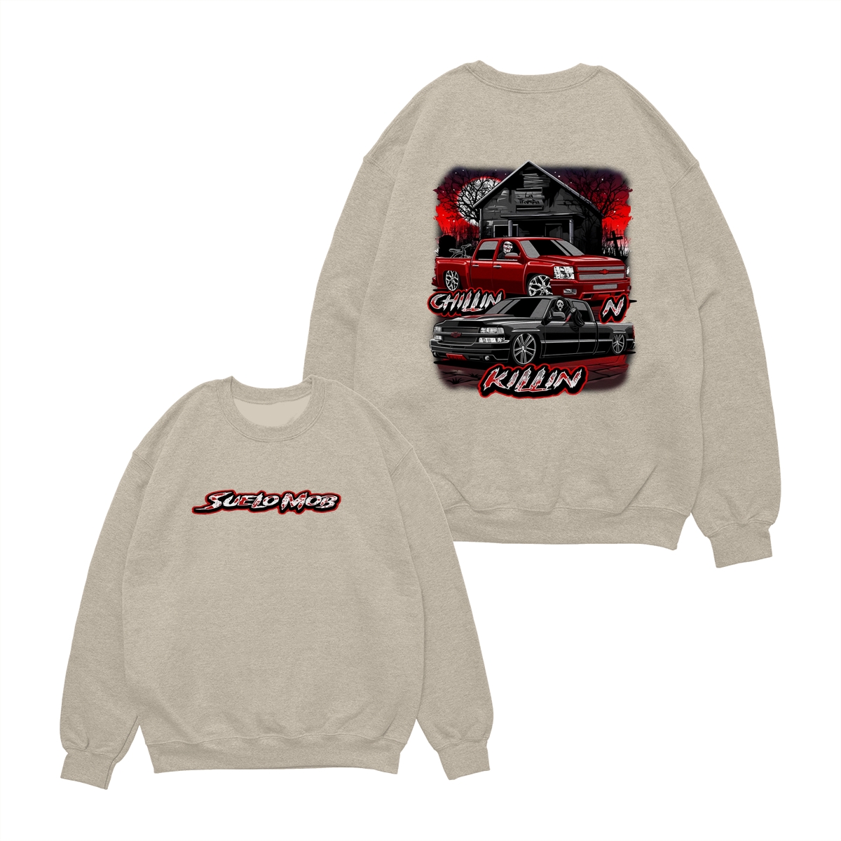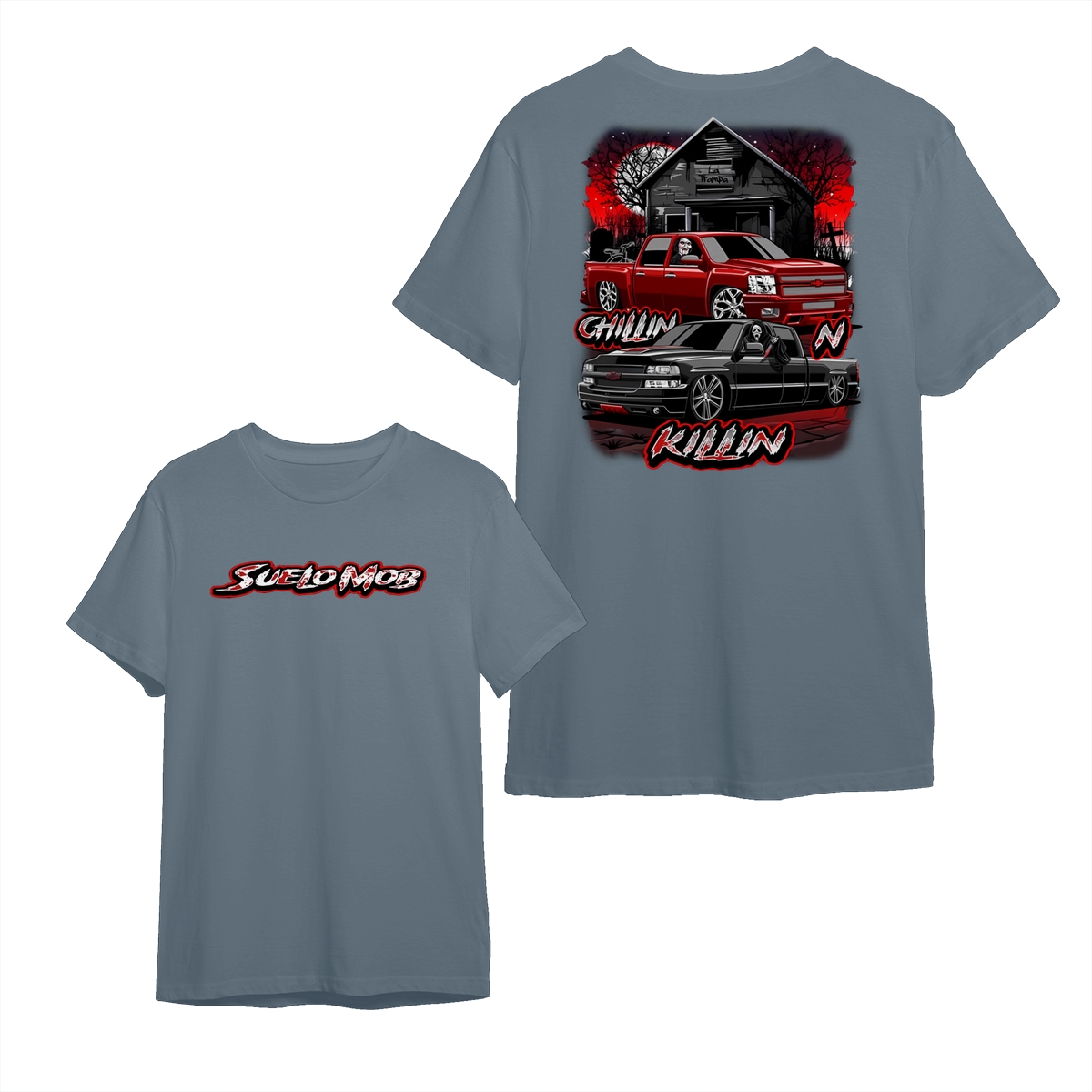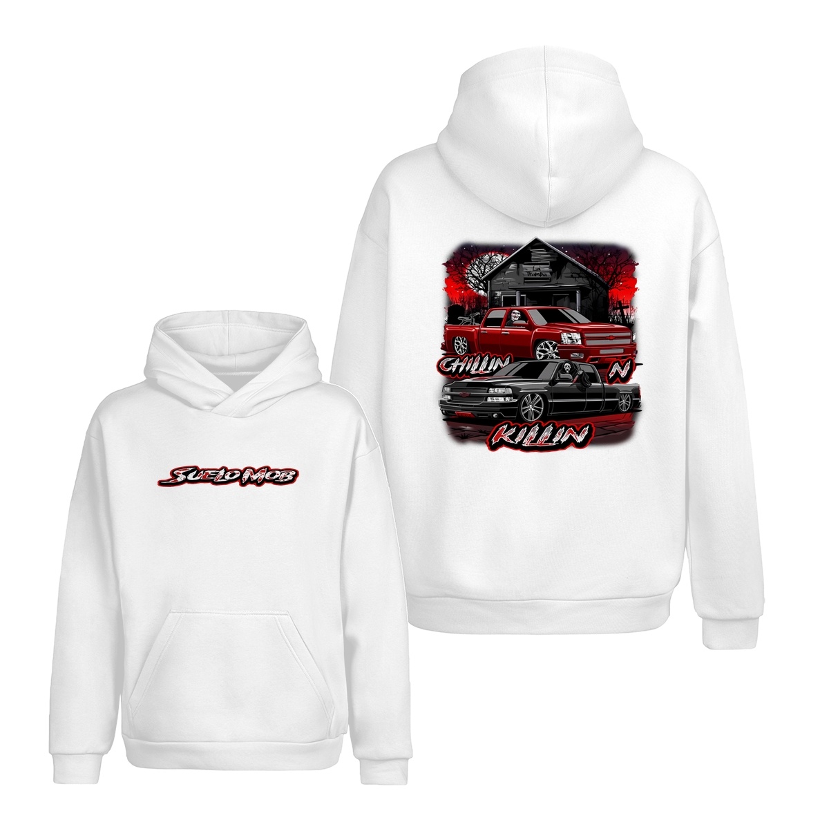 Chillin N Killin Car T-Shirt Sweatshirt Hoodie for Men – Car Enthusiast Apparel, Car Lover Gift, Cool Automotive Merch