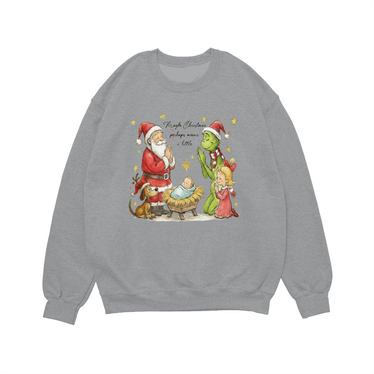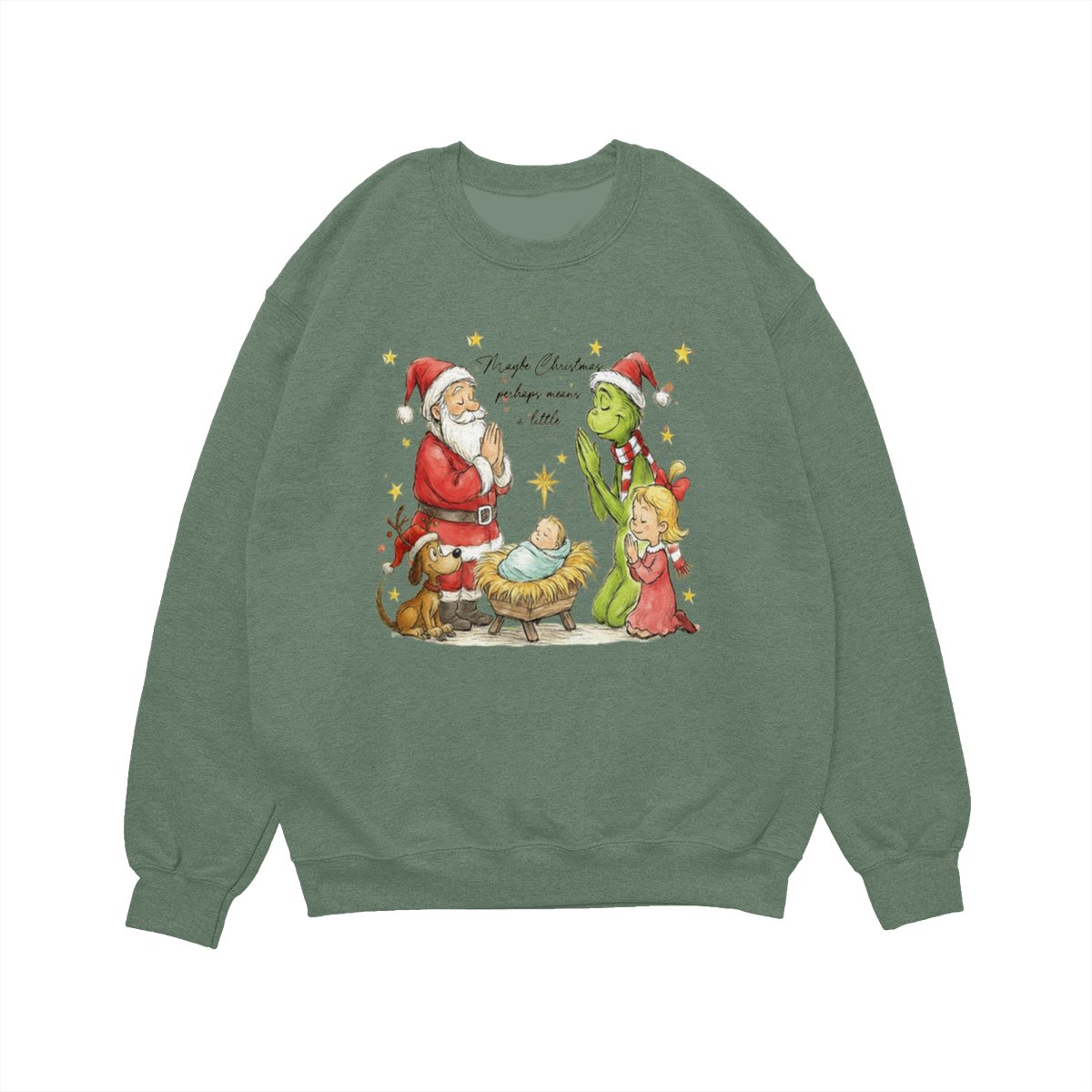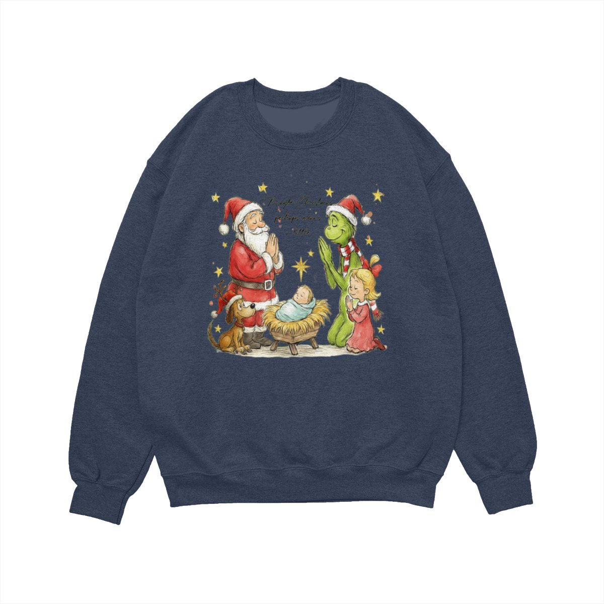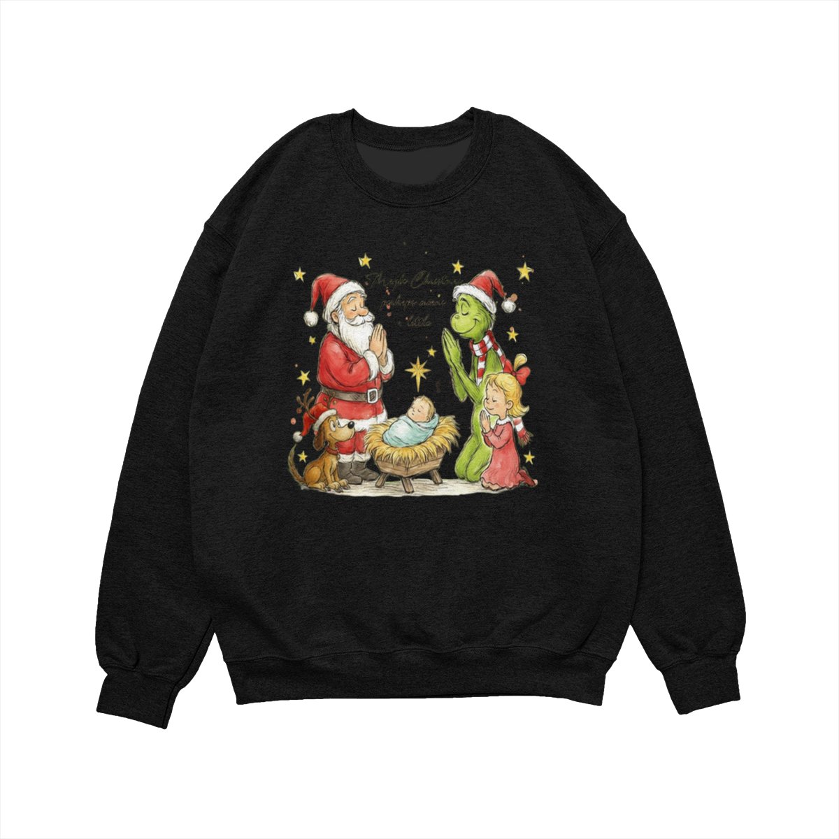 Christian Green Christmas Sweatshirt, Funny Mean Guy Christmas Tee, Grinch and Santa Nativity Scene, Christmas Movie Shirt, Trendy Christmas
