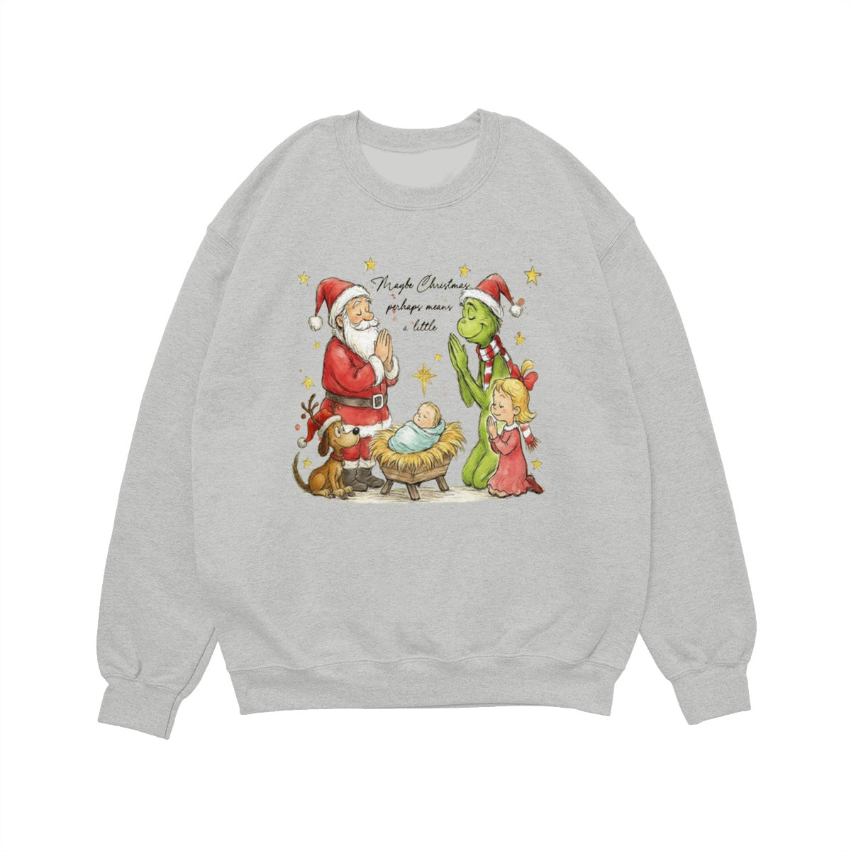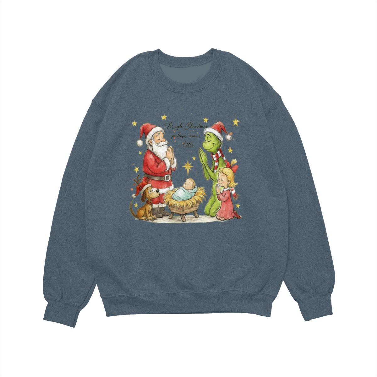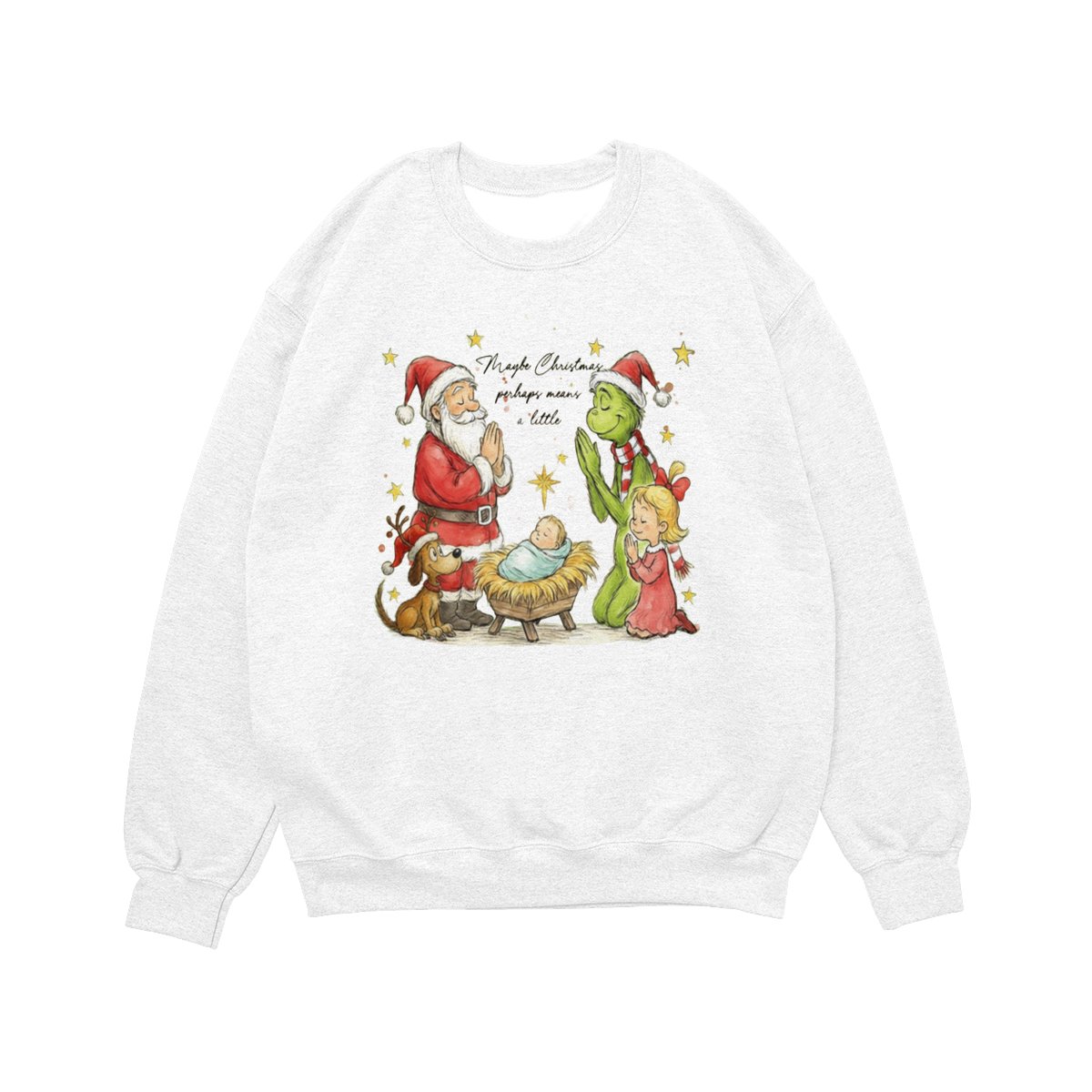 Christian Green Christmas Sweatshirt, Funny Mean Guy Christmas Tee, Grinch and Santa Nativity Scene, Christmas Movie Shirt, Trendy Christmas