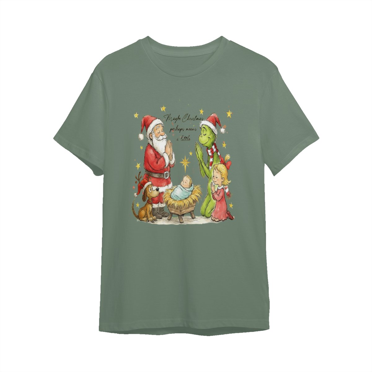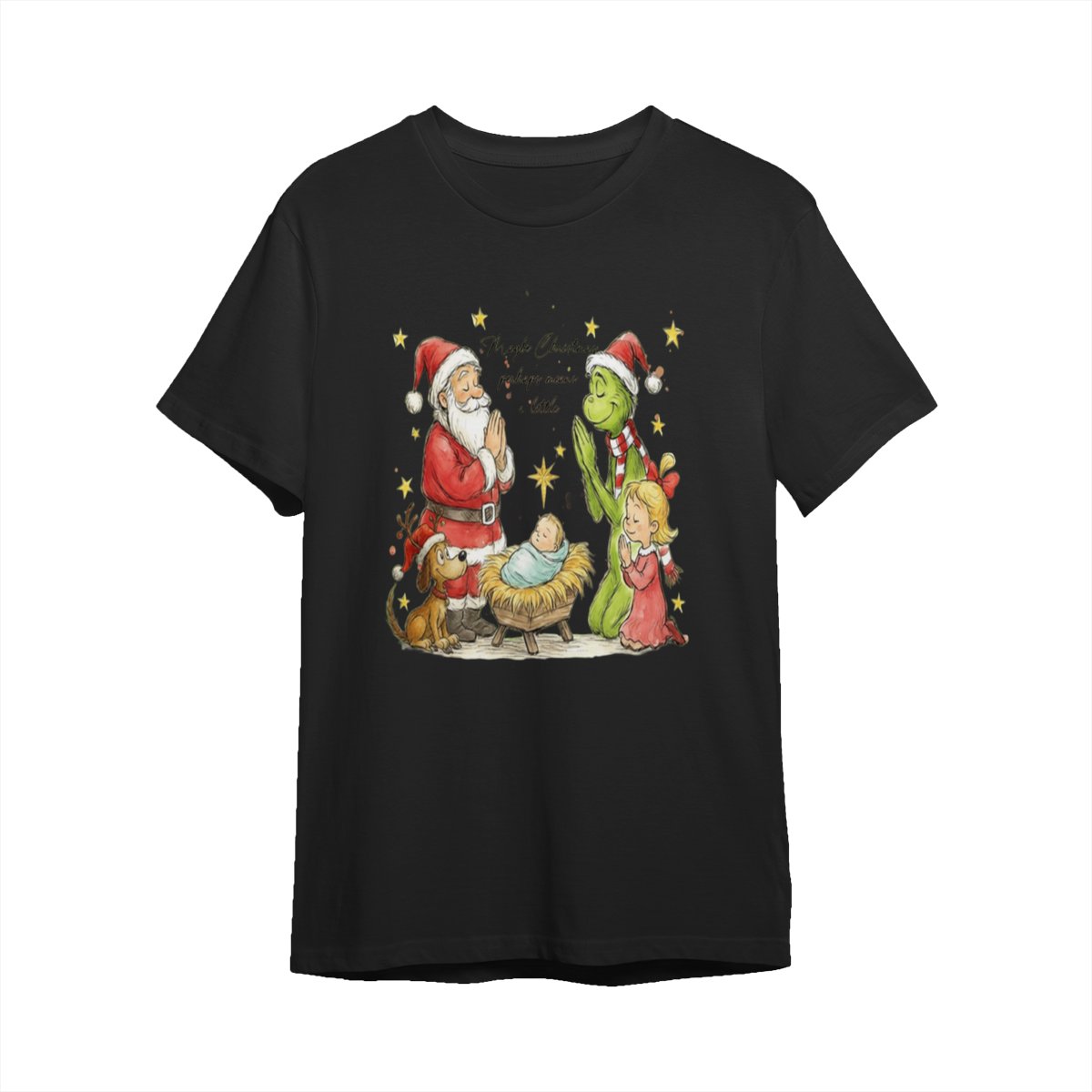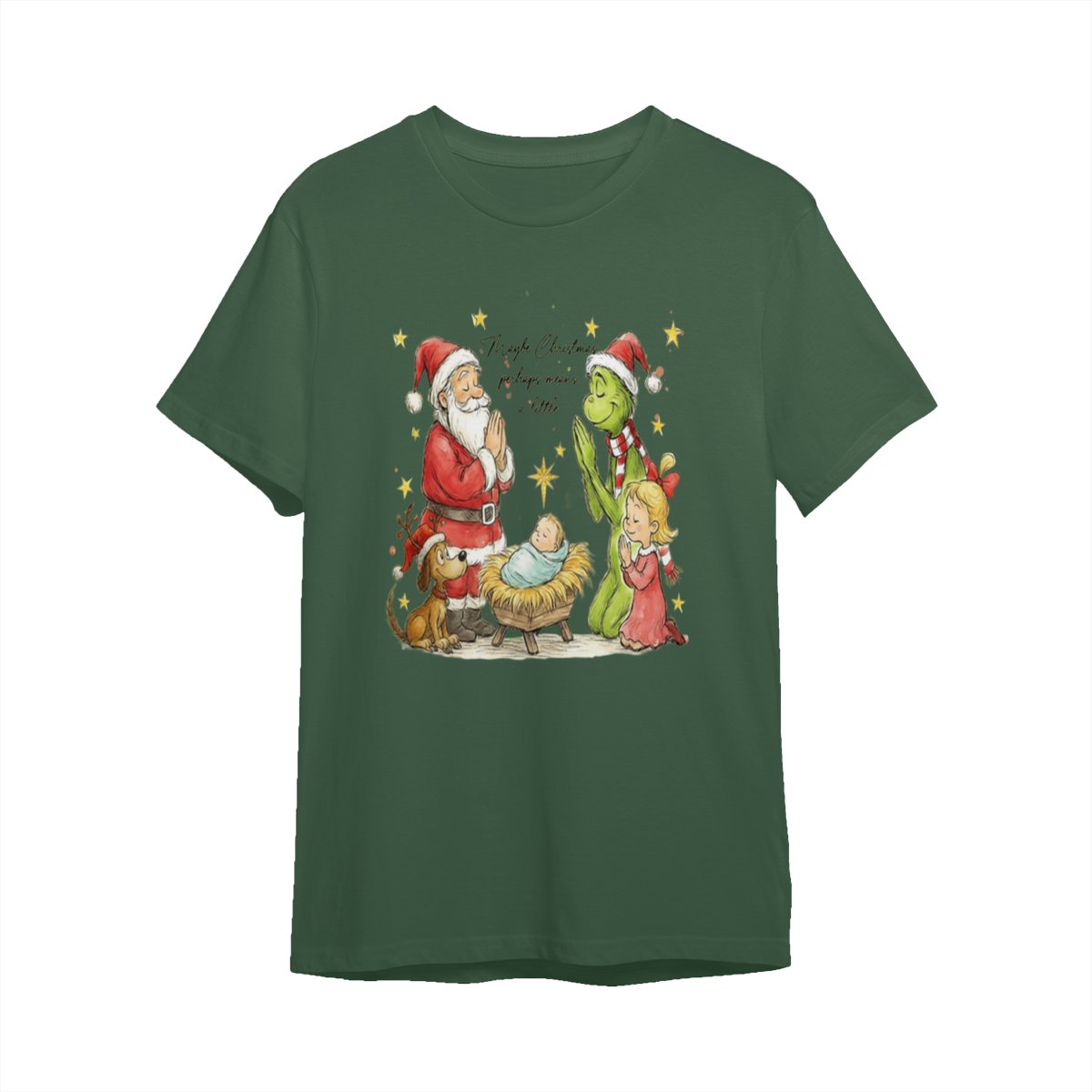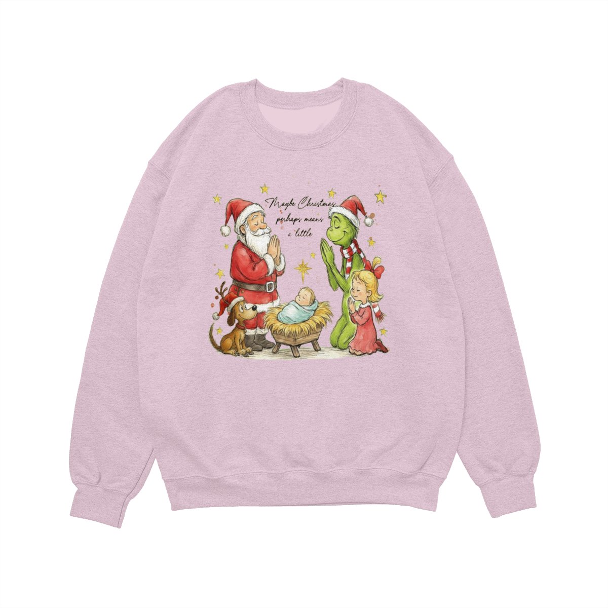 Christian Green Christmas Sweatshirt, Funny Mean Guy Christmas Tee, Grinch and Santa Nativity Scene, Christmas Movie Shirt, Trendy Christmas