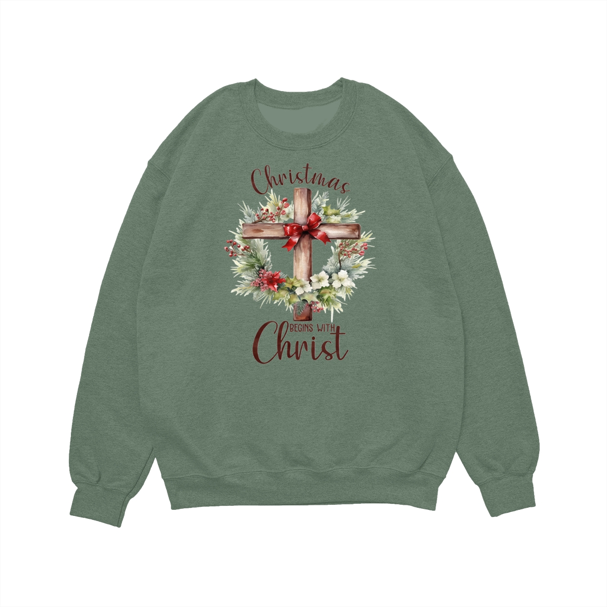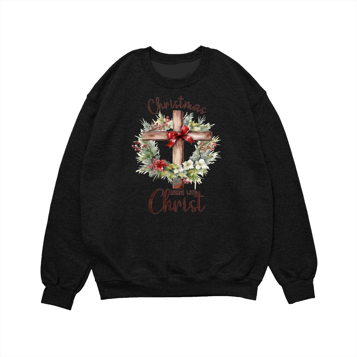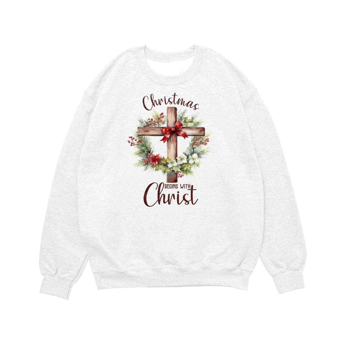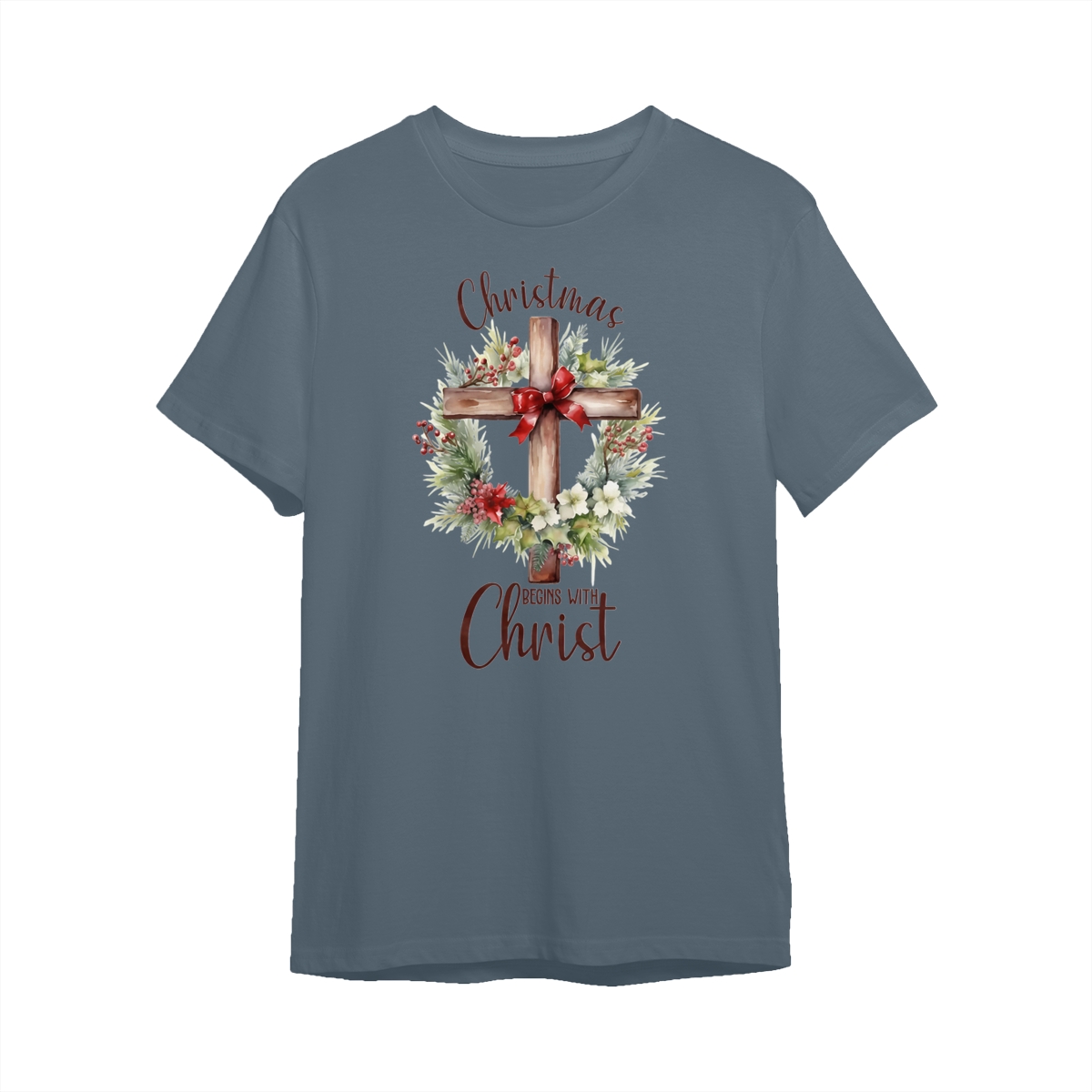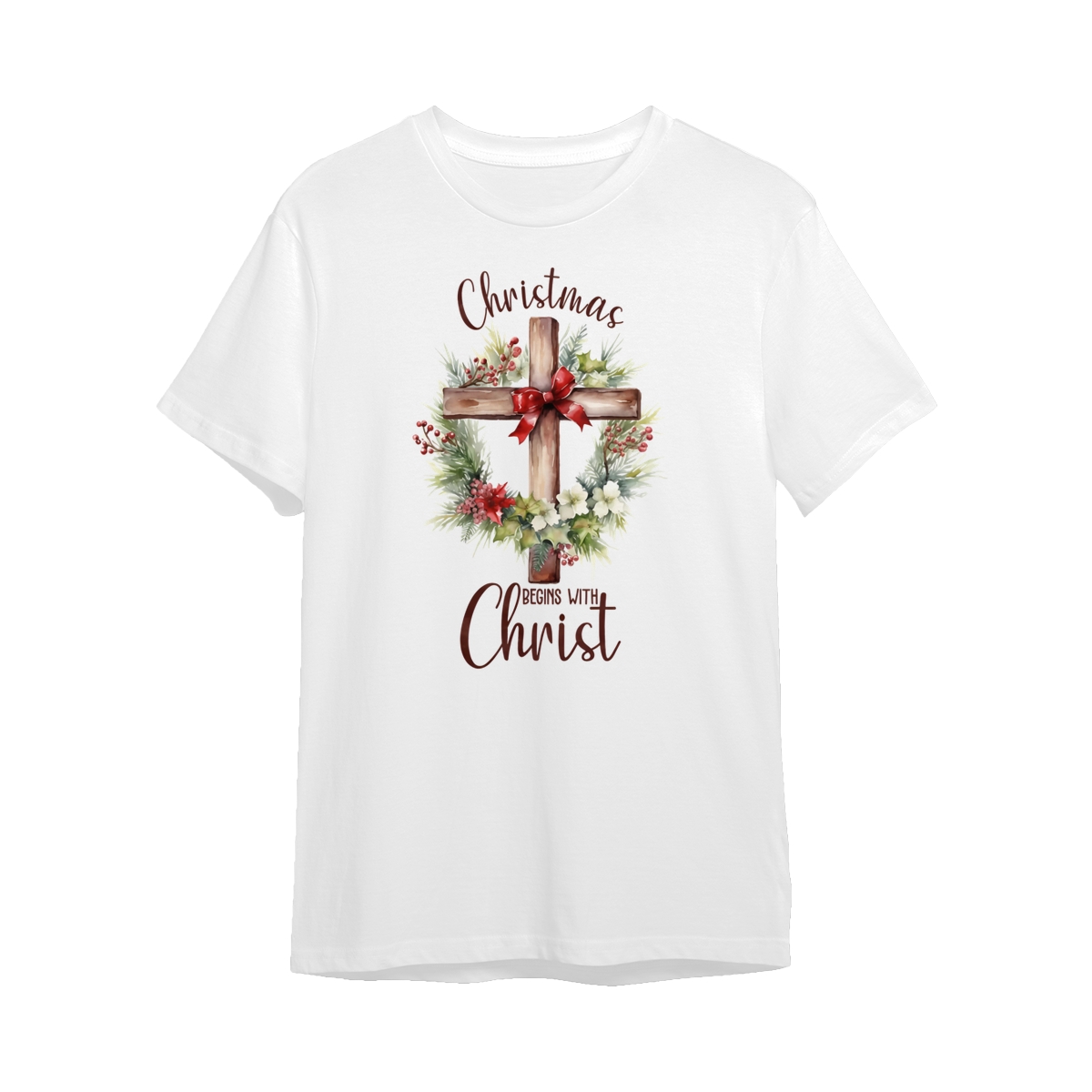 Christmas Begins With Christ T-Shirt – Faith Inspired Cross And Floral Wreath Design , Christian Holiday Unisex Tee , Religious Christmas Shirt , Meaningful Gift For Believers
