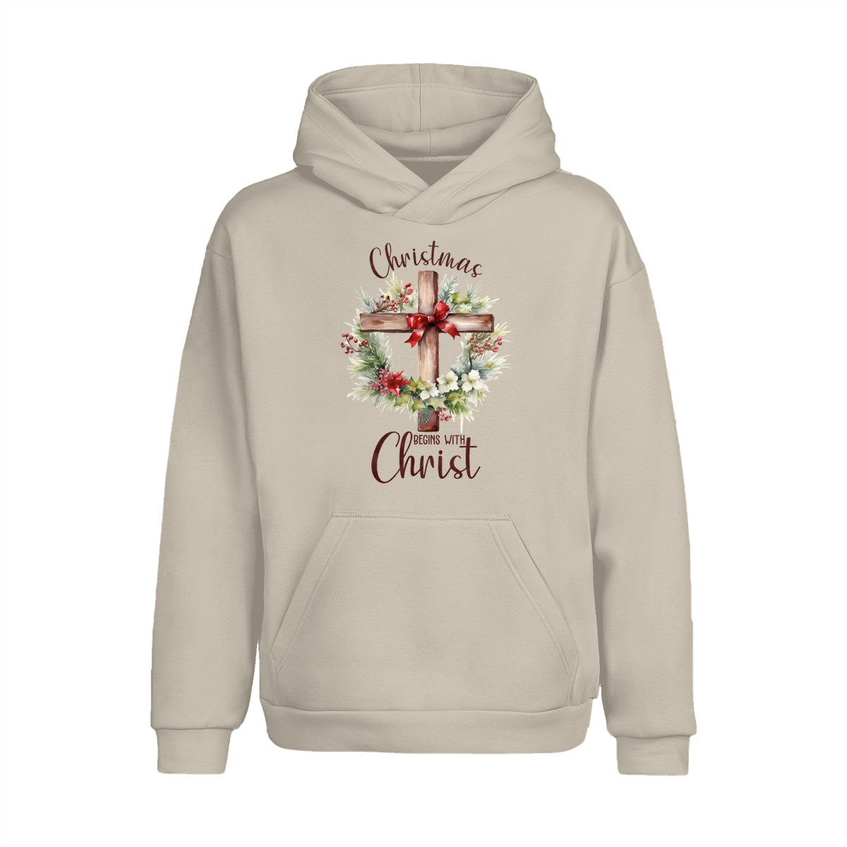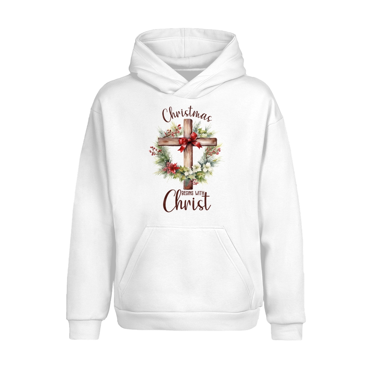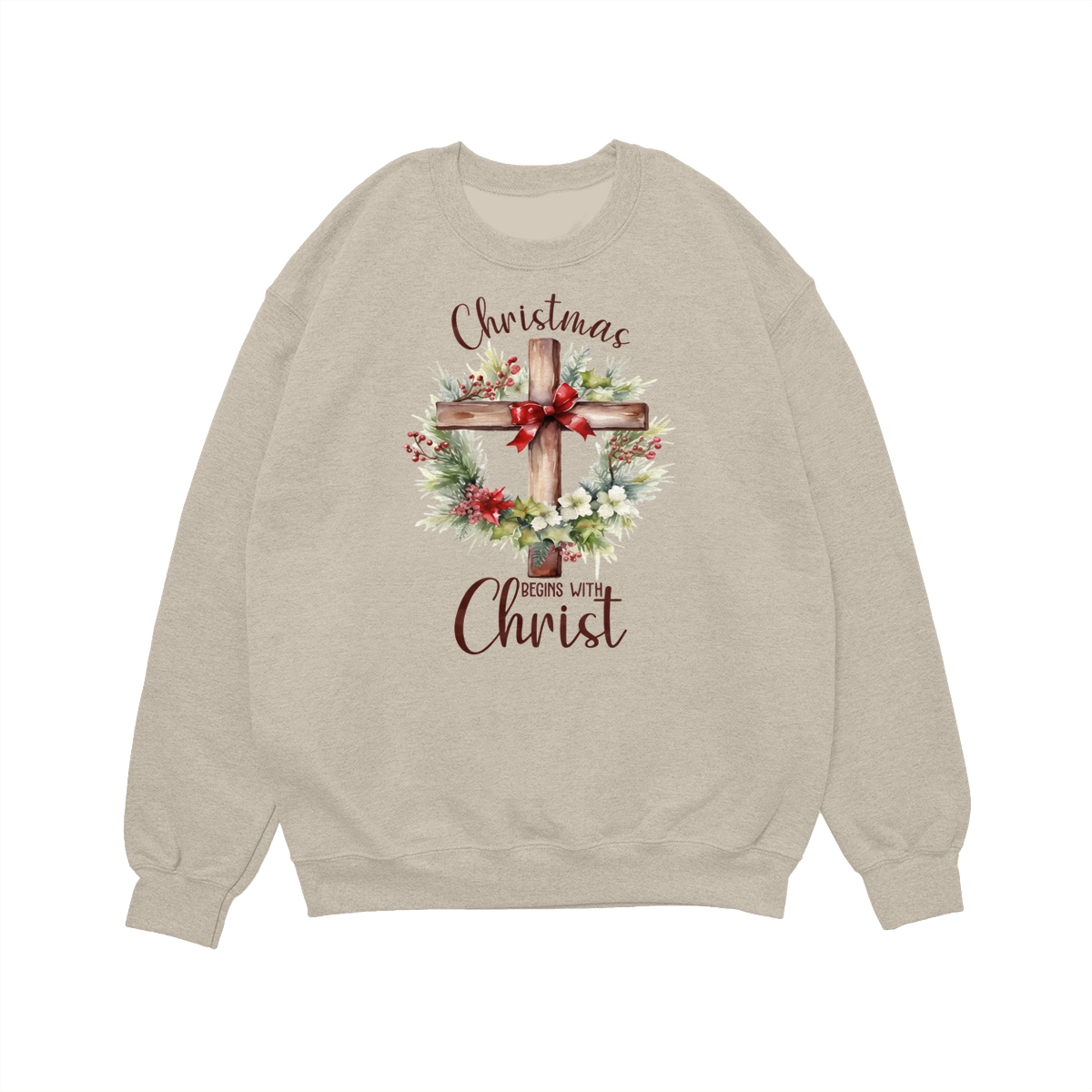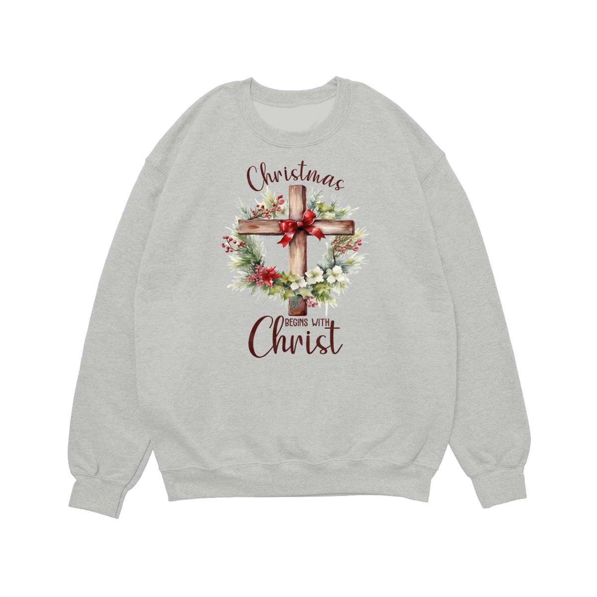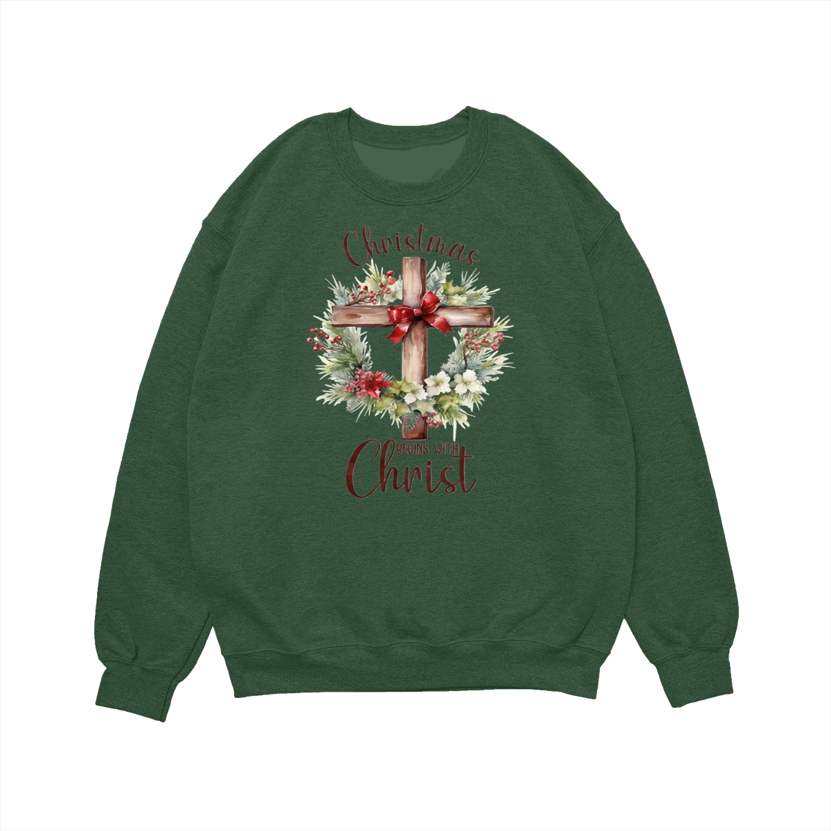 Christmas Begins With Christ T-Shirt – Faith Inspired Cross And Floral Wreath Design , Christian Holiday Unisex Tee , Religious Christmas Shirt , Meaningful Gift For Believers