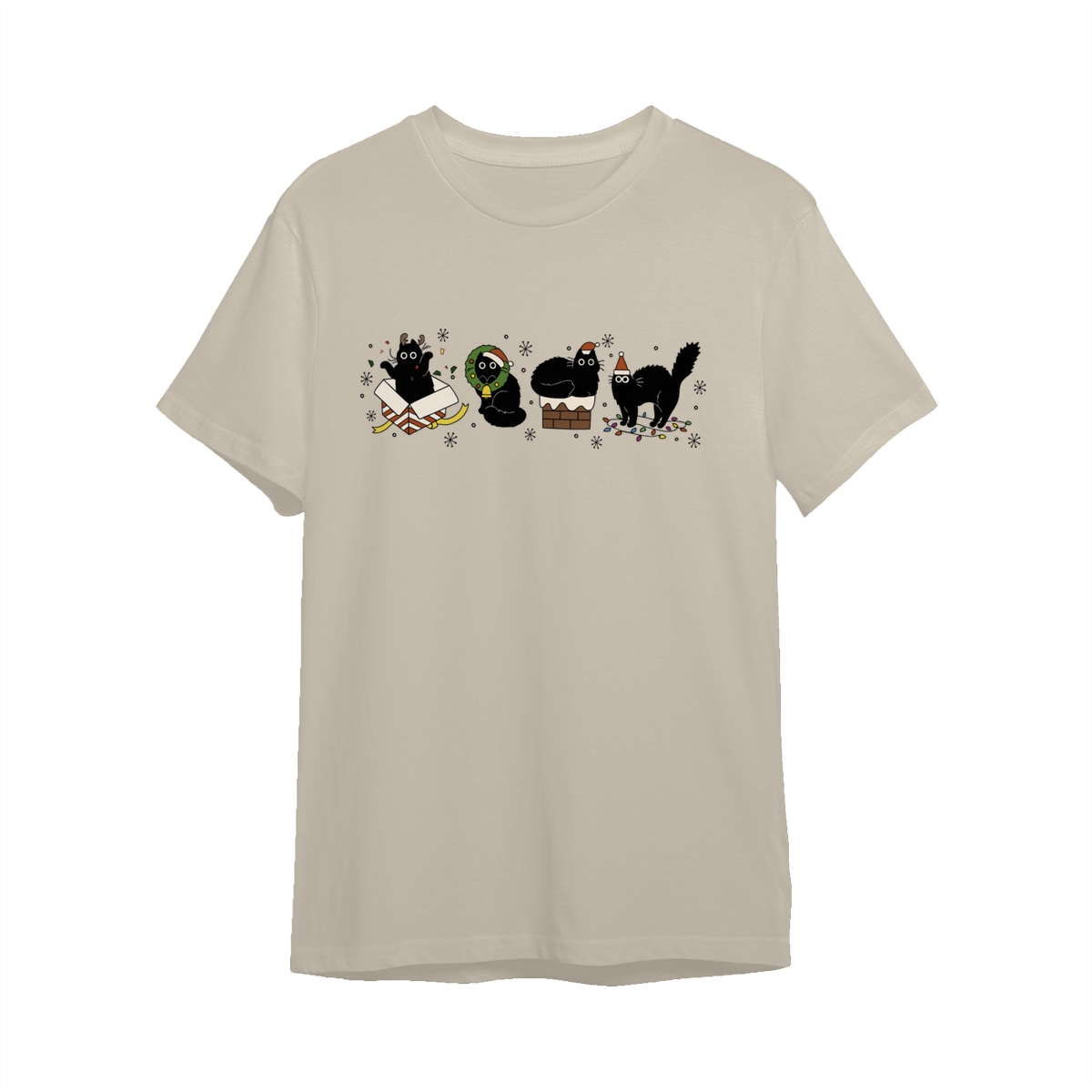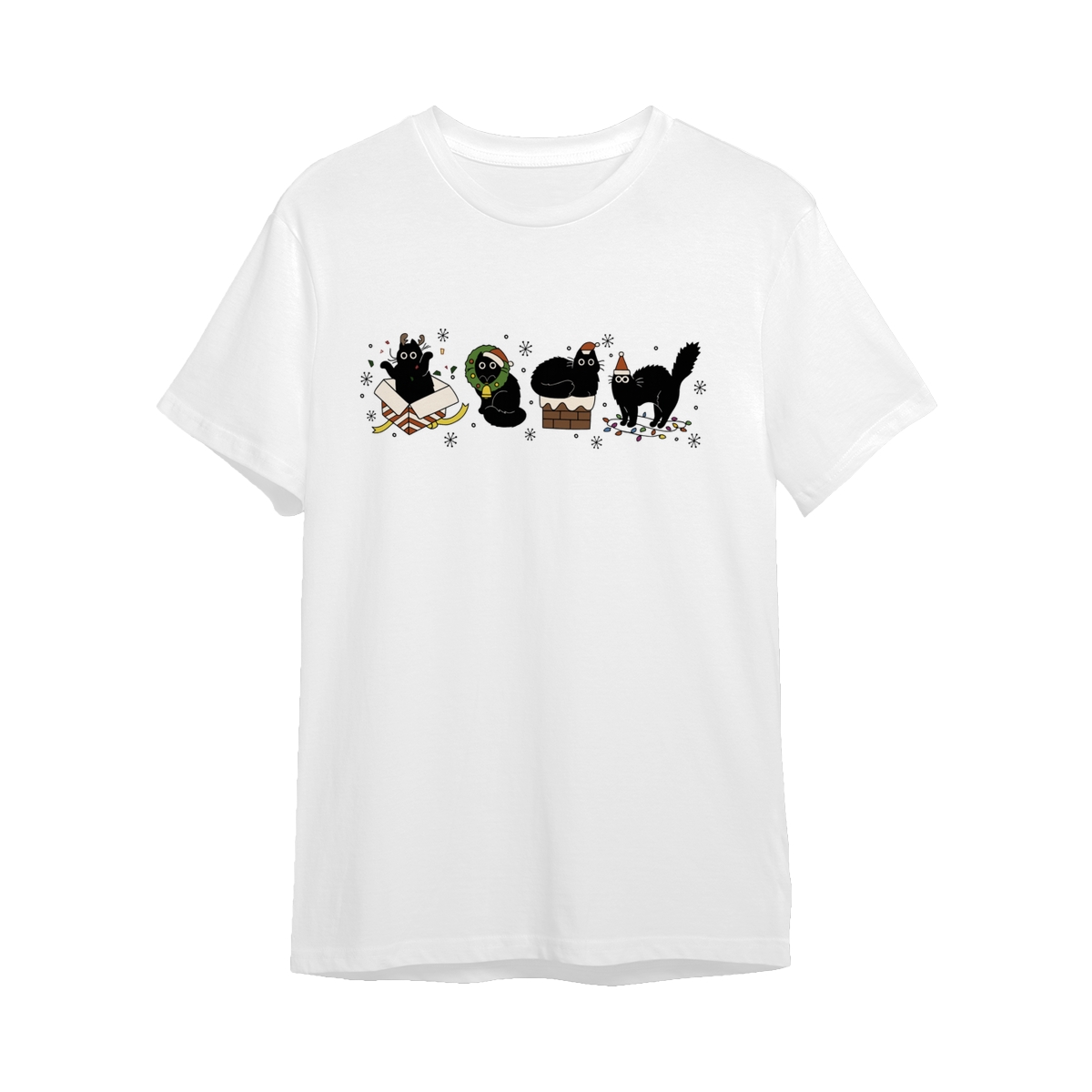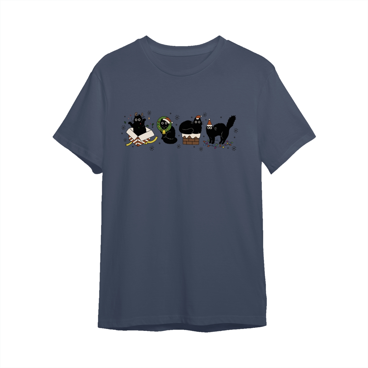 Christmas Black Cat T-shirt, Cute Merry Christmas Tee, Holiday Christmas Cat Lover Womens Tee, Cat Mom Xmas Family Gifts