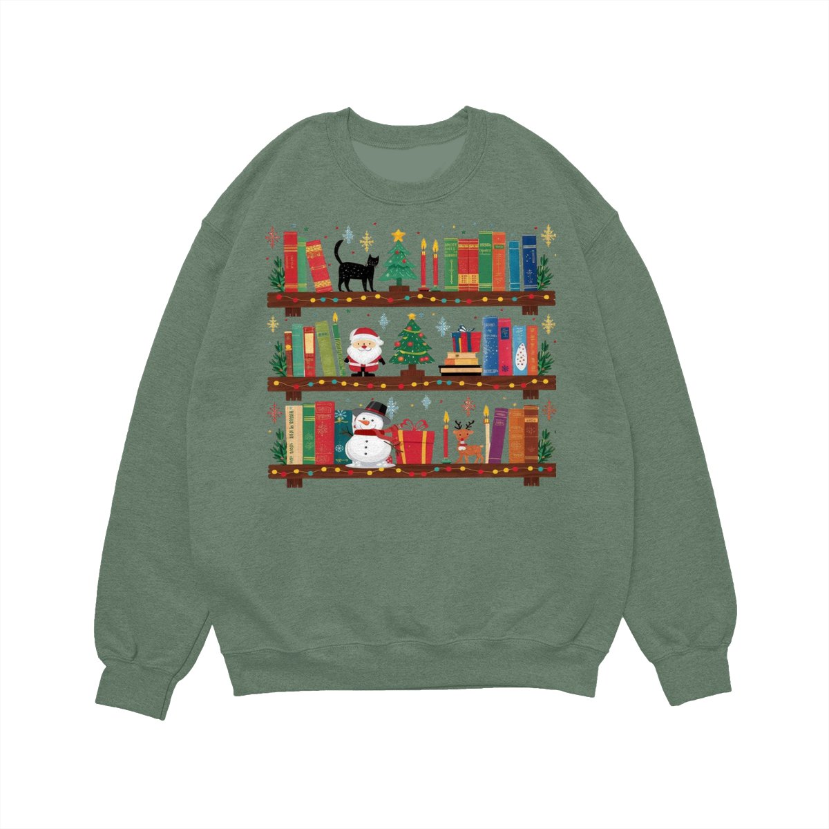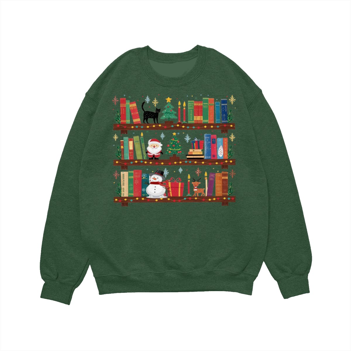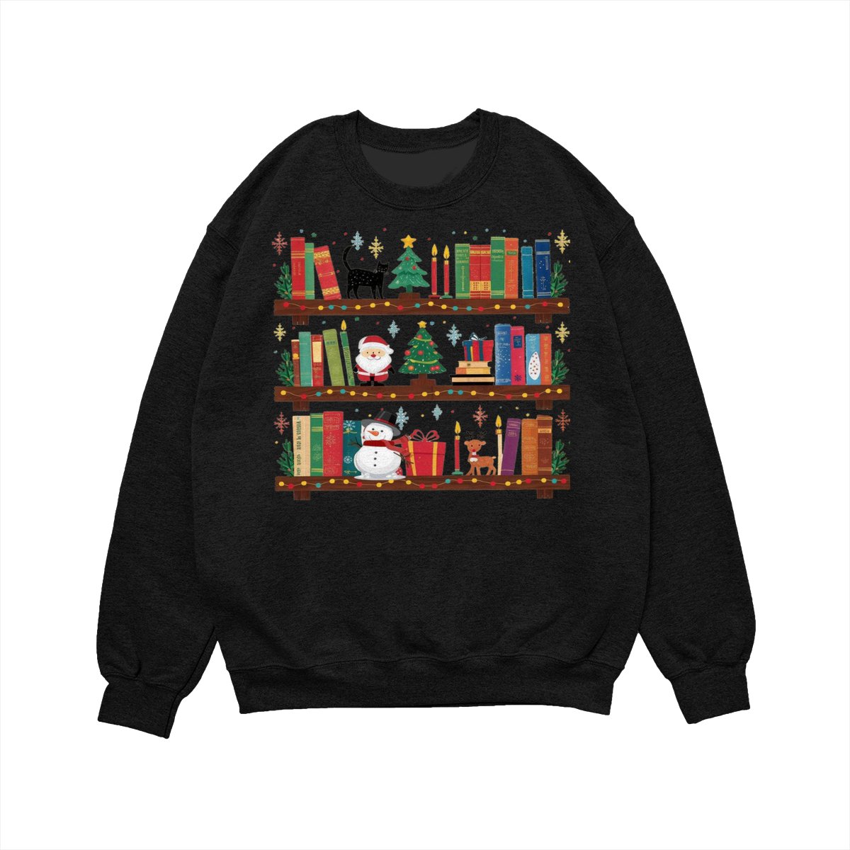 Christmas Bookshelf Sweatshirt, Santa Reading T-Shirt, Librarian Christmas Tee, Santa Library Shirt, Christmas Shirt, Reader Santa Book Tee