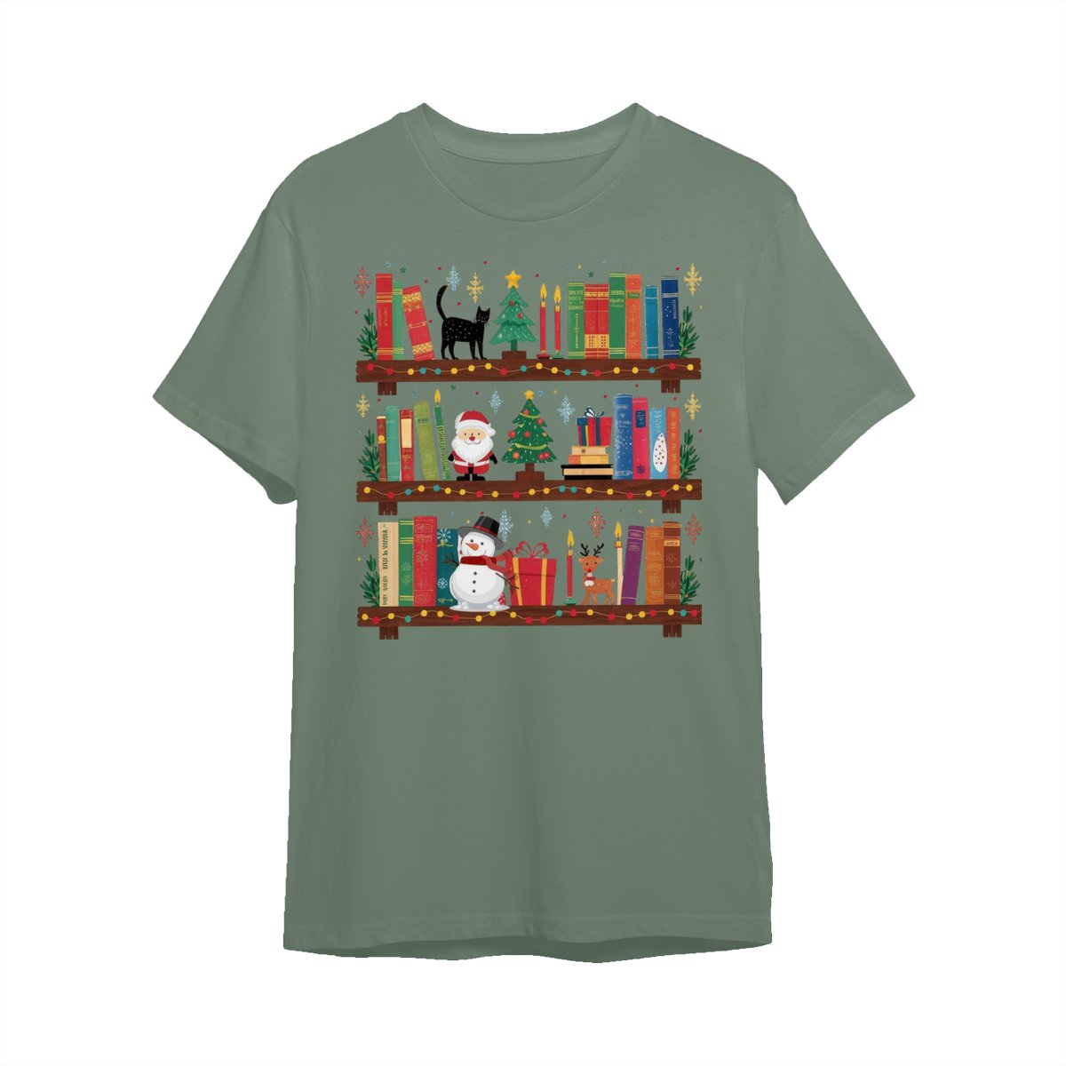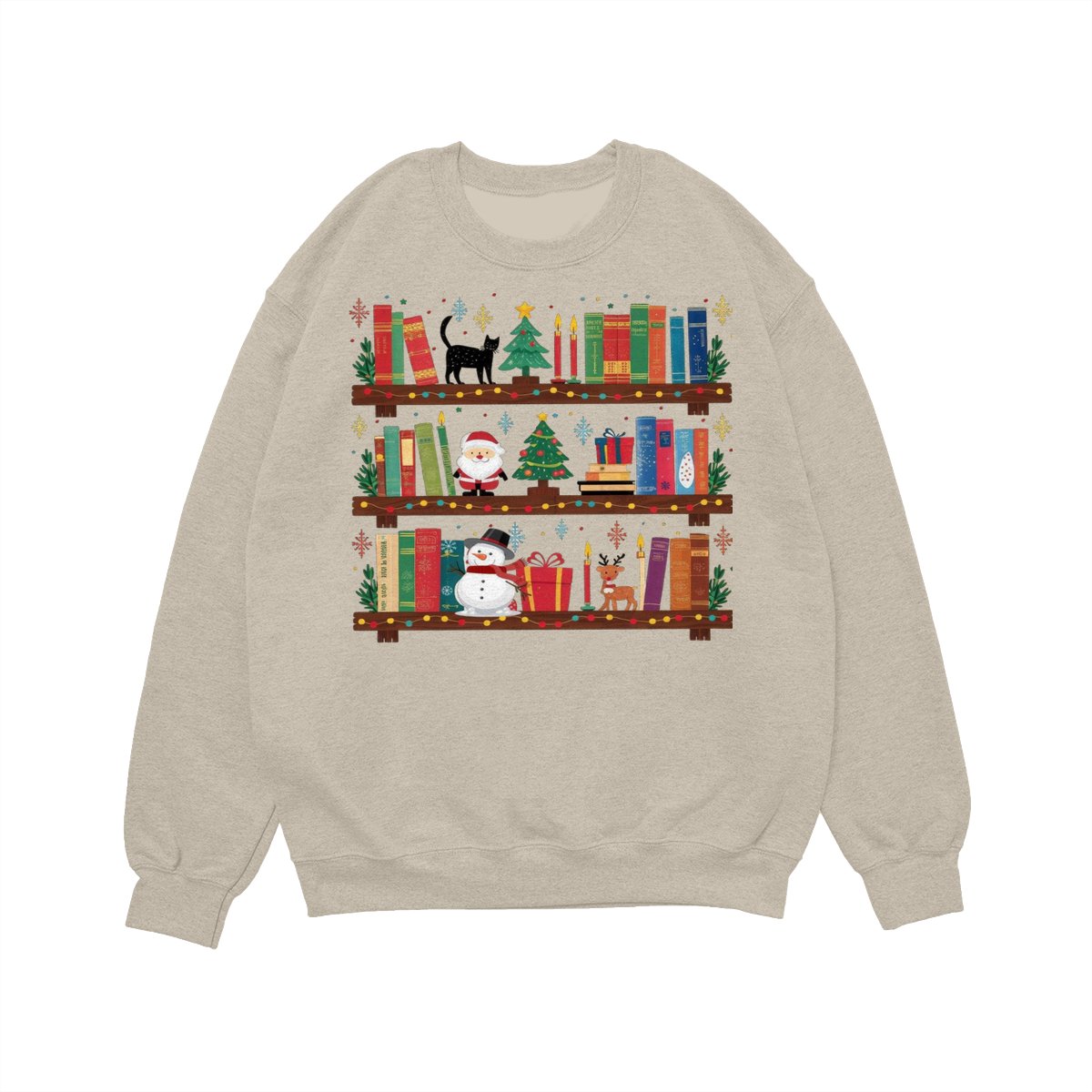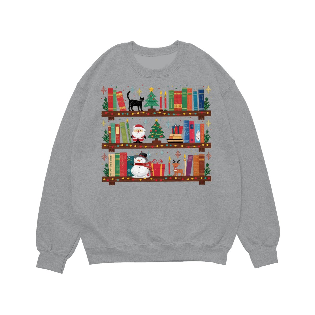 Christmas Bookshelf Sweatshirt, Santa Reading T-Shirt, Librarian Christmas Tee, Santa Library Shirt, Christmas Shirt, Reader Santa Book Tee