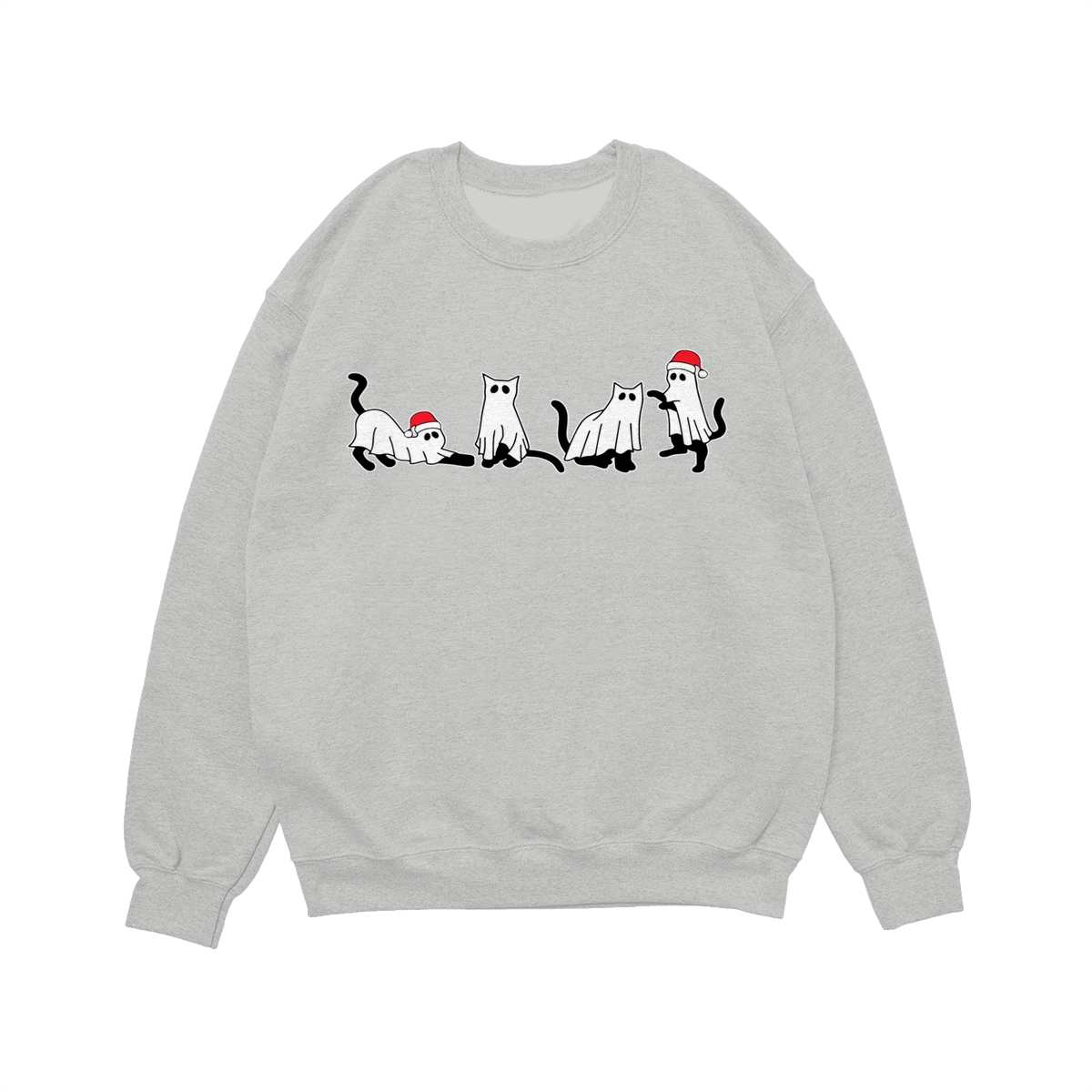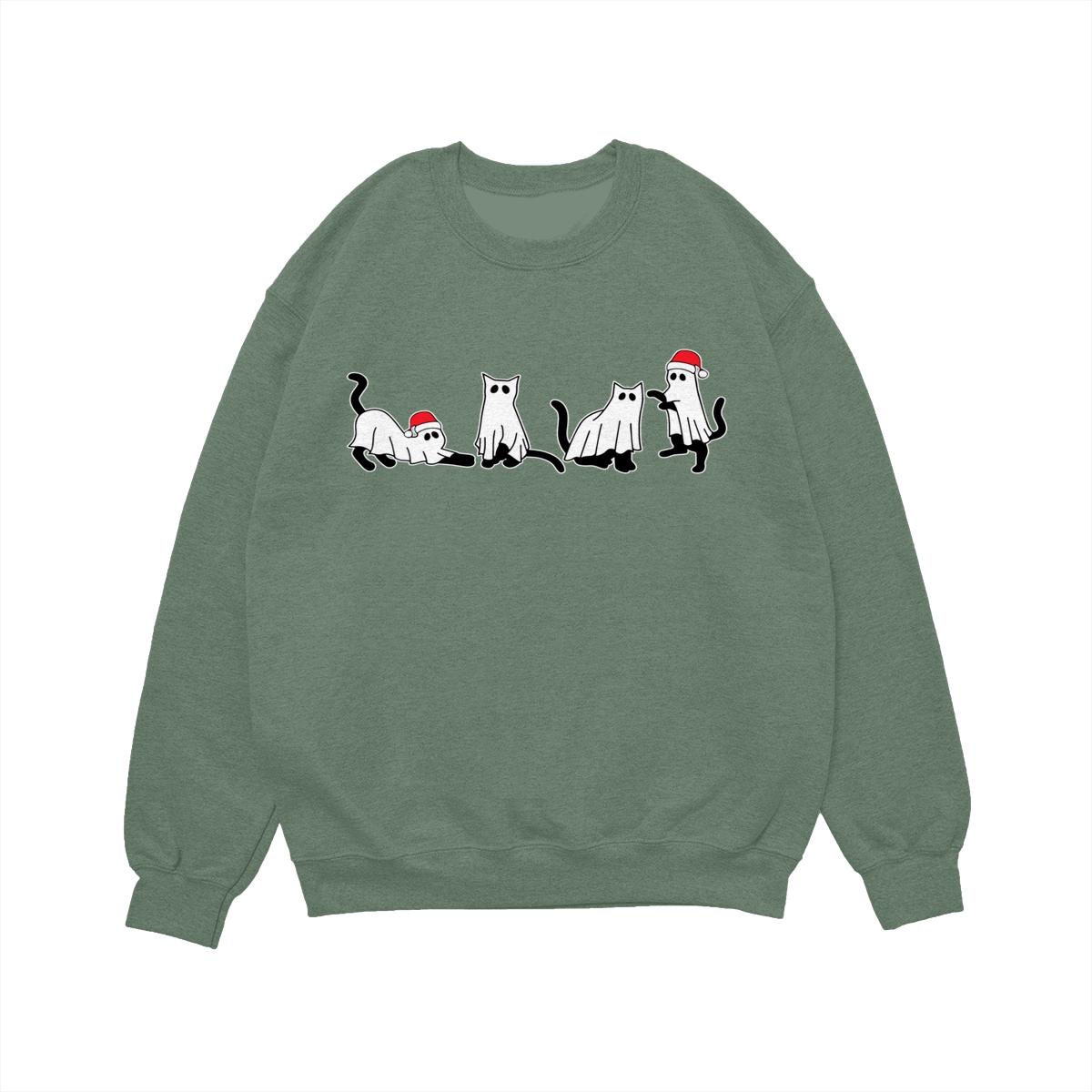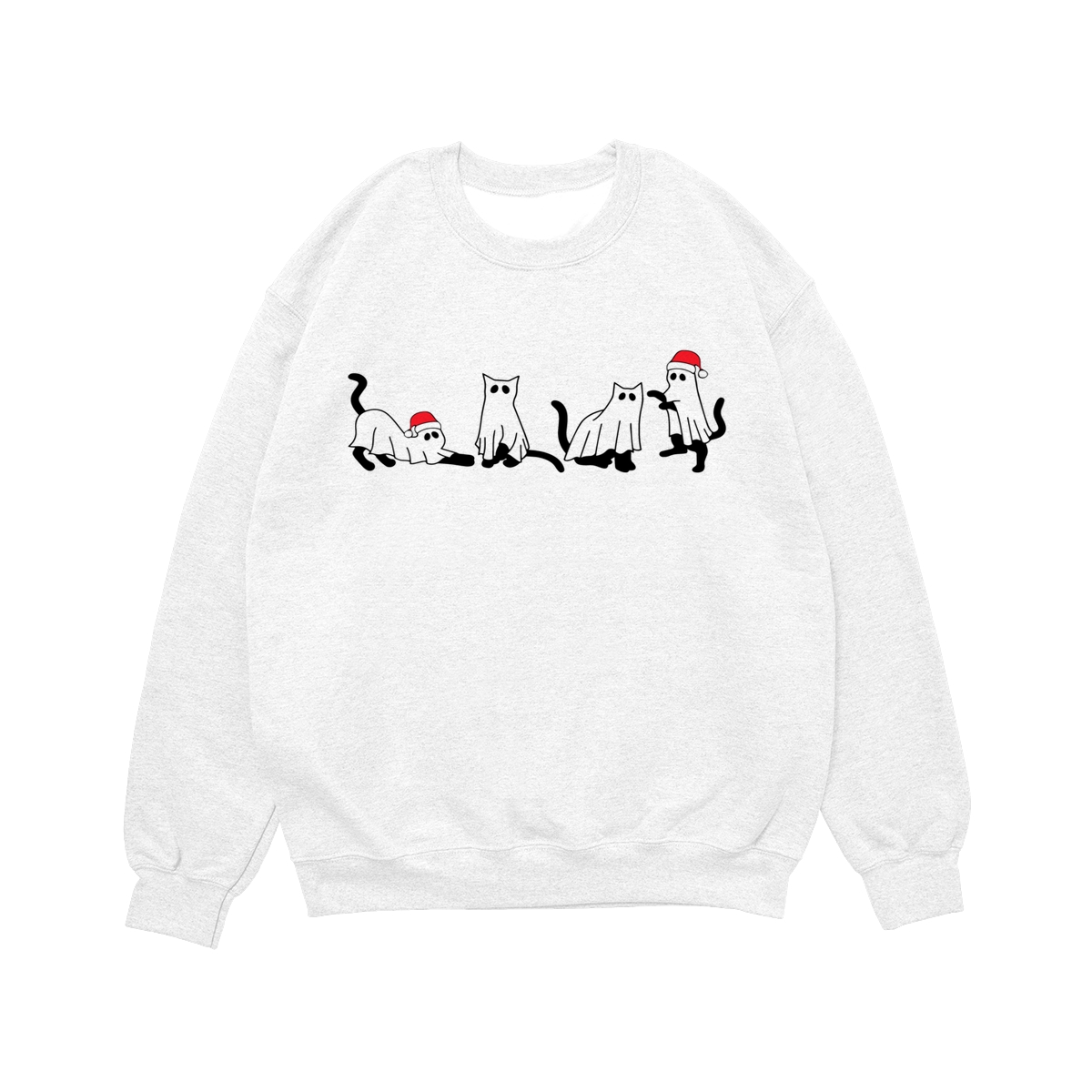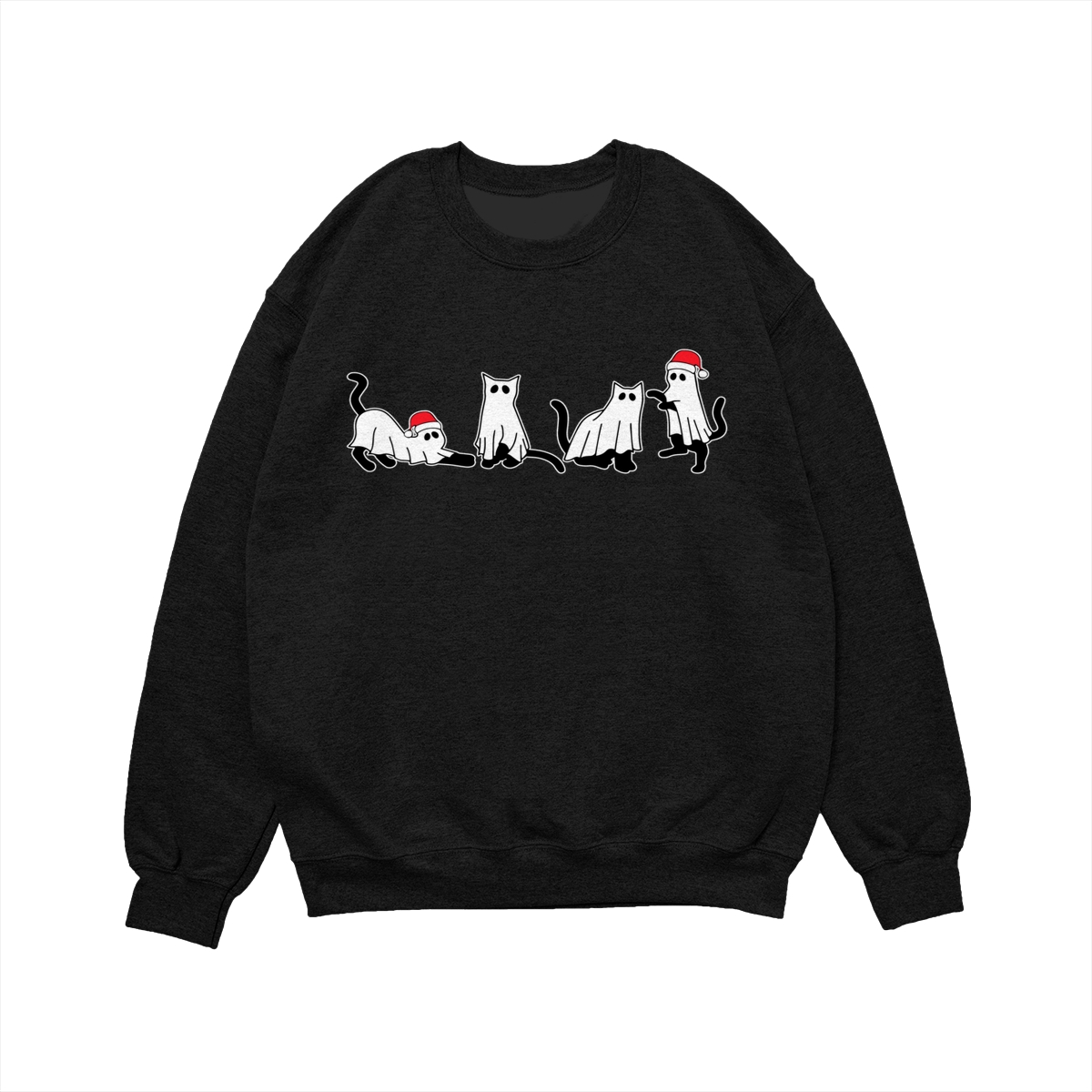 Christmas Cat Ghost Sweatshirt, Spooky Black Cat Xmas Shirt, Cute Ghost Cats in Santa Hats, Holiday Creepmas Sweater. Women’s Tops, Womenswear – Streetwear