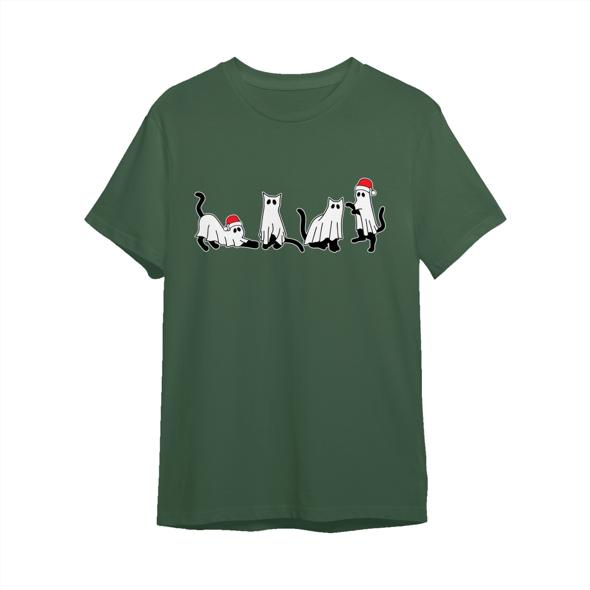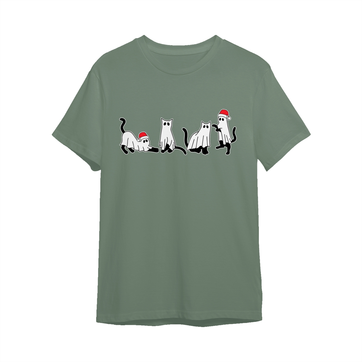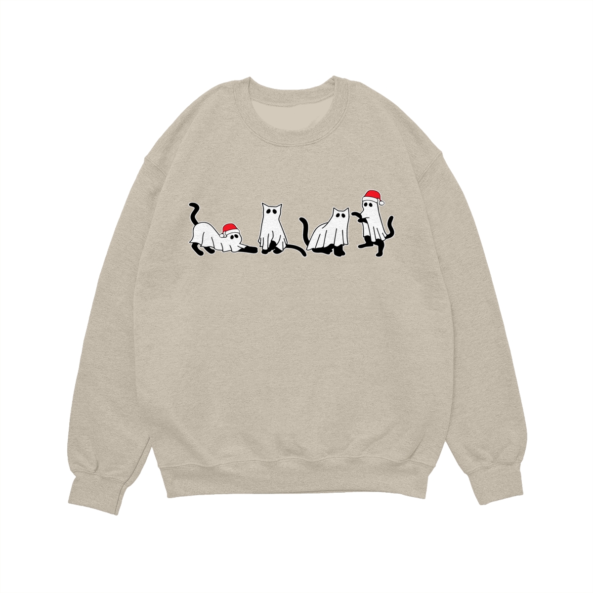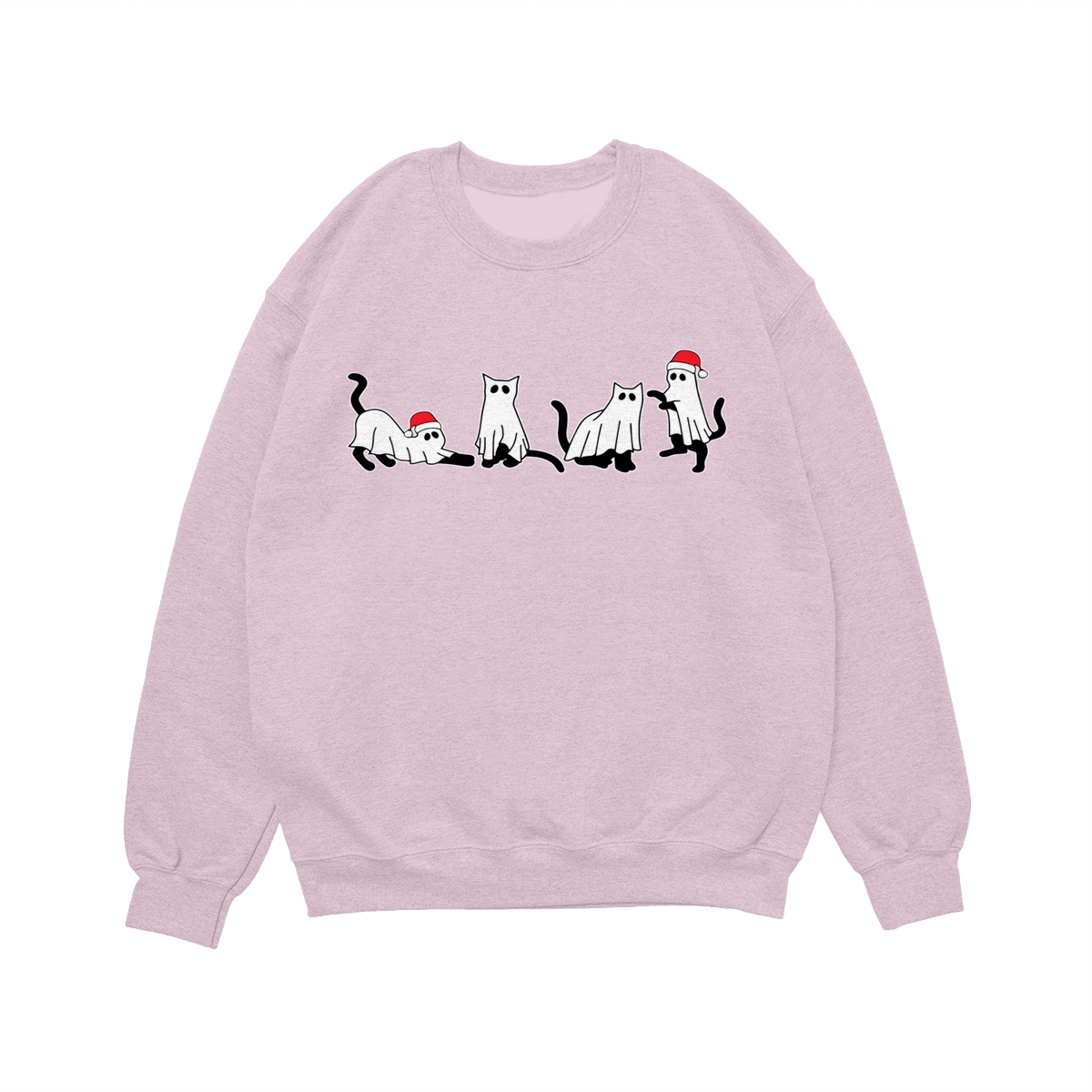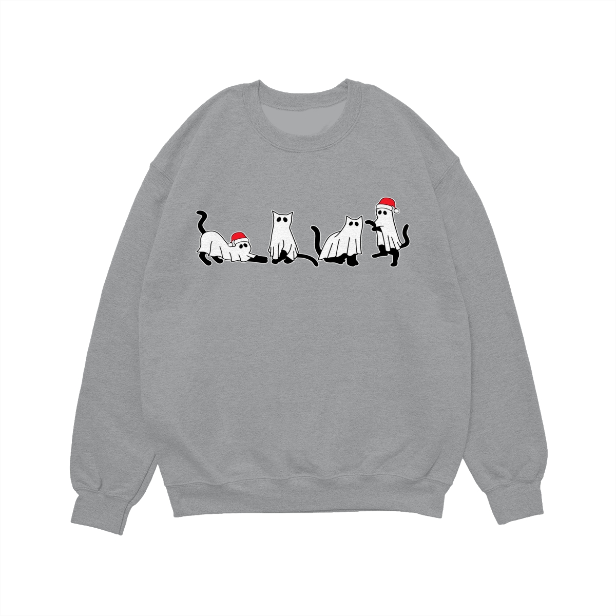 Christmas Cat Ghost Sweatshirt, Spooky Black Cat Xmas Shirt, Cute Ghost Cats in Santa Hats, Holiday Creepmas Sweater. Women’s Tops, Womenswear – Streetwear