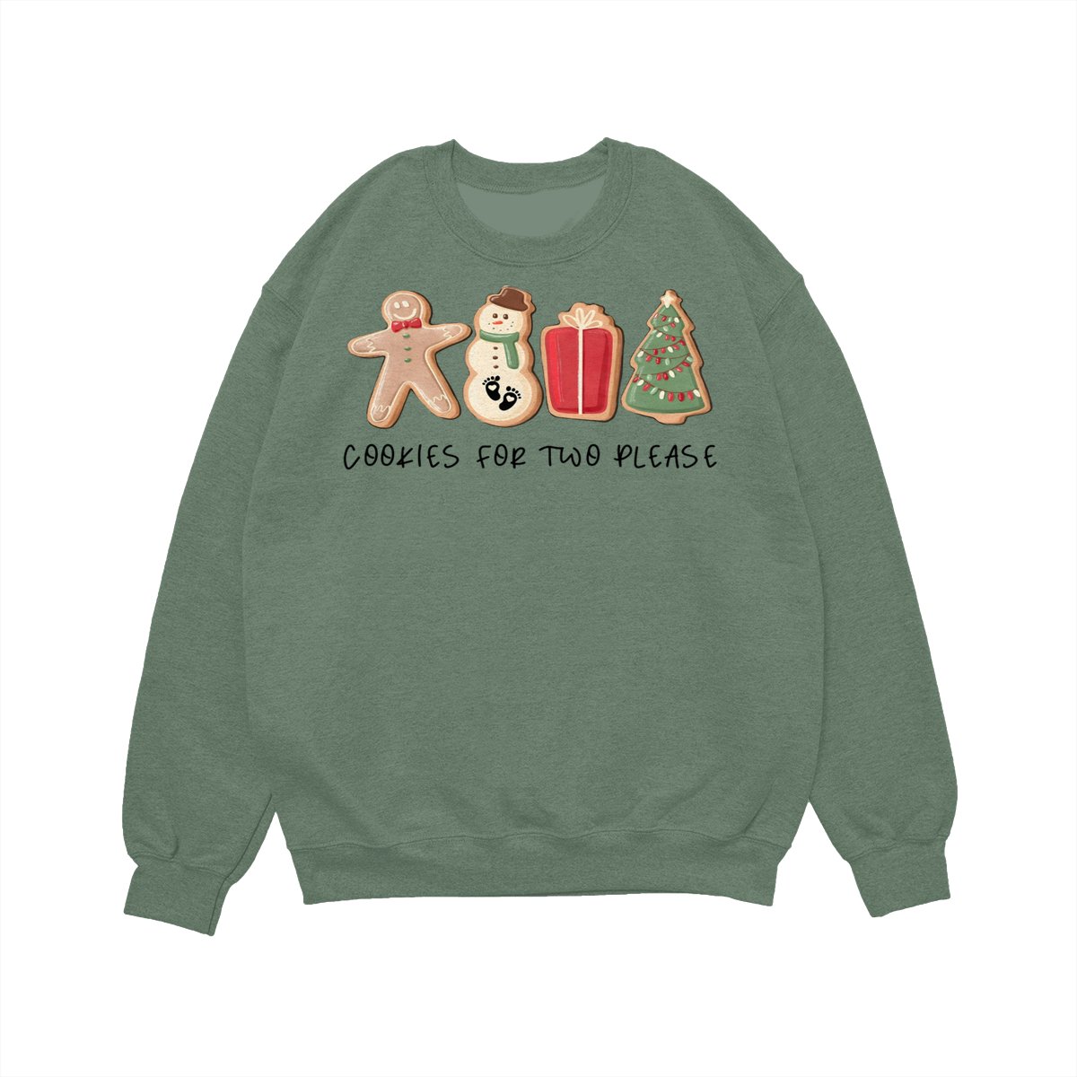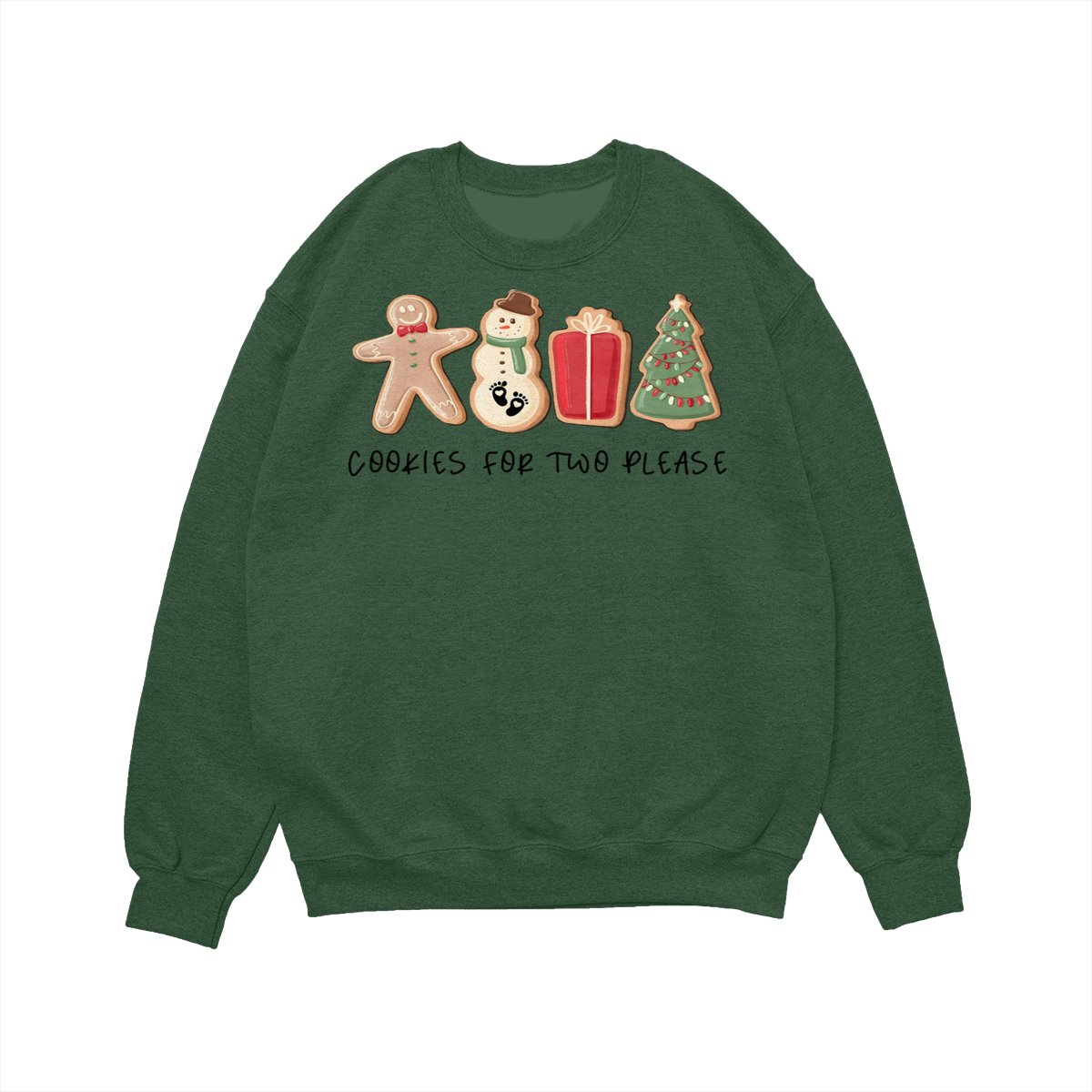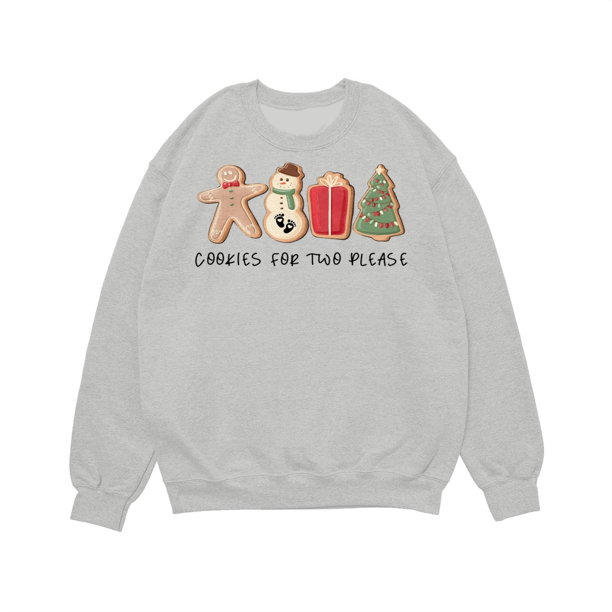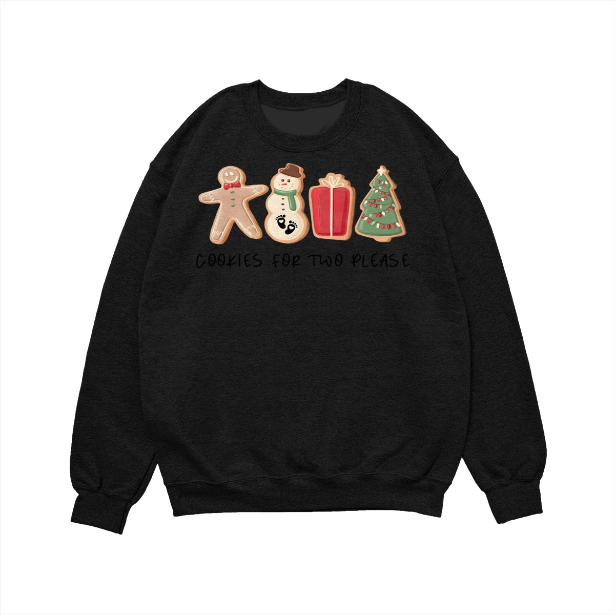 Christmas Cookies For Two Please Sweatshirt, Pregnancy Announcement Christmas Sweatshirt, Pregnancy Reveal Christmas Sweater, Maternity Christmas Sweatshirt, Baby Reveal Xmas Gifts, Unisex Long Sleeve Crewneck Shirt