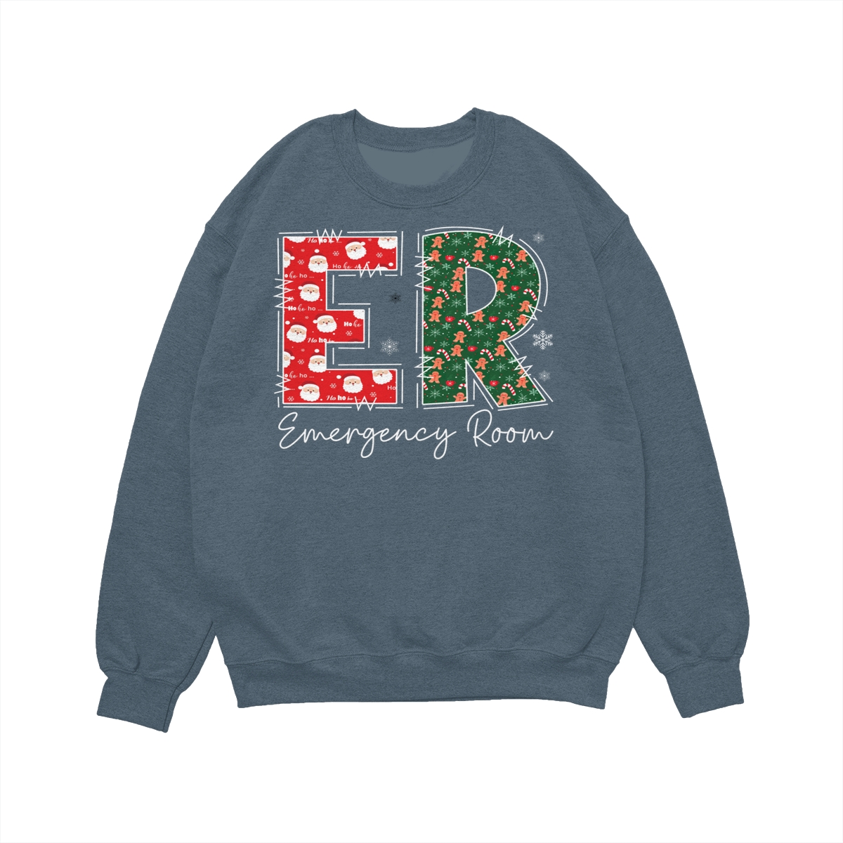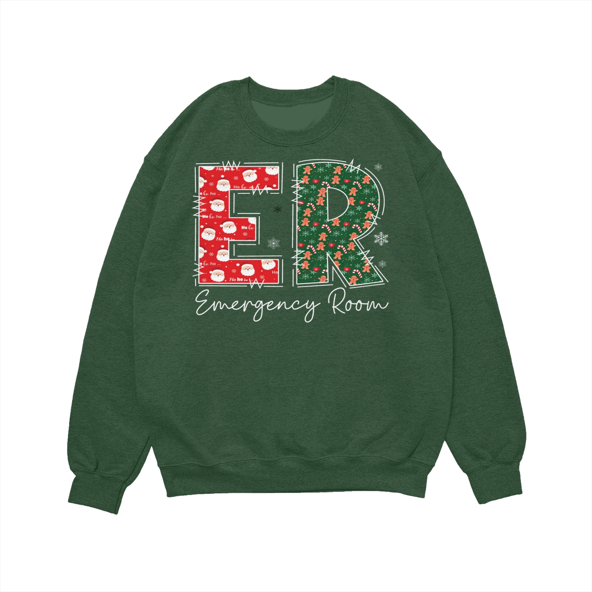 Christmas ER Nurse Sweatshirt, Emergency Nurse Christmas Gift, ER Emergency Room Xmas Gift Shirt, Nursing Winter Holiday Shirt