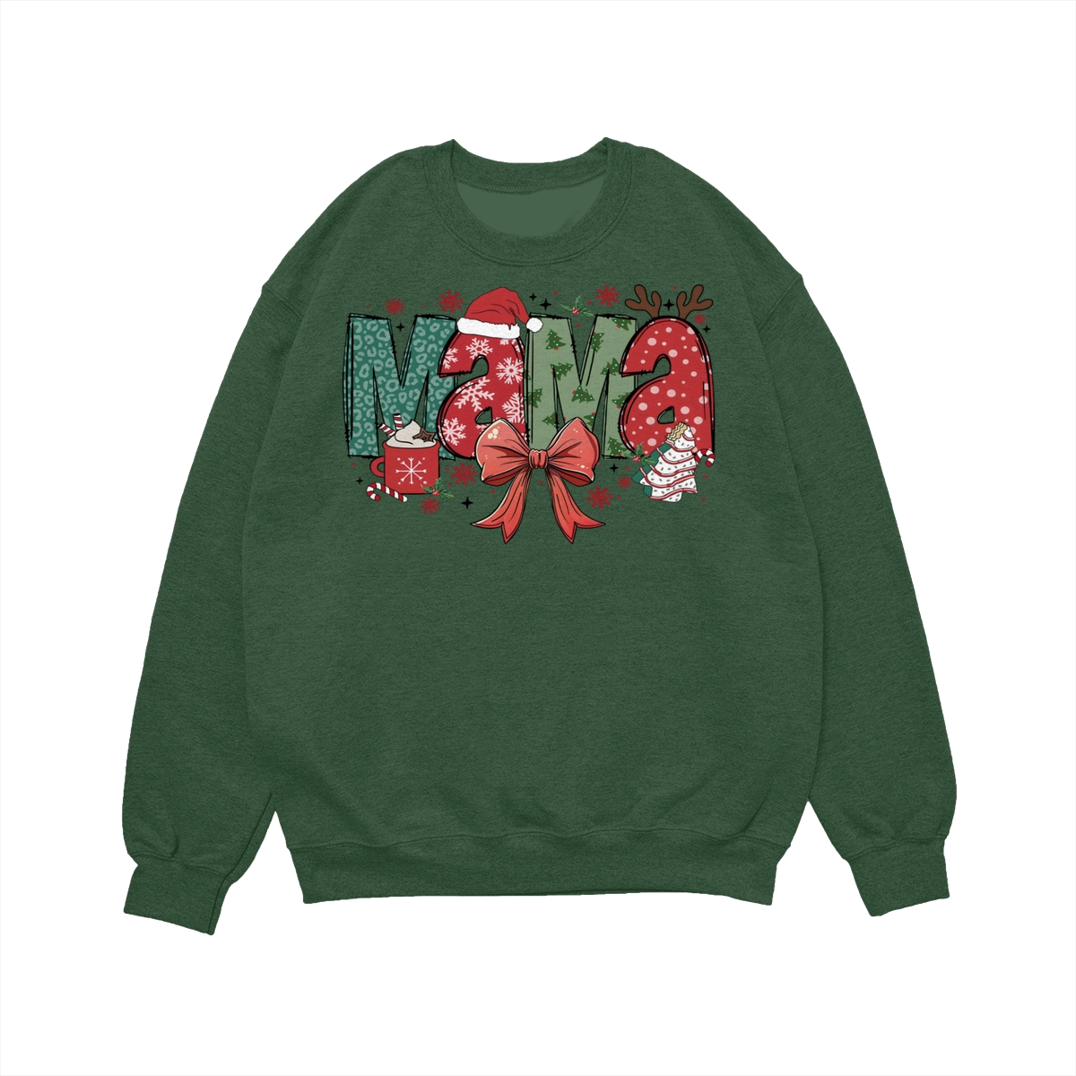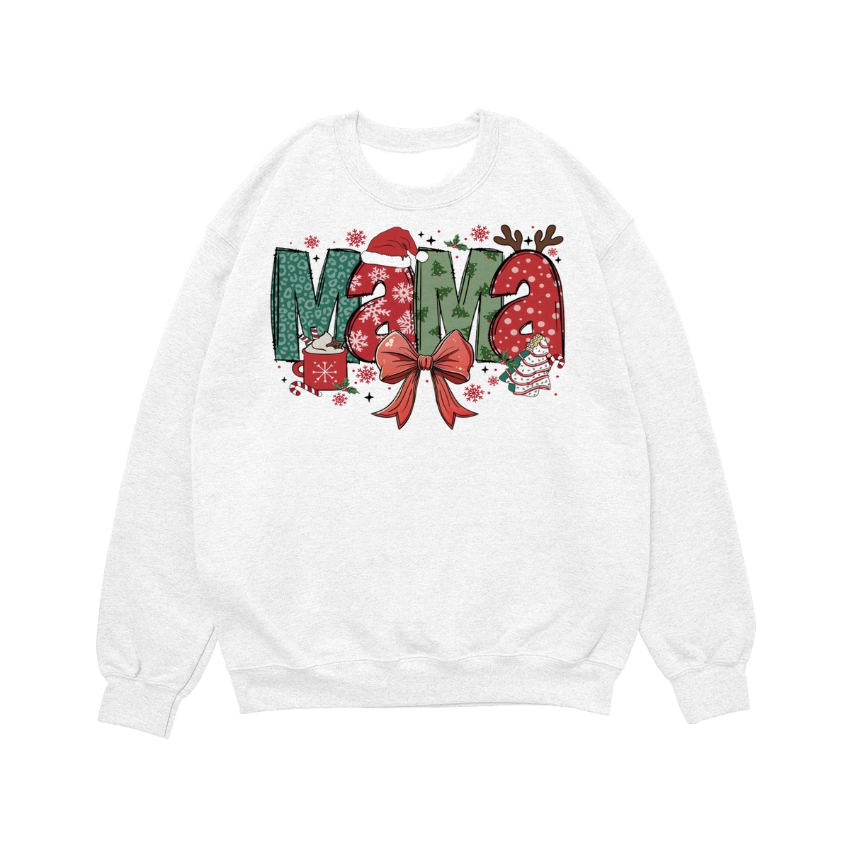 Christmas Mama Claus Sweatshirt, Coquette Bow Christmas Tree Cake Shirt, Candy Cane Santa Hot Cocoa Sweatshirt, Festive Holiday Clothing, Unisex christmas sweatshirt