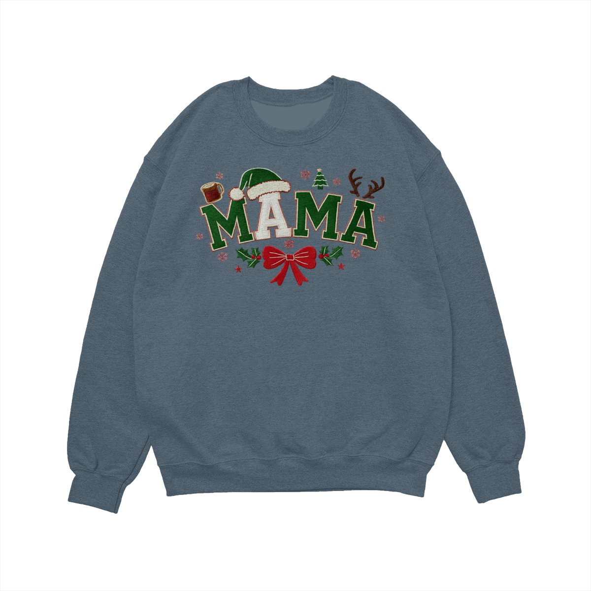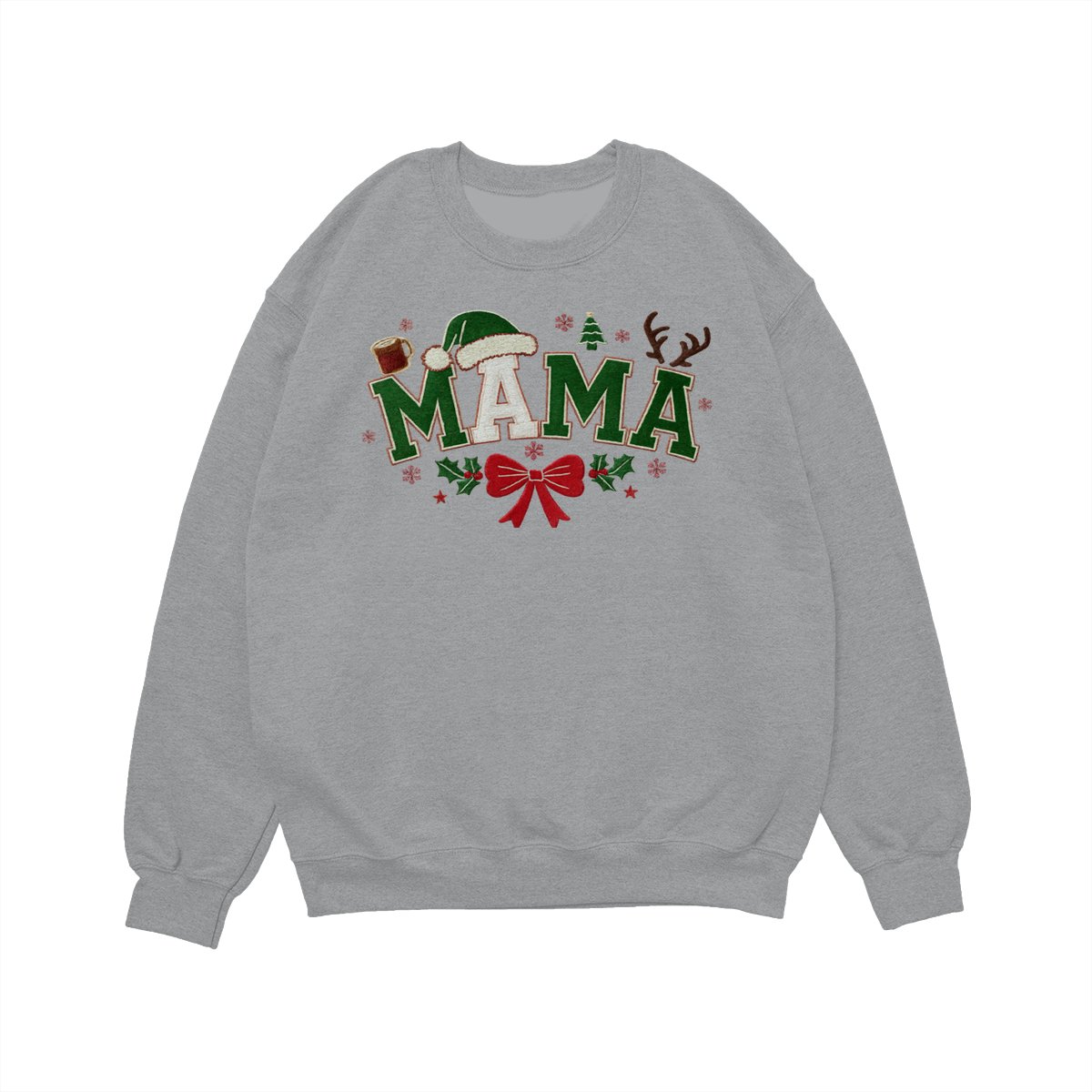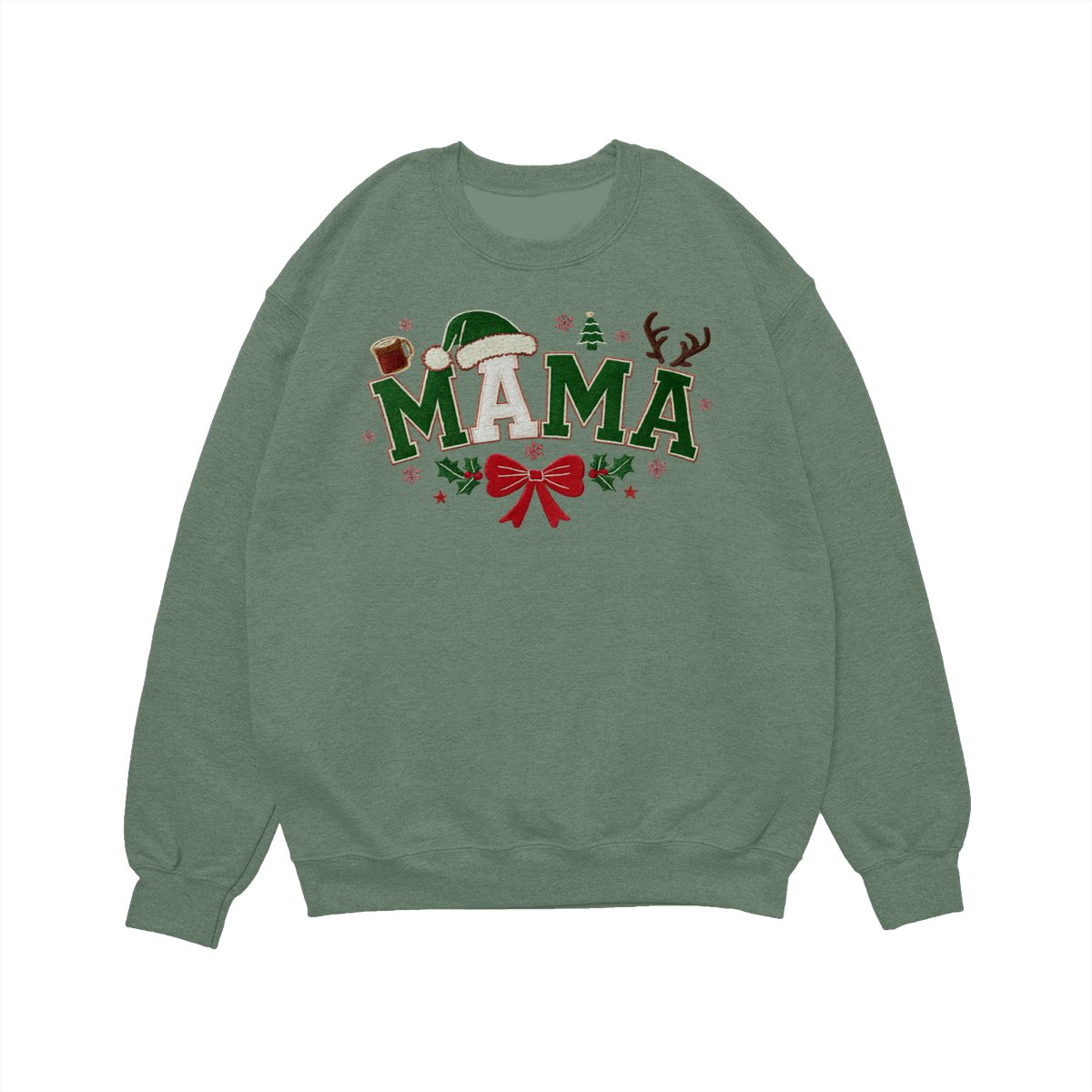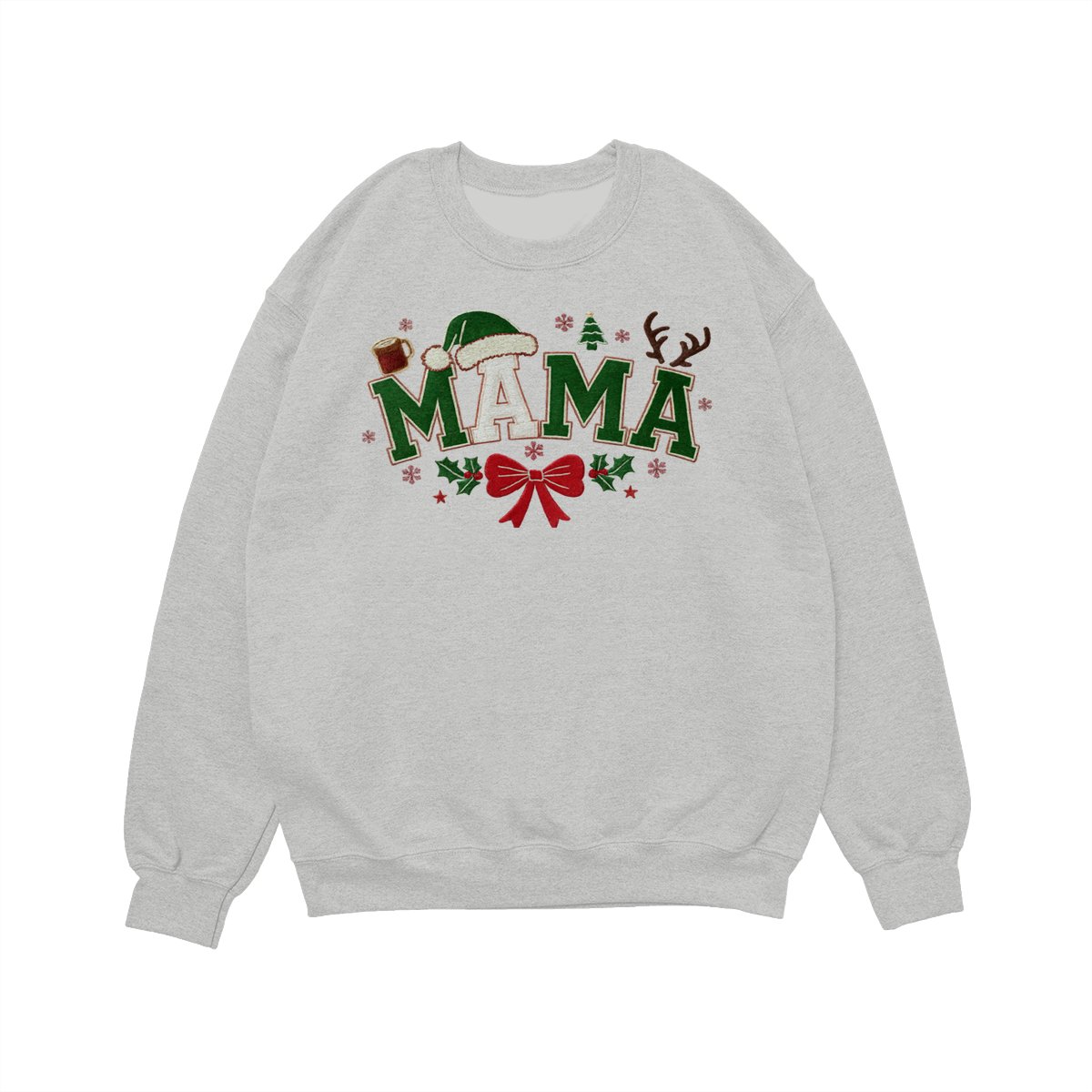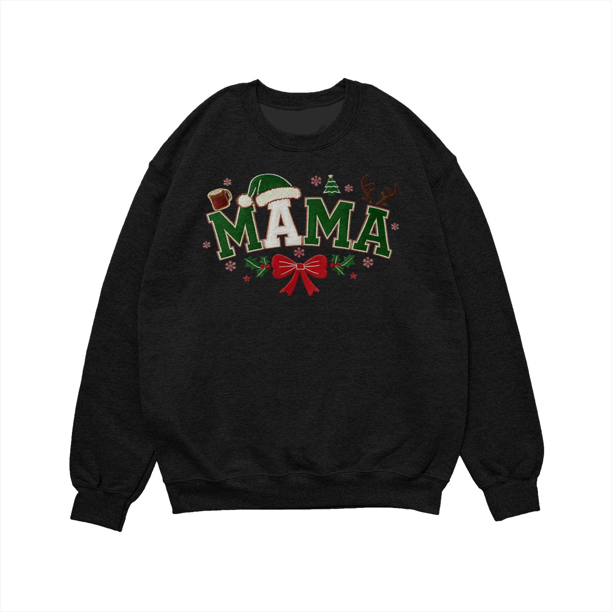 Christmas Mama Sweatshirt – Cute Holiday Pullover for Moms, Festive Santa Hat & Bow Design, Cozy Winter Outfit, Christmas Gift for Her. Women’s Tops, Womenswear – Streetwear