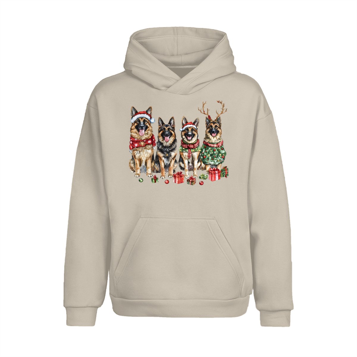 Christmas Shepherd Dog Sweatshirt, Cute Holiday Pet Lover Pullover, Festive Puppy Graphic Hoodie, Cozy Winter Gift Sweater