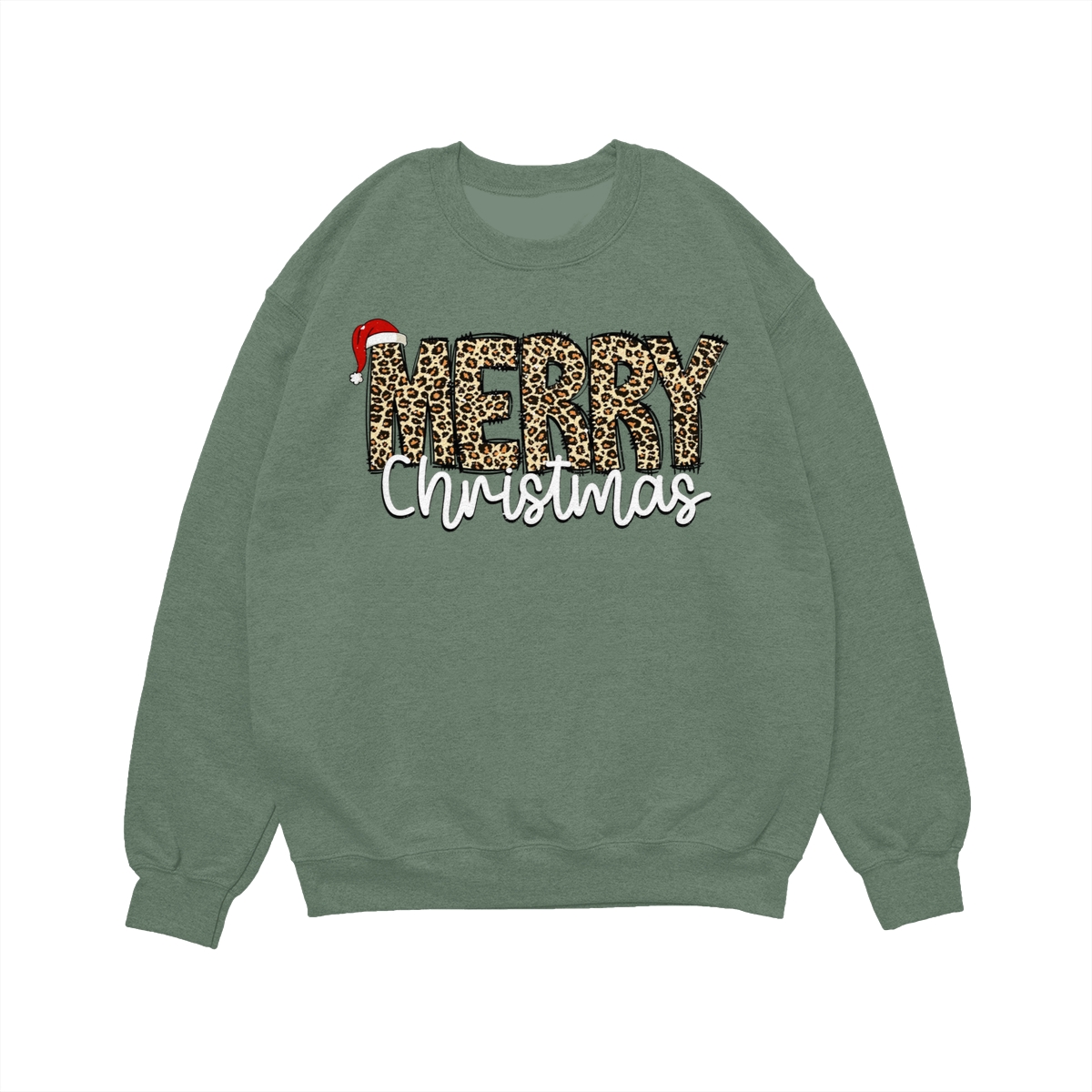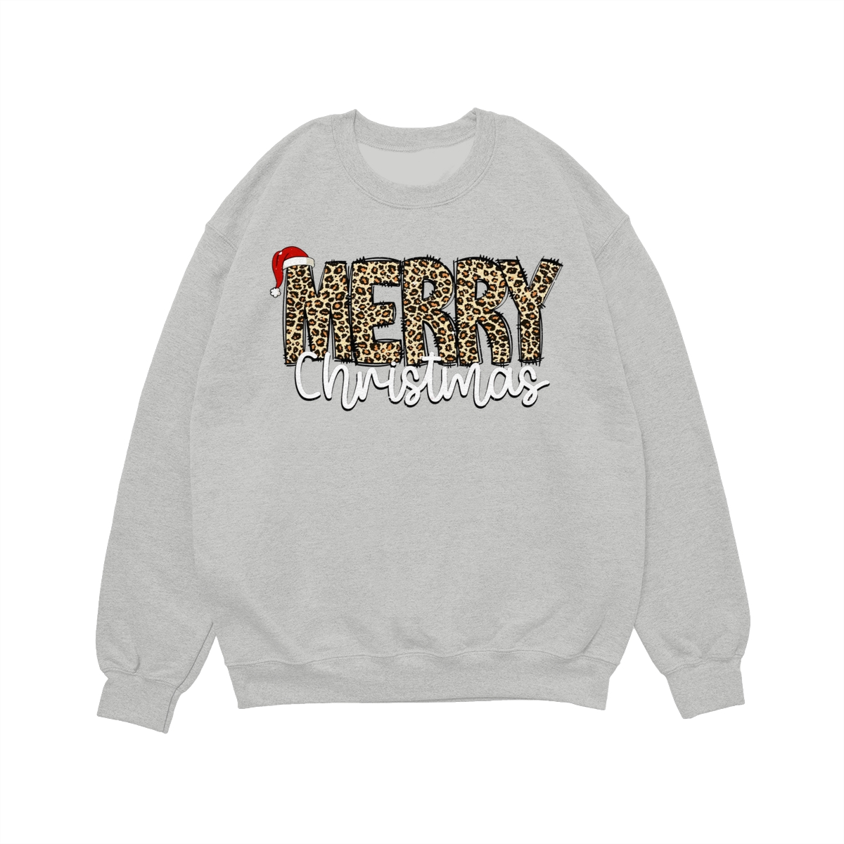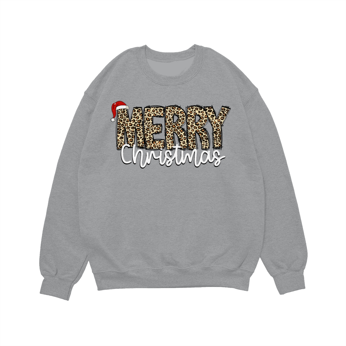 Christmas Sweatshirt, Merry Christmas Sweatshirt, Leopard Printed Christmas Shirt, Christmas Gift Shirt, Women Leopard Christmas Shirt, Full Color Full Size