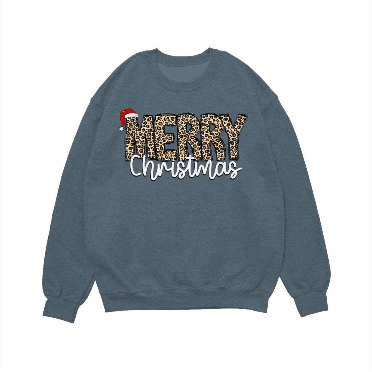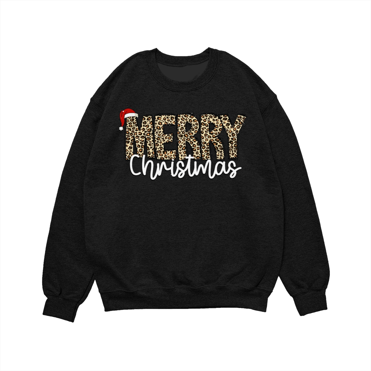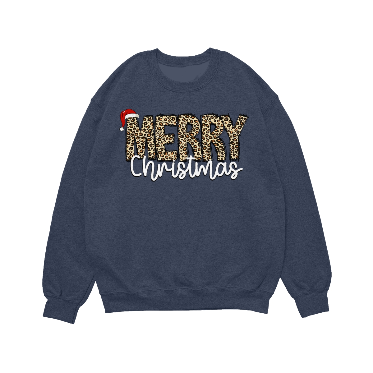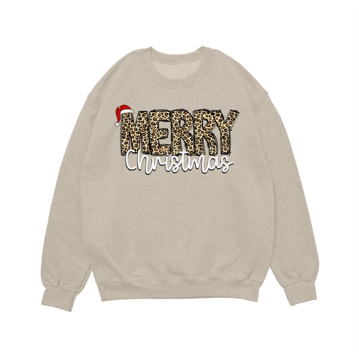 Christmas Sweatshirt, Merry Christmas Sweatshirt, Leopard Printed Christmas Shirt, Christmas Gift Shirt, Women Leopard Christmas Shirt, Full Color Full Size